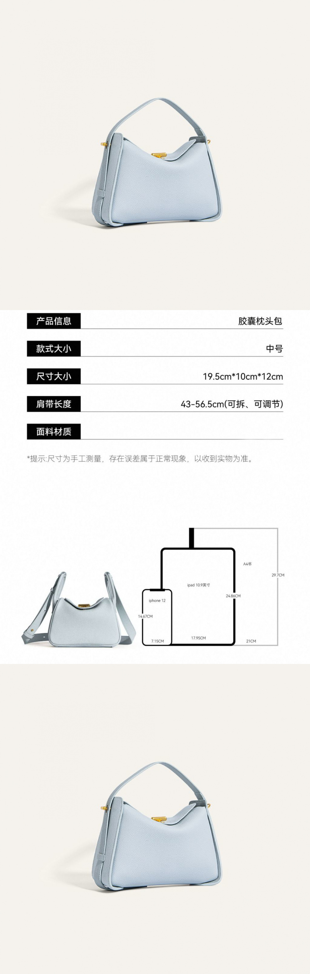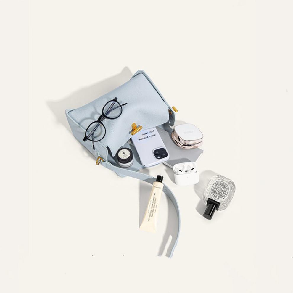 휴대용 라이트 블루 베개 가방 여성 2025 새로운 이른 봄 라이트 럭셔리 틈새 디자인 리치 패턴 보스턴 백