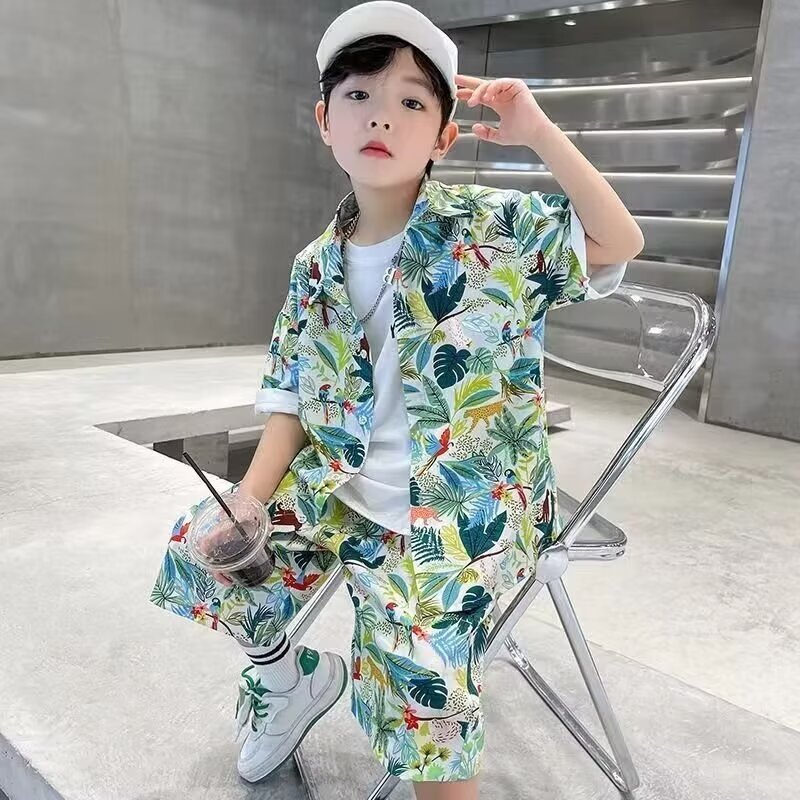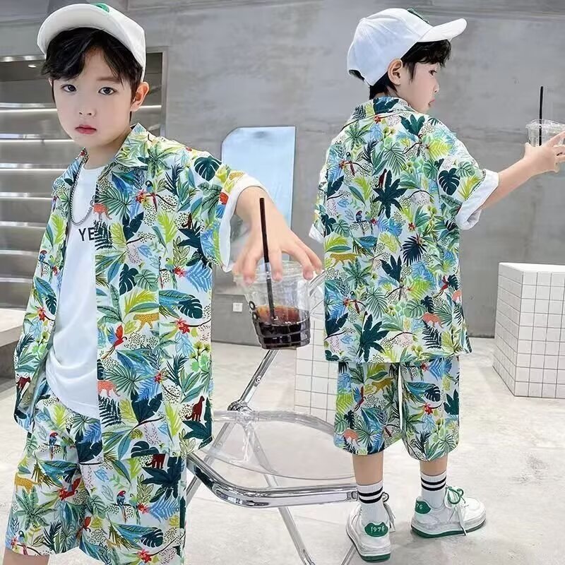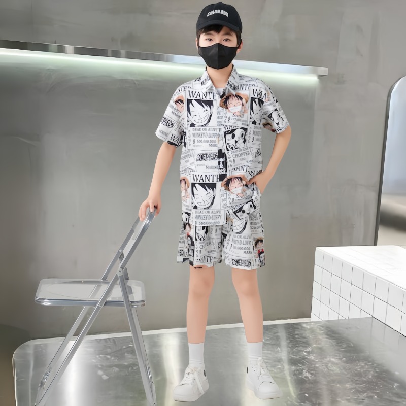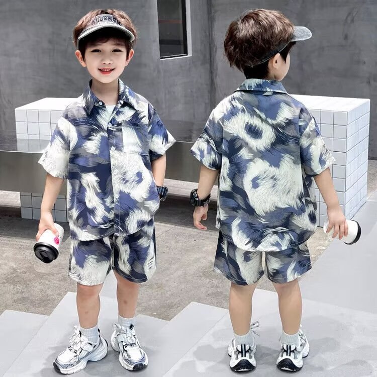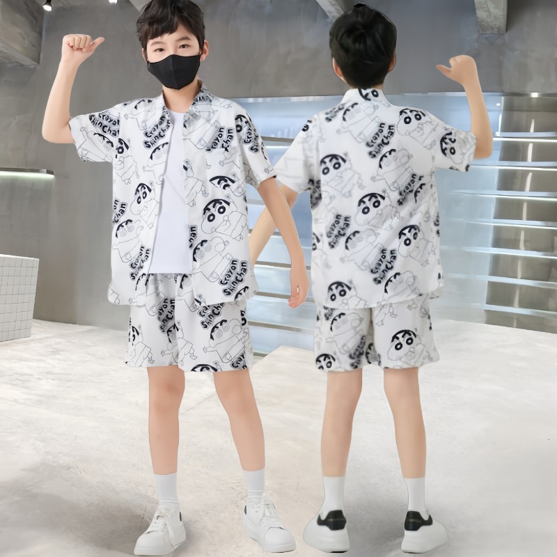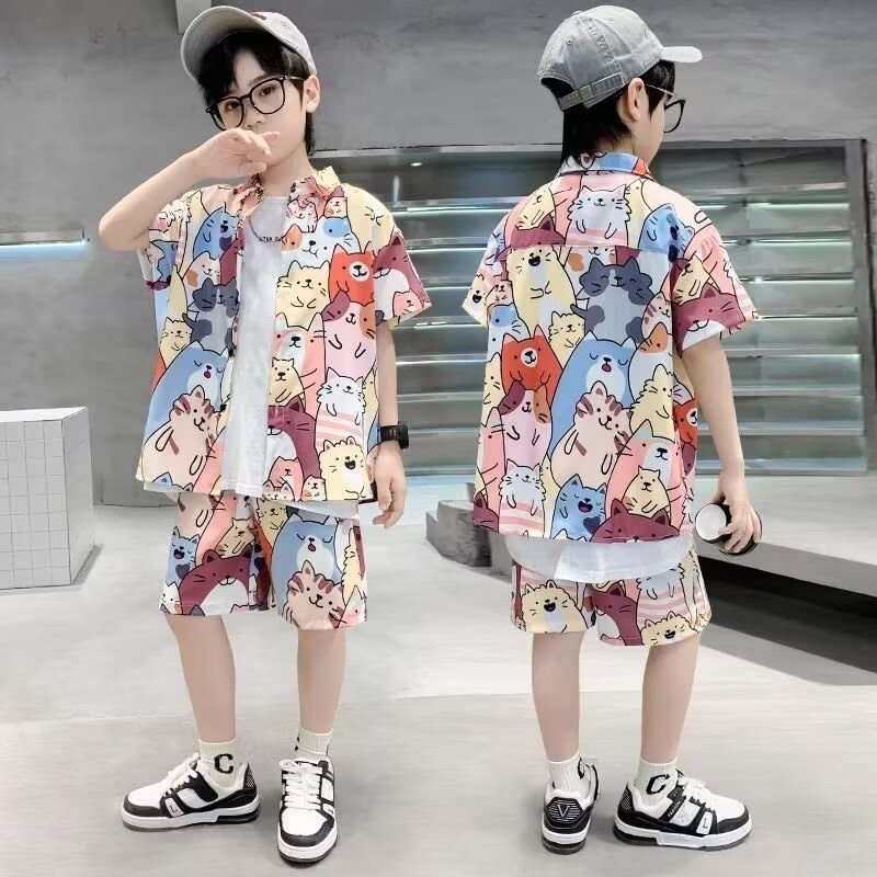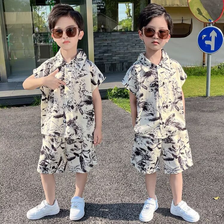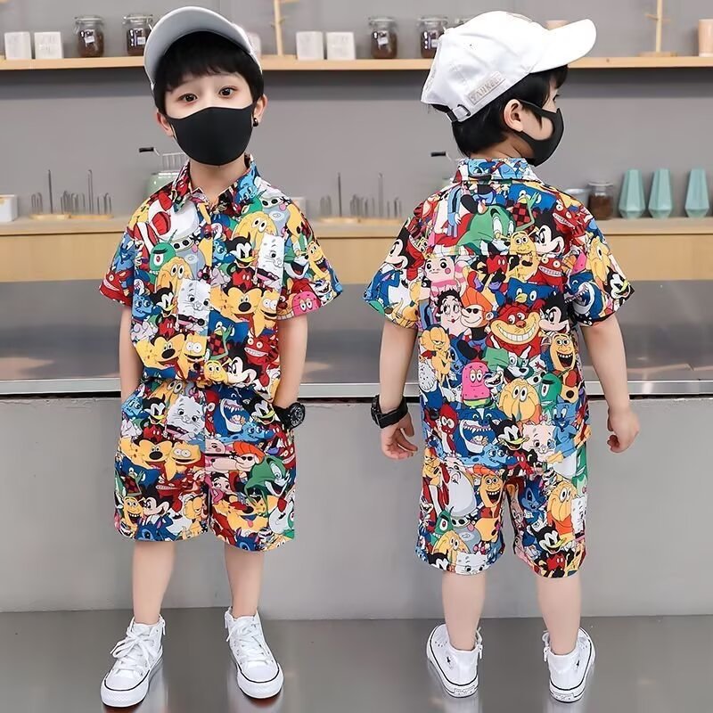 남학생 여름 착용 세트 2025 새로운 어린이 서양식 만화 반팔 반바지 투피스 세트 소년 여름 아동복 트렌디