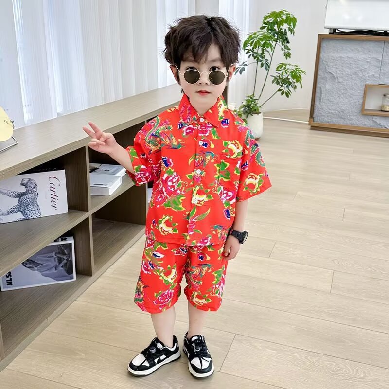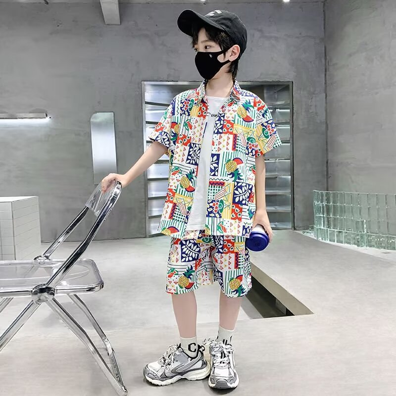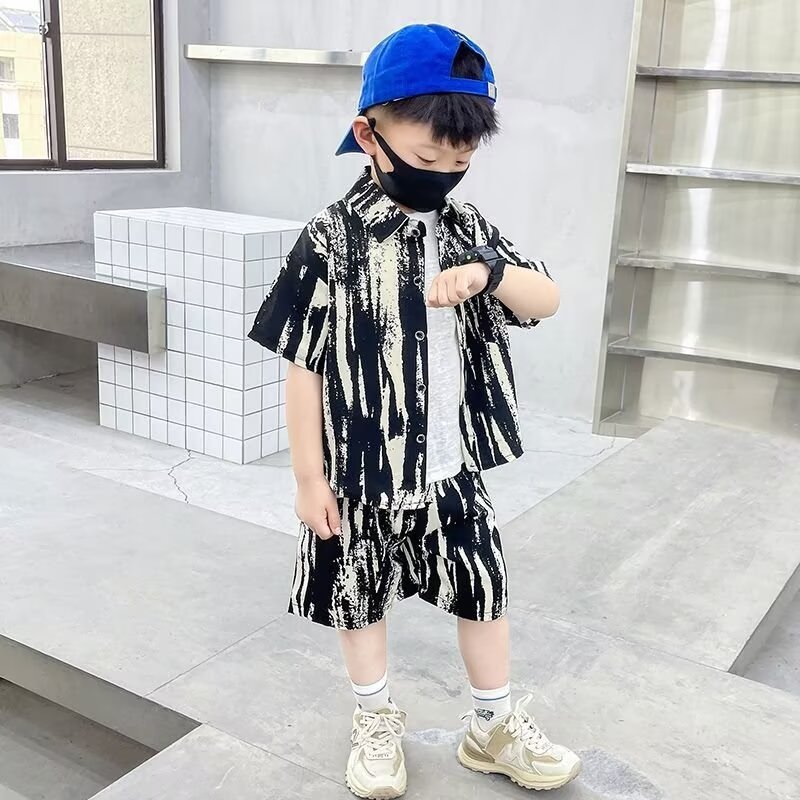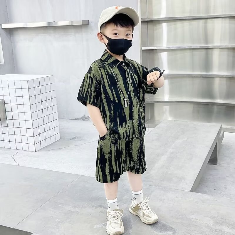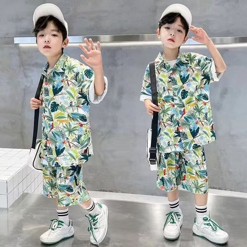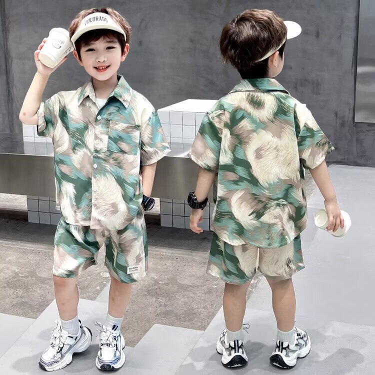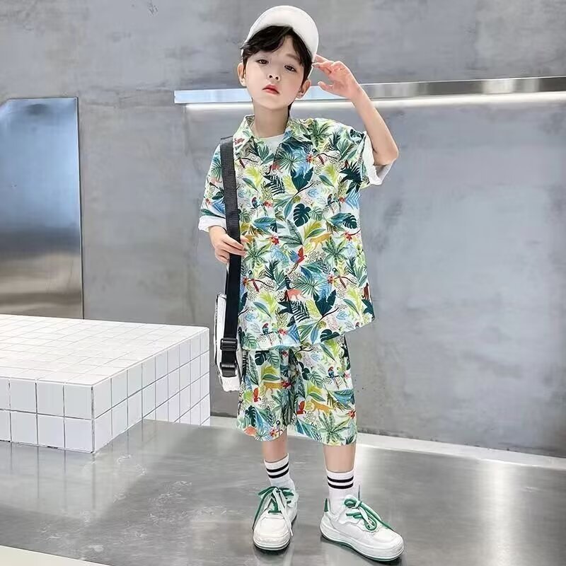 남학생 여름 착용 세트 2025 새로운 어린이 서양식 만화 반팔 반바지 투피스 세트 소년 여름 아동복 트렌디