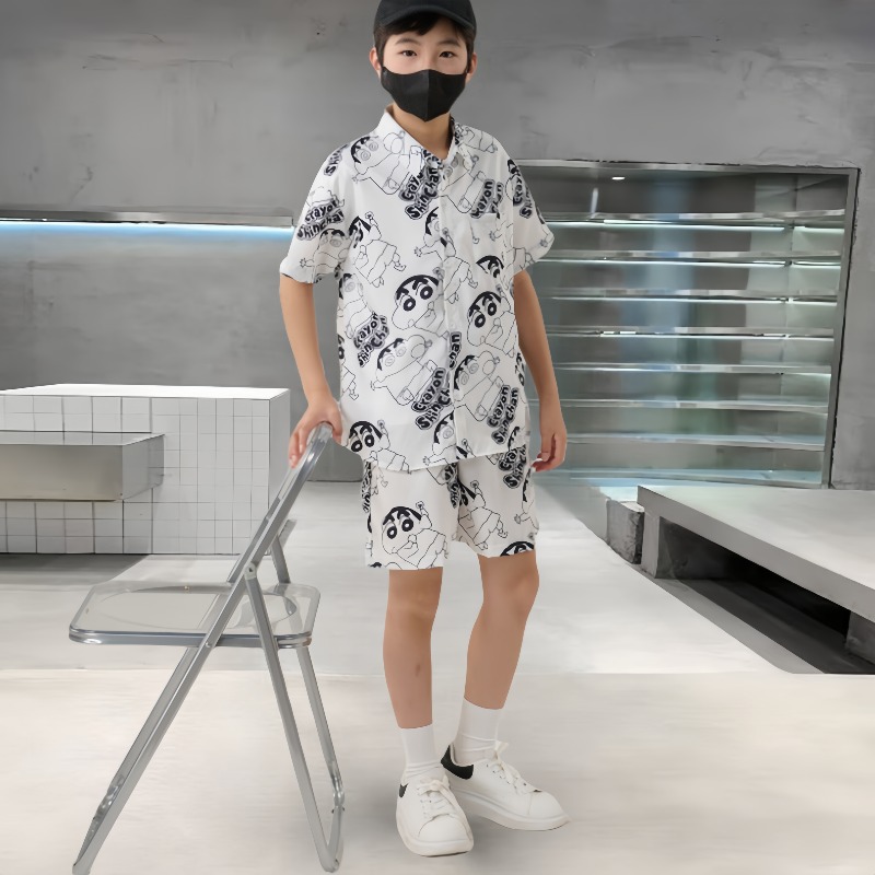 남학생 여름 착용 세트 2025 새로운 어린이 서양식 만화 반팔 반바지 투피스 세트 소년 여름 아동복 트렌디스토어 가기