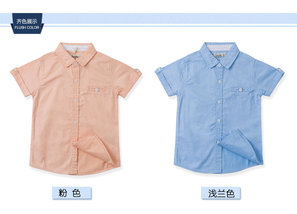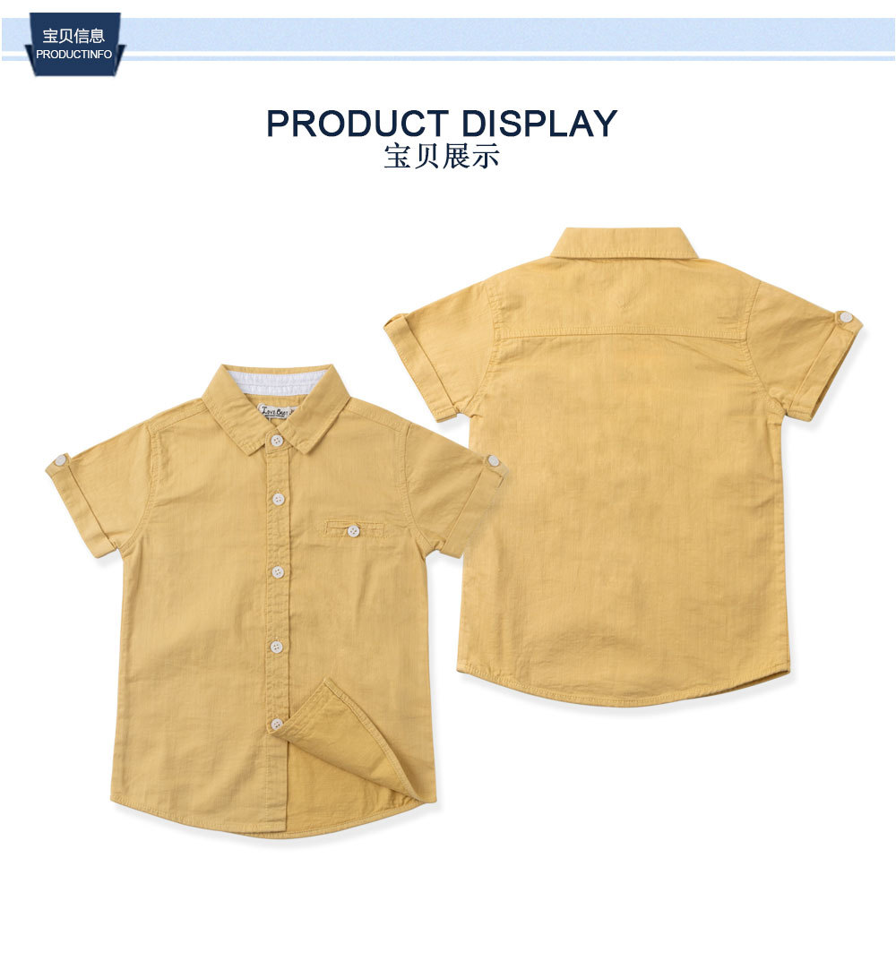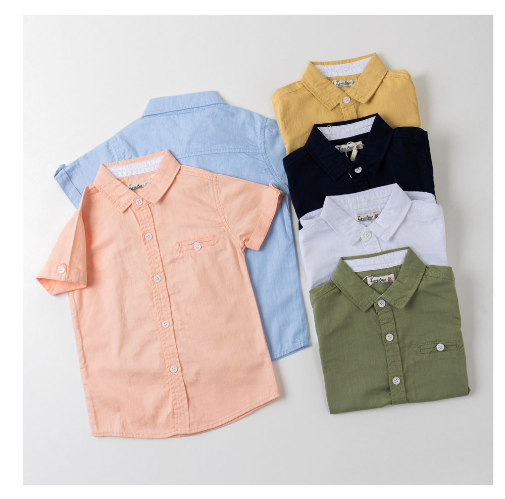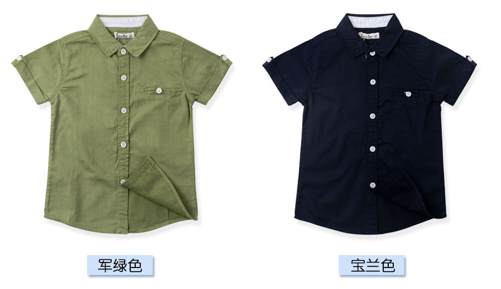 남학생 셔츠 공장 아울렛 2023 여름 단색 중형 및 대형 어린이 간단한 대외 무역 아동면 반팔 셔츠스토어 가기