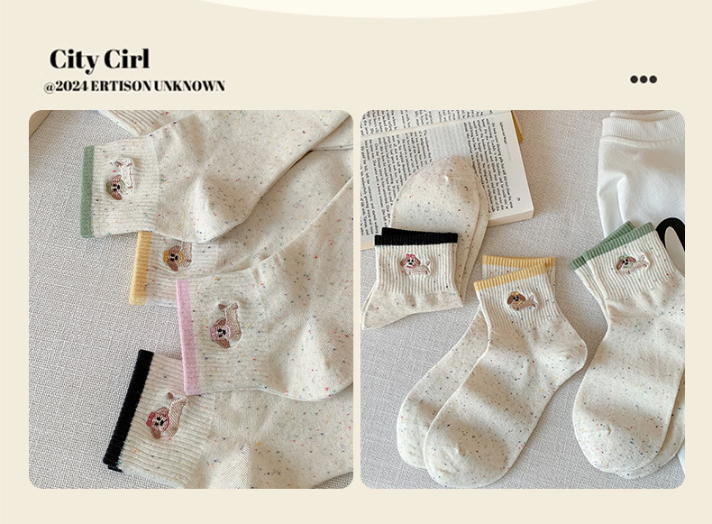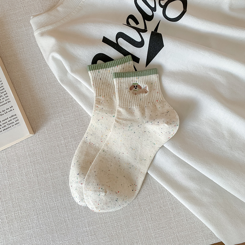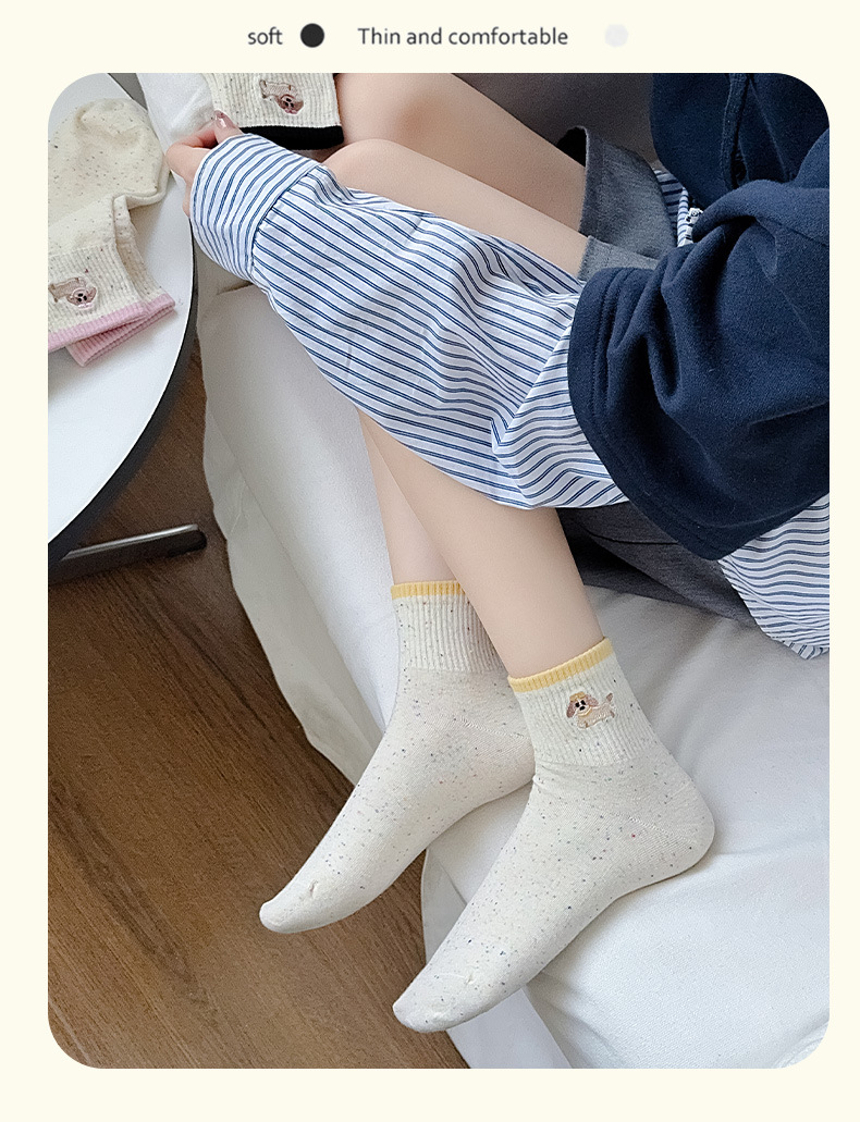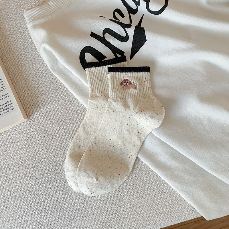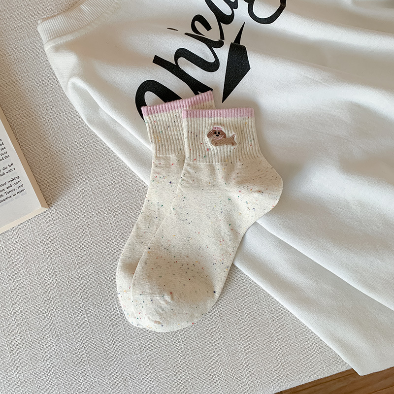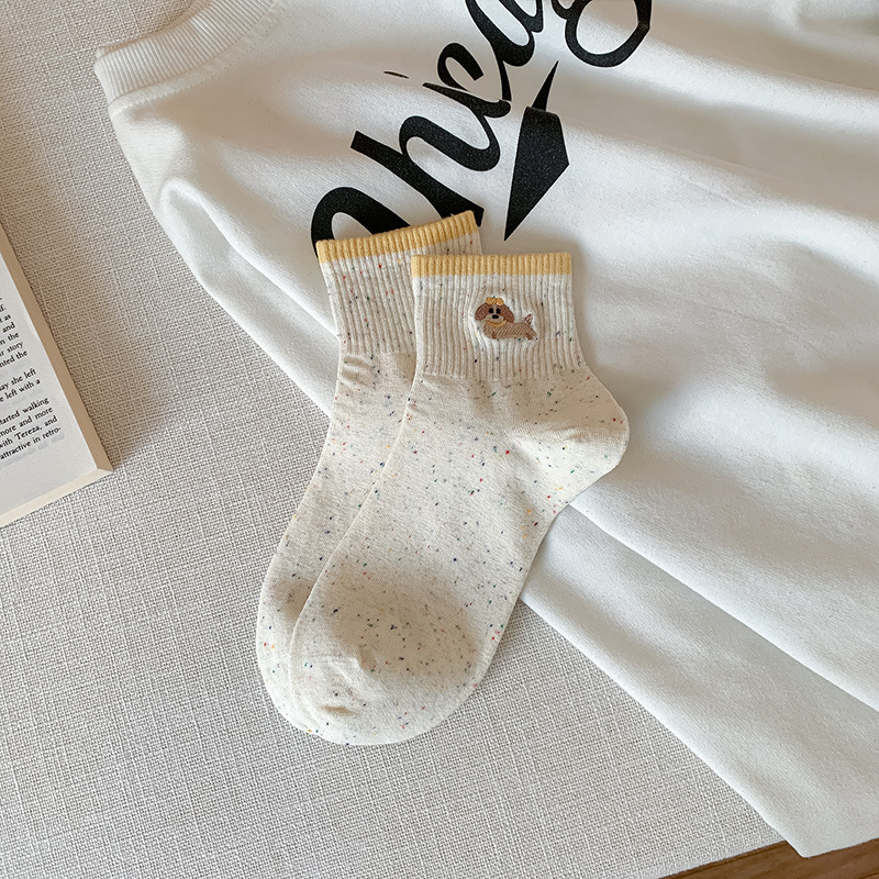 강아지 양말 여성의 2025 봄과 여름 새로운 도착 포인트 원사 짧은 양말 만화 귀여운 우유 흰색 양말 일본식 여성 양말스토어 가기