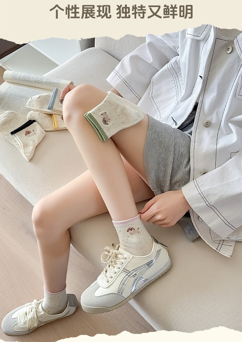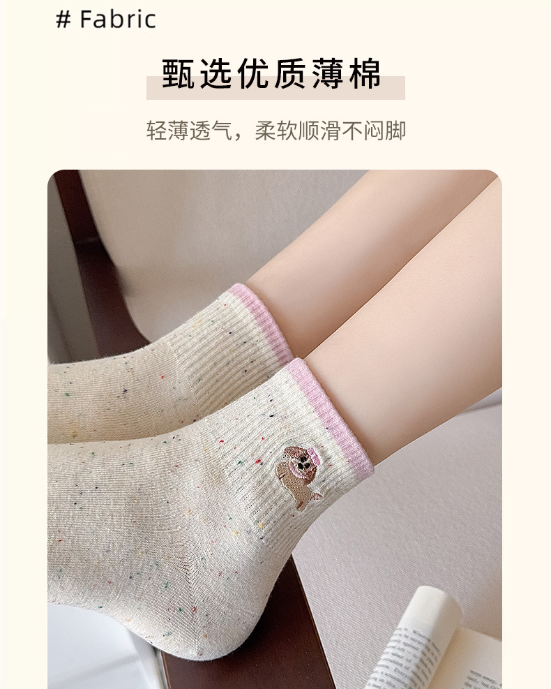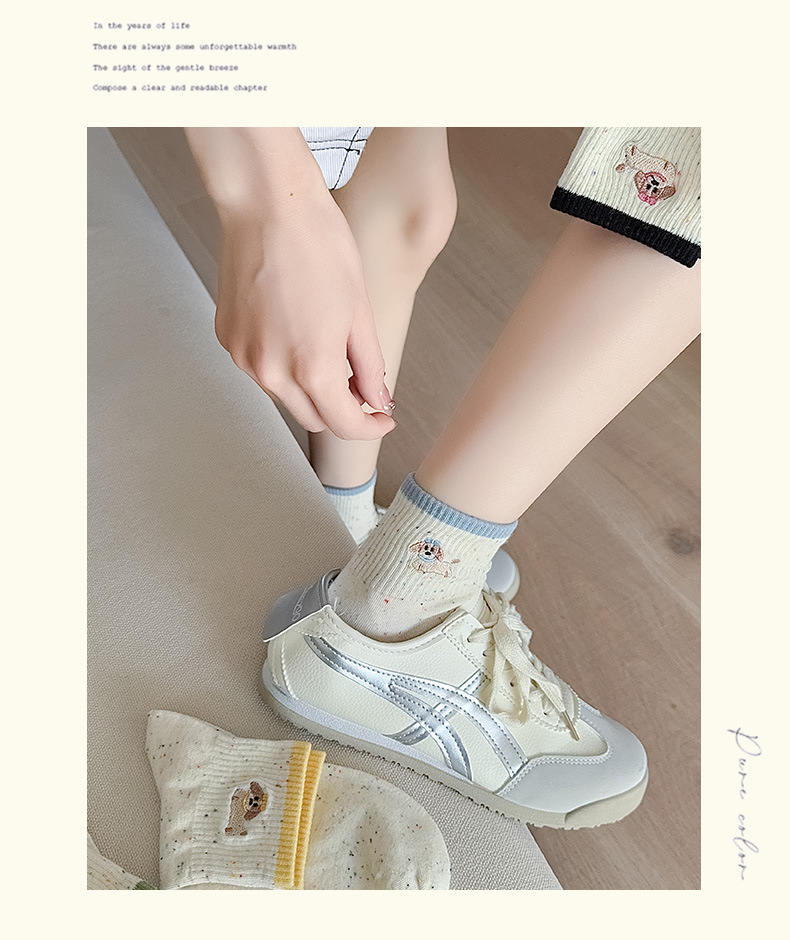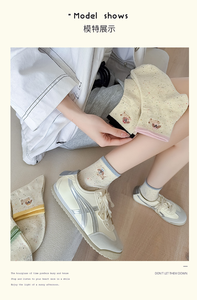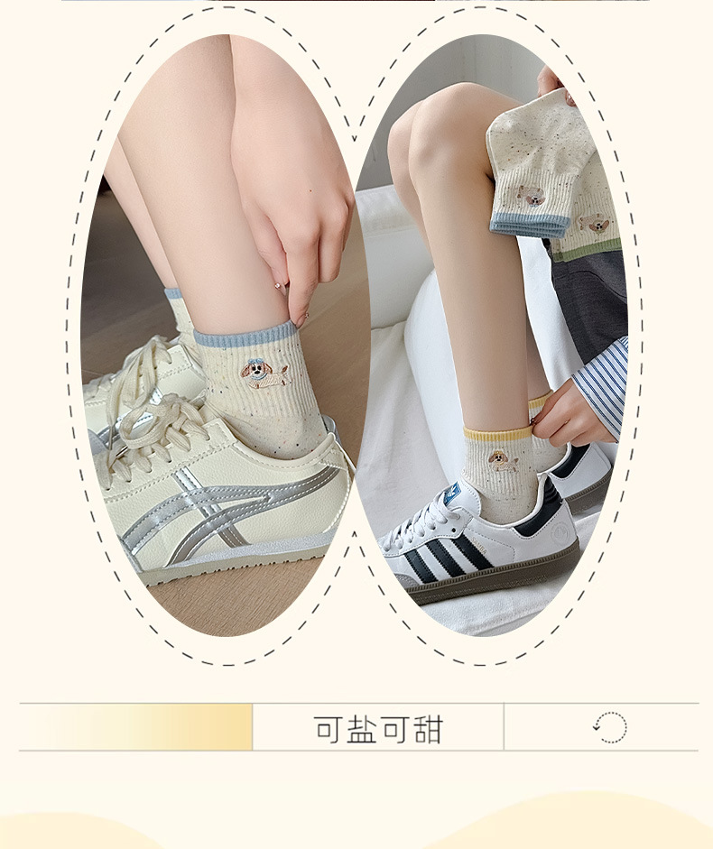 강아지 양말 여성의 2025 봄과 여름 새로운 도착 포인트 원사 짧은 양말 만화 귀여운 우유 흰색 양말 일본식 여성 양말스토어 가기
