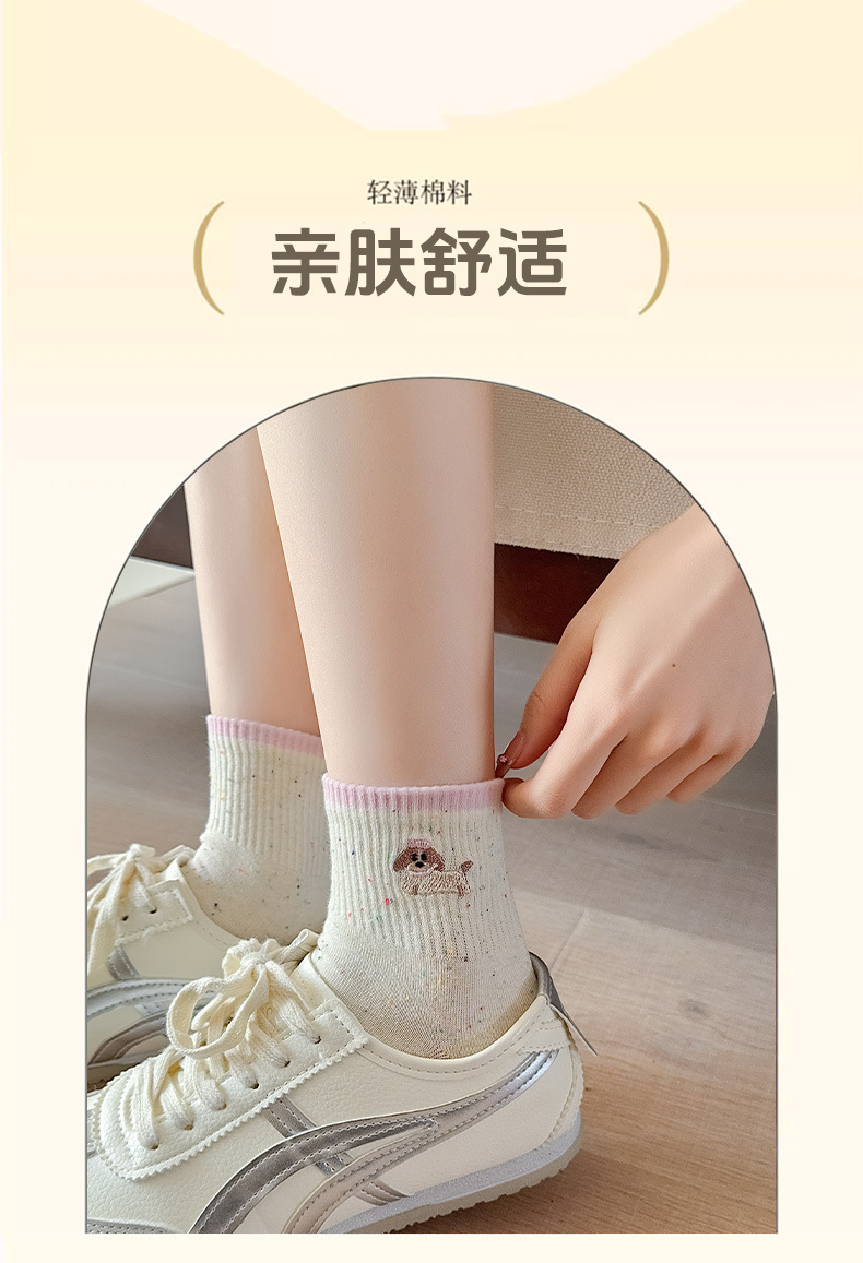 강아지 양말 여성의 2025 봄과 여름 새로운 도착 포인트 원사 짧은 양말 만화 귀여운 우유 흰색 양말 일본식 여성 양말