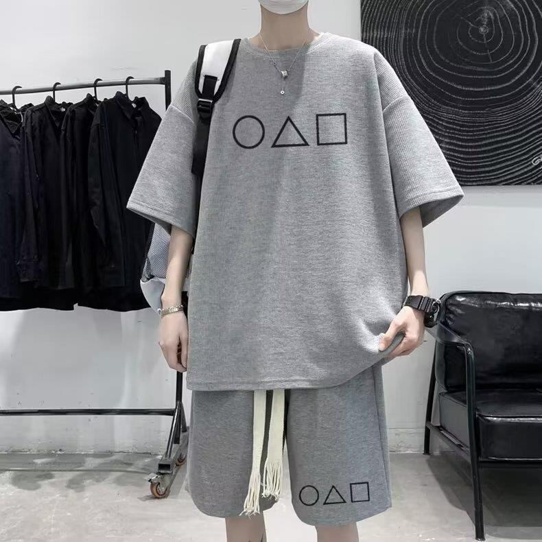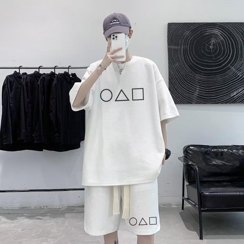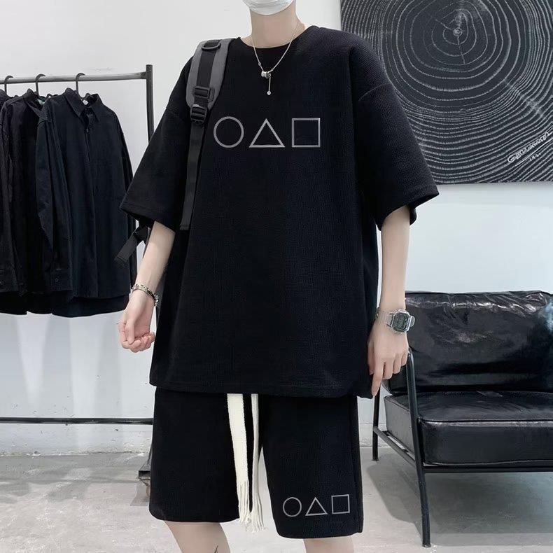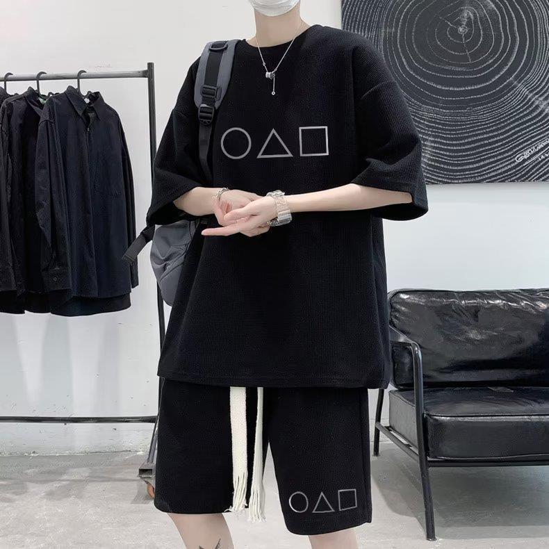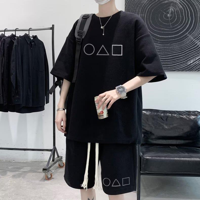 2025 10 대 반팔 티셔츠 남자 여름 세트 여름 와플 캐주얼 스포츠웨어 여름 남성복