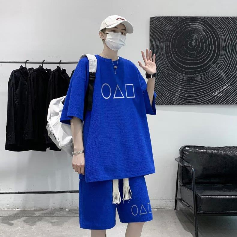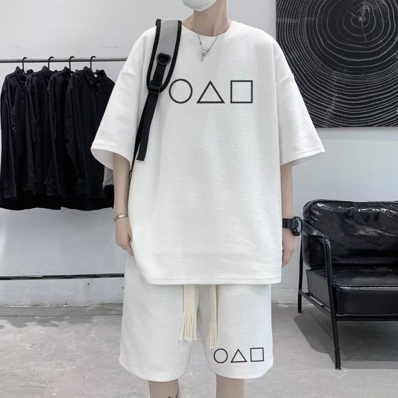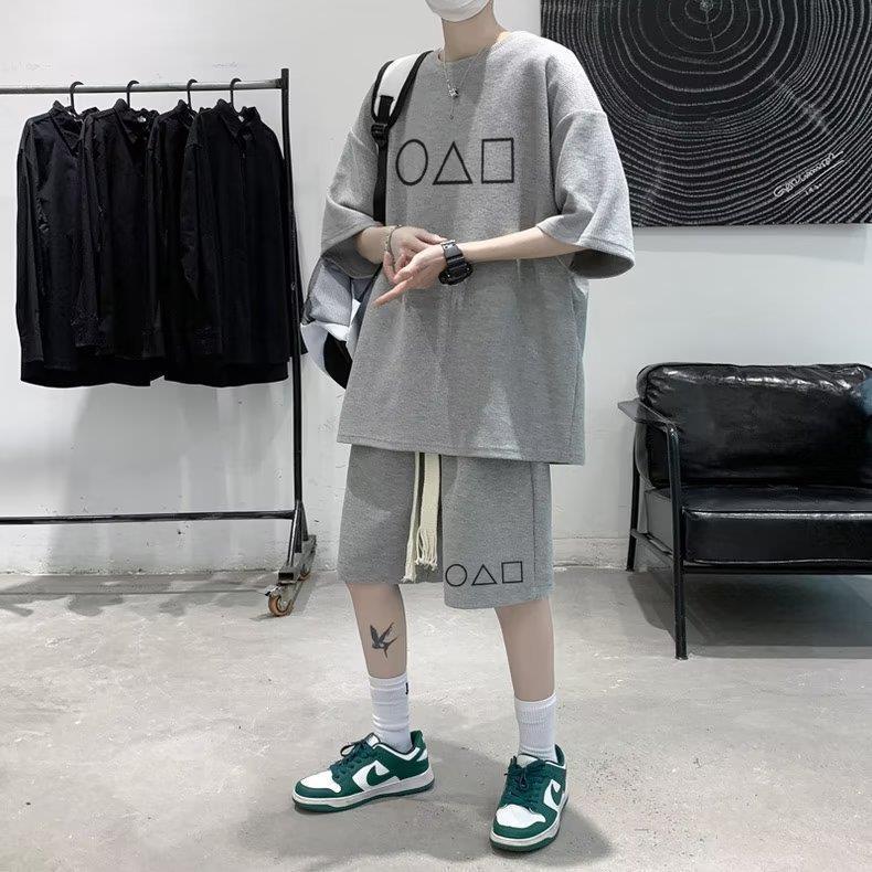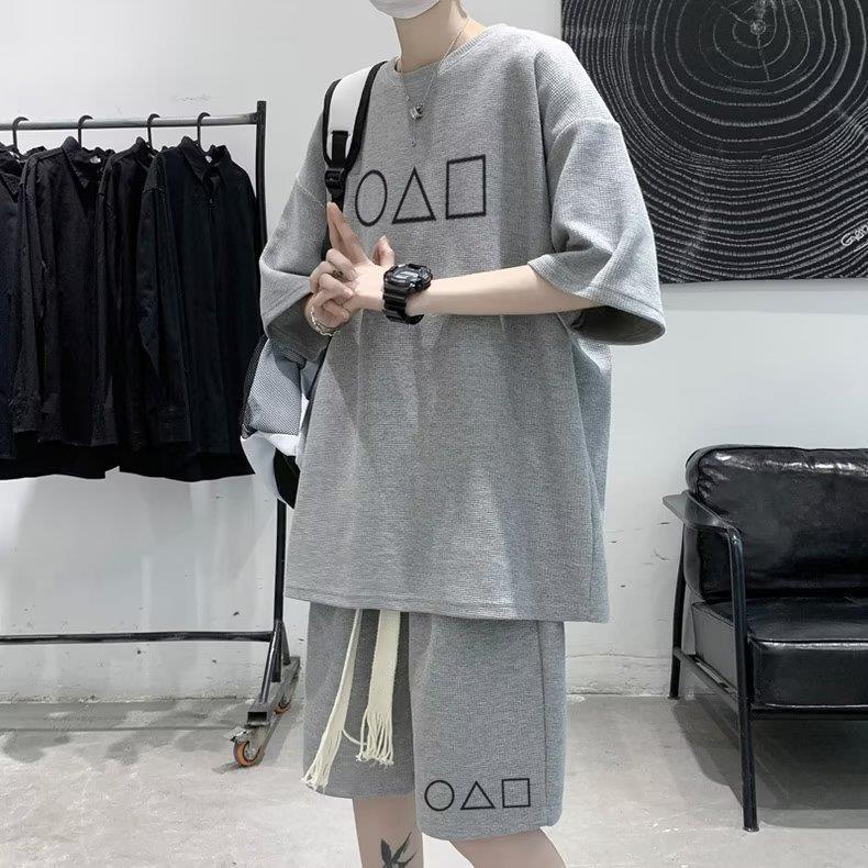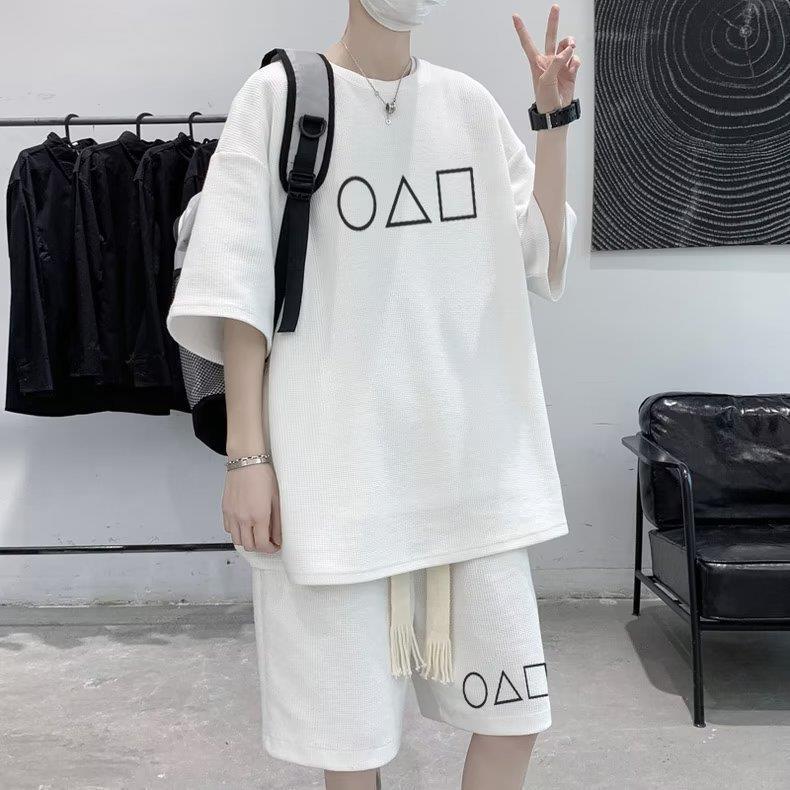 2025 10 대 반팔 티셔츠 남자 여름 세트 여름 와플 캐주얼 스포츠웨어 여름 남성복