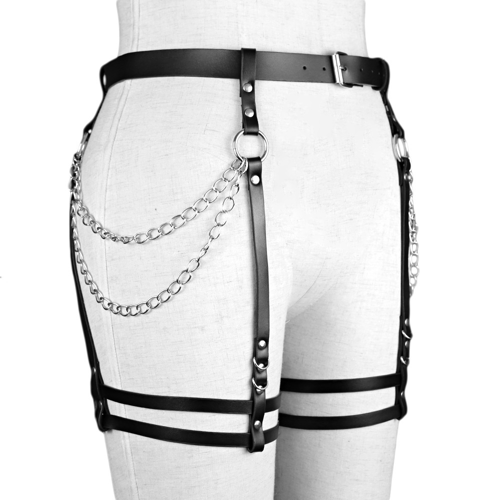 국경 간 유럽과 미국의 섹시한 가죽 바디 체인 브래지어 체인 술 비키니 조끼 스트랩 SM 섹시한 속옷 세트