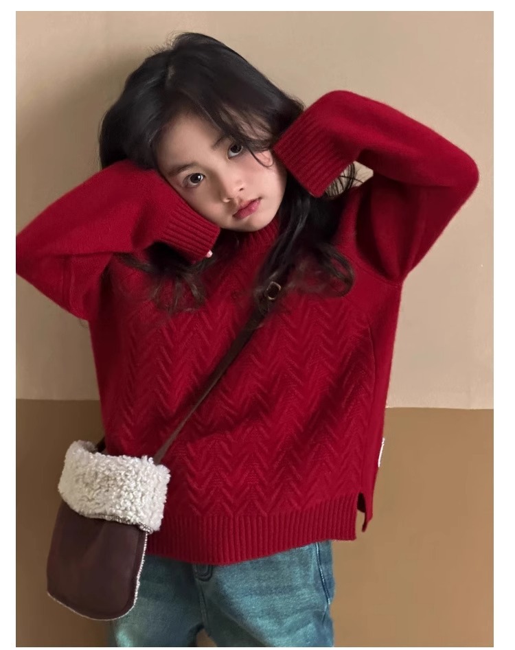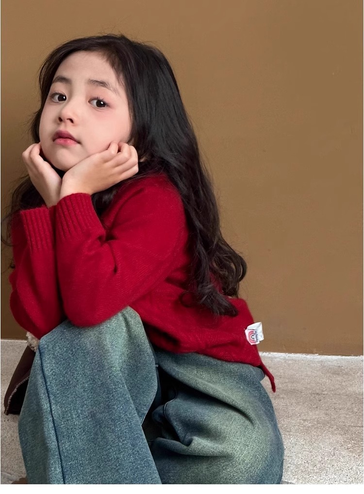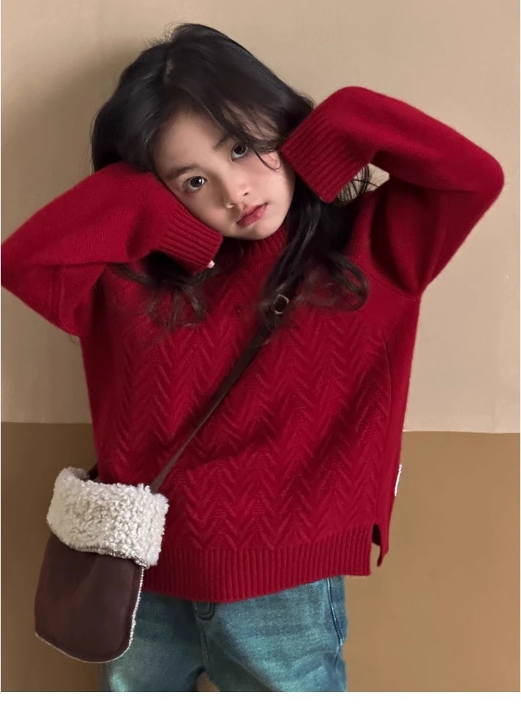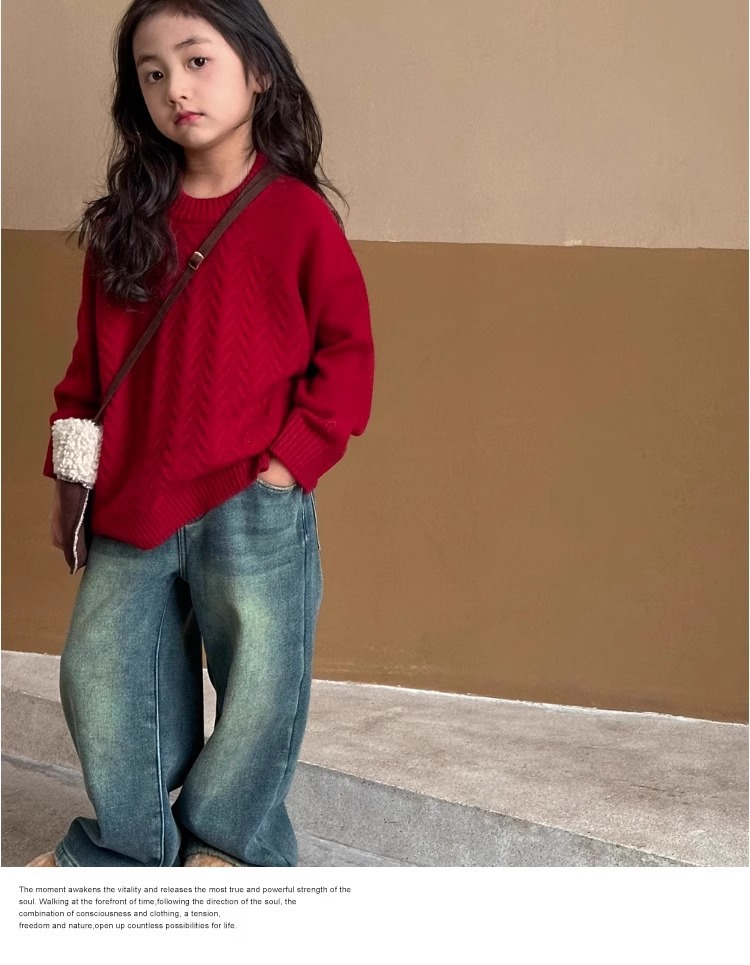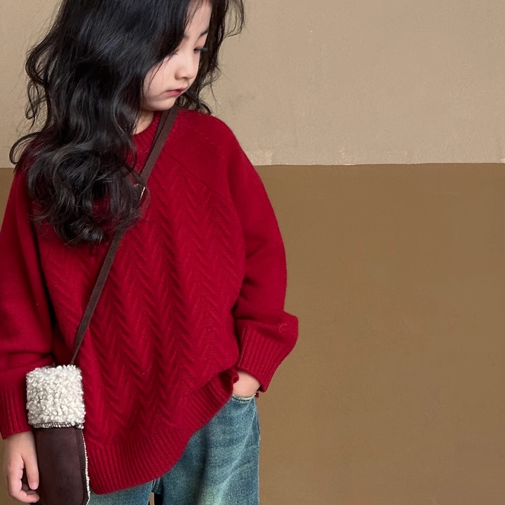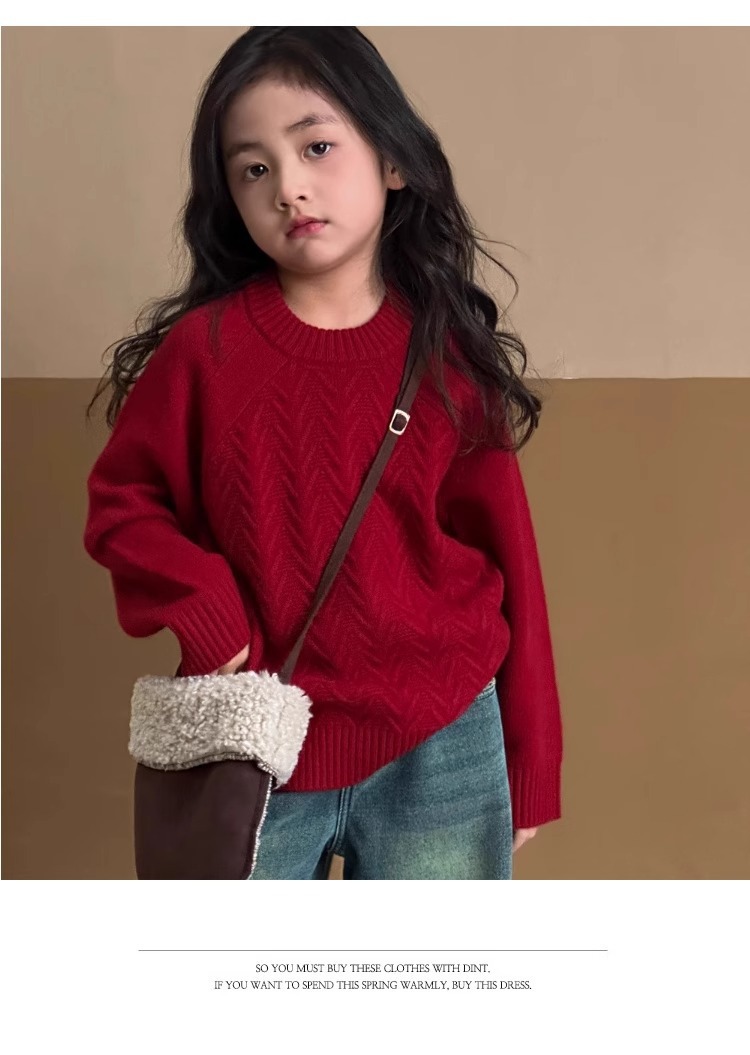 여자 스웨터 2024 겨울 새 라운드 넥 풀오버 니트웨어 가을과 겨울 어린이 옷 겨울베이스 셔츠 어린이 의류스토어 가기