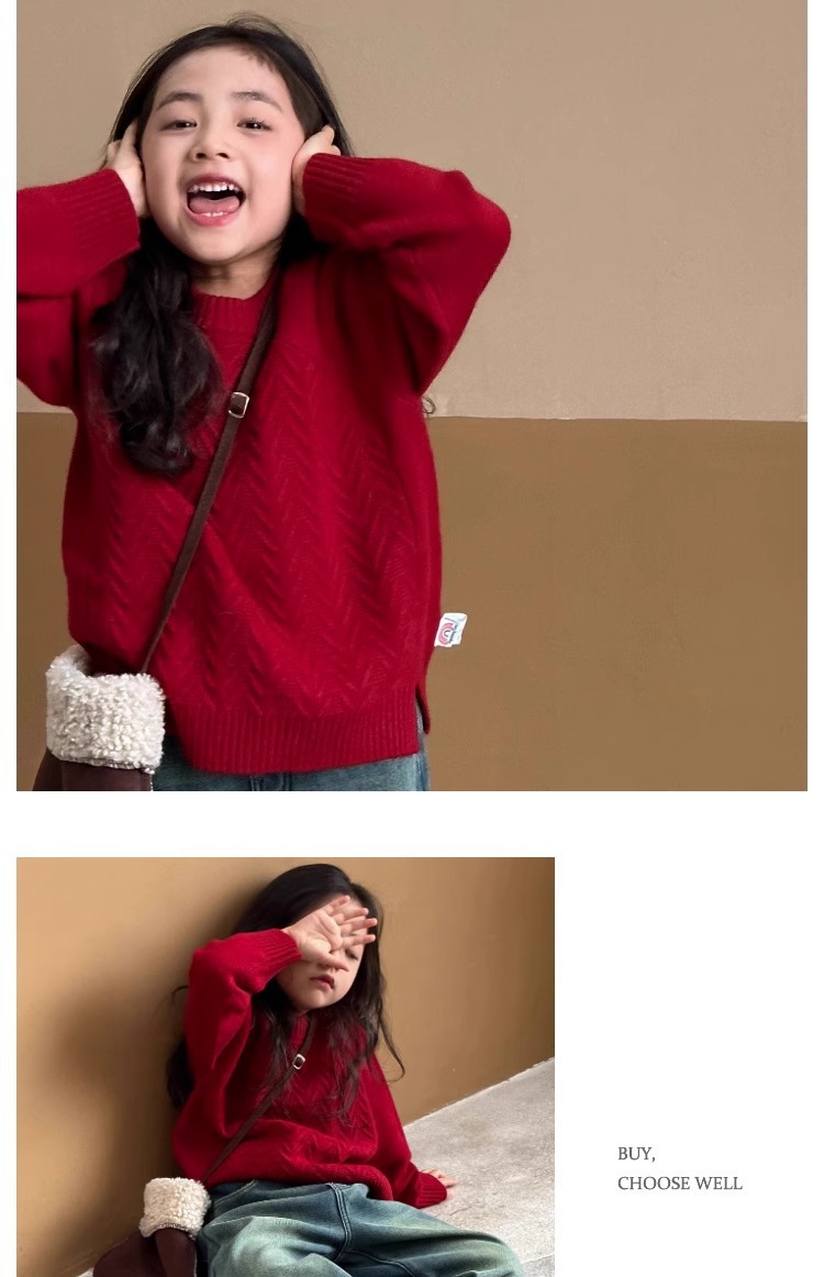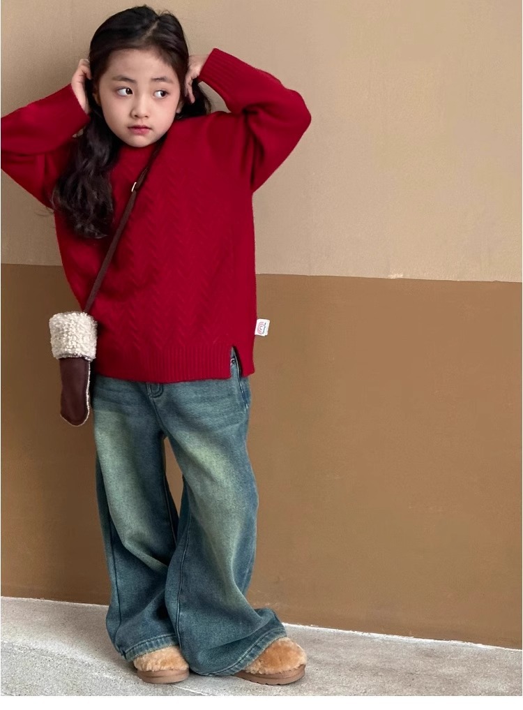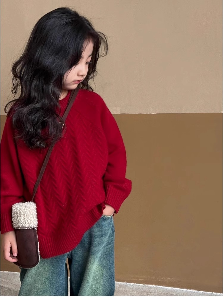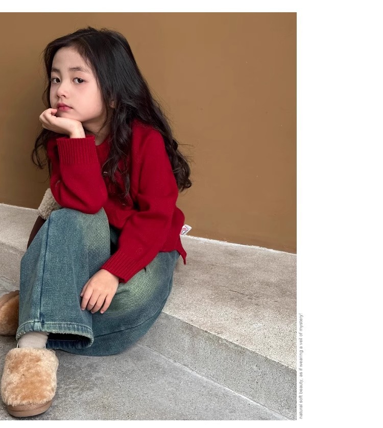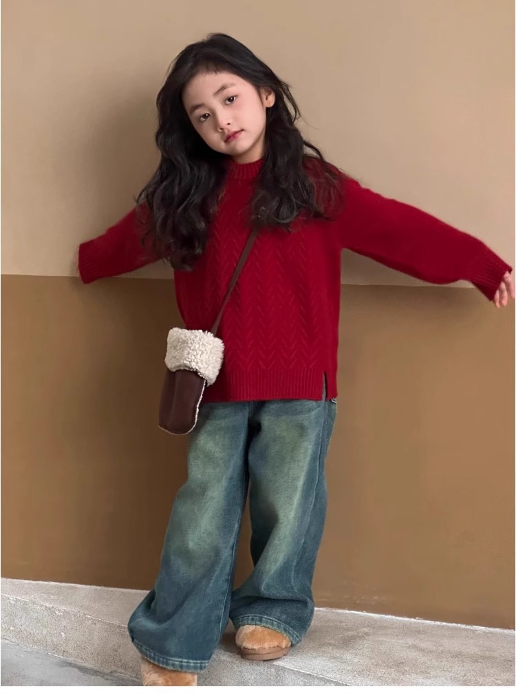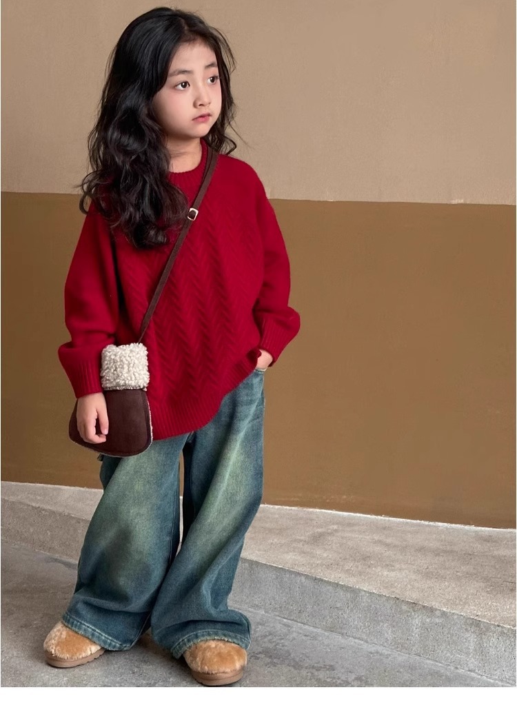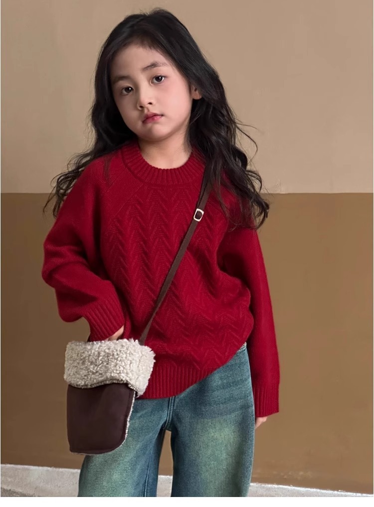 여자 스웨터 2024 겨울 새 라운드 넥 풀오버 니트웨어 가을과 겨울 어린이 옷 겨울베이스 셔츠 어린이 의류스토어 가기