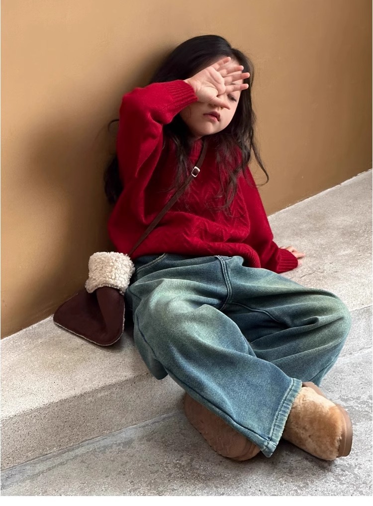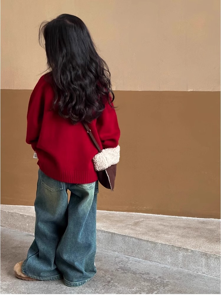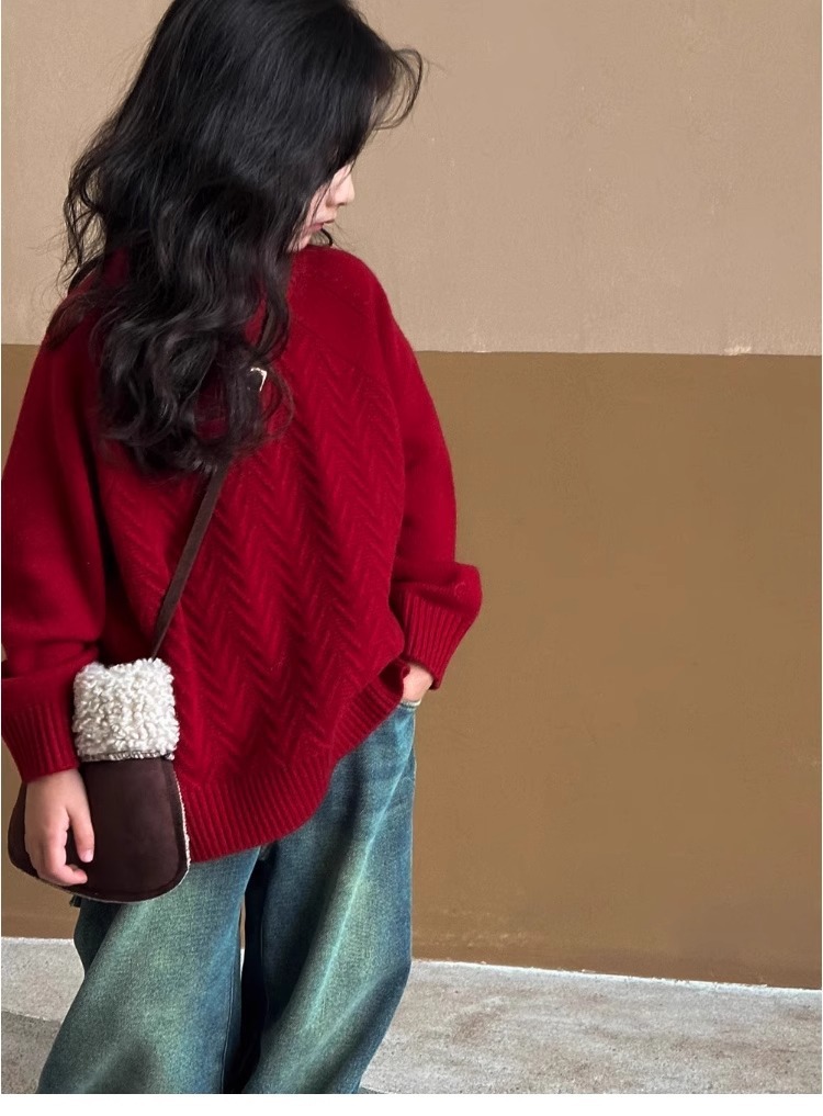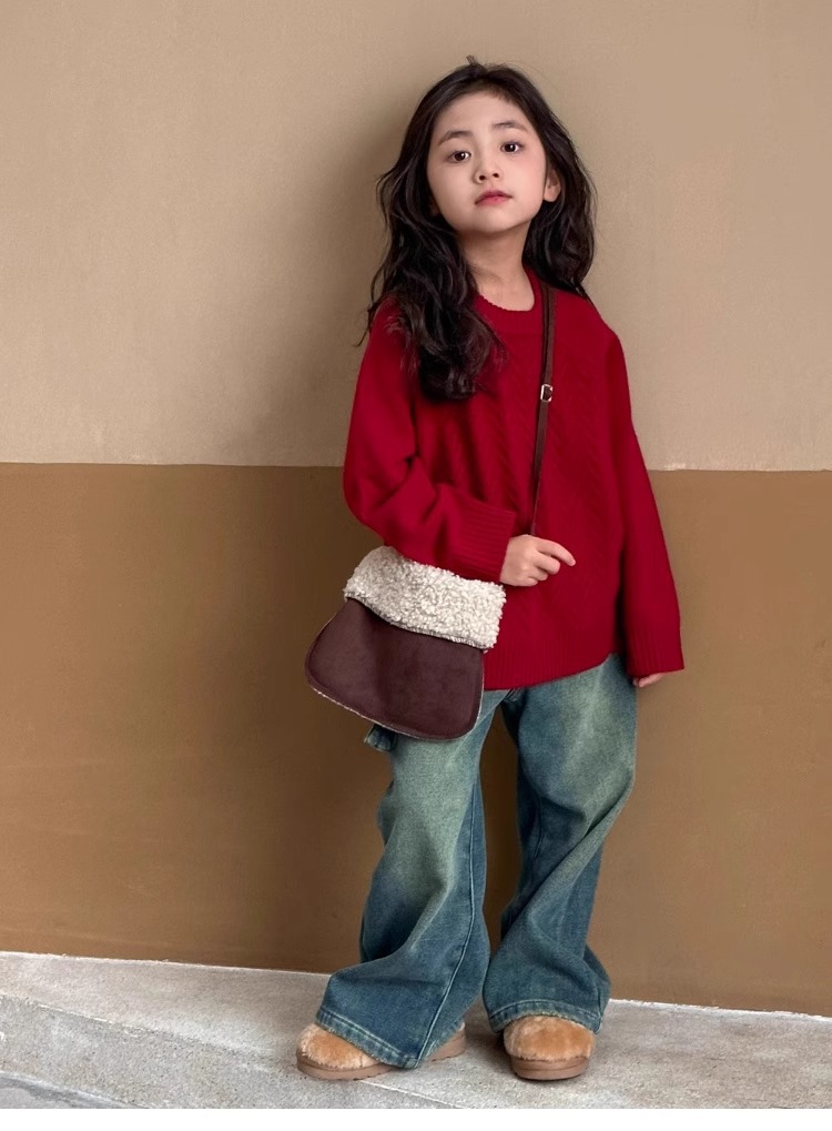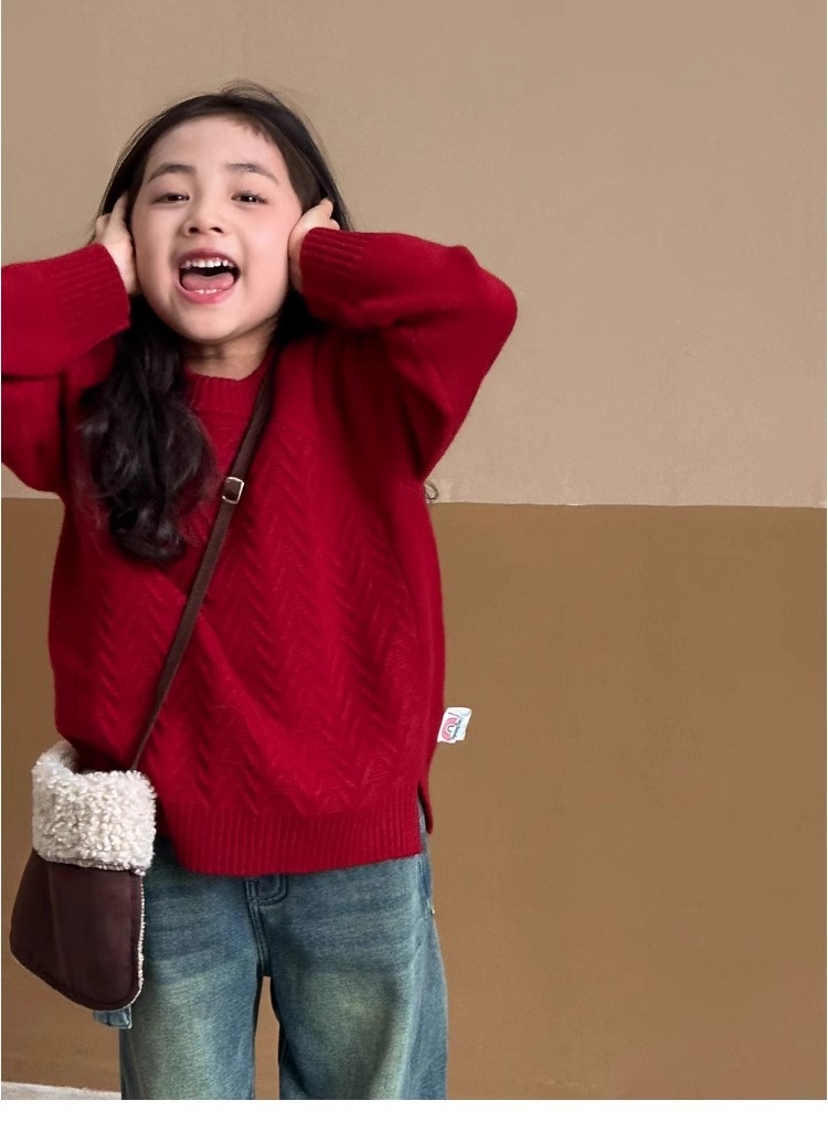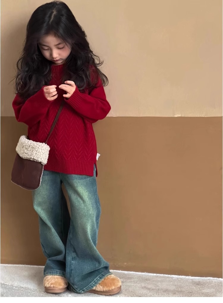 여자 스웨터 2024 겨울 새 라운드 넥 풀오버 니트웨어 가을과 겨울 어린이 옷 겨울베이스 셔츠 어린이 의류스토어 가기