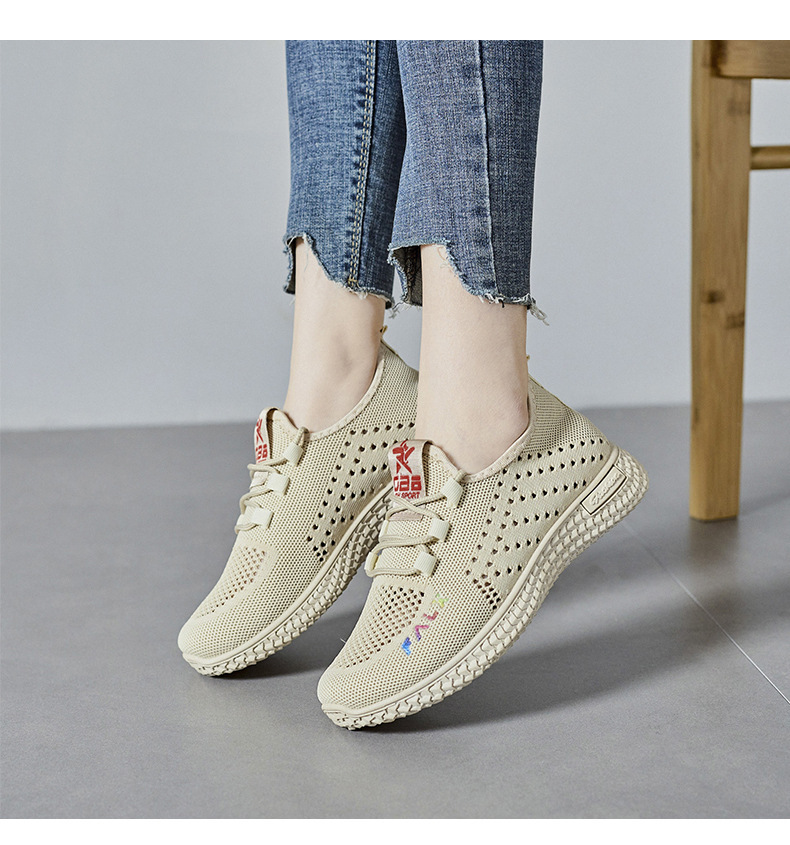 2025 여름 새로운 여성 신발 Feiwei 캐주얼 스포츠 신발 메쉬 두꺼운 단독 통기성 다목적 부드러운 단독 미끄럼 방지 엄마 신발스토어 가기