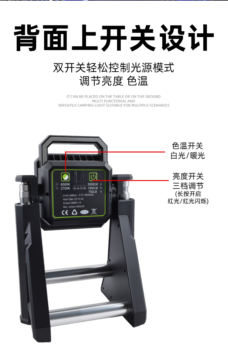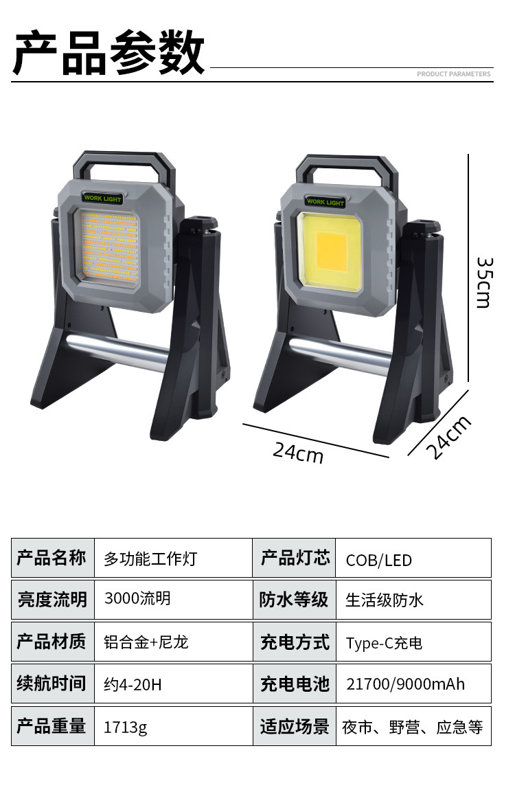 국경 간 LED 작업 조명 야외 조명 고출력 휴대용 충전 사이트 스톨 캠프 홍수 조명
