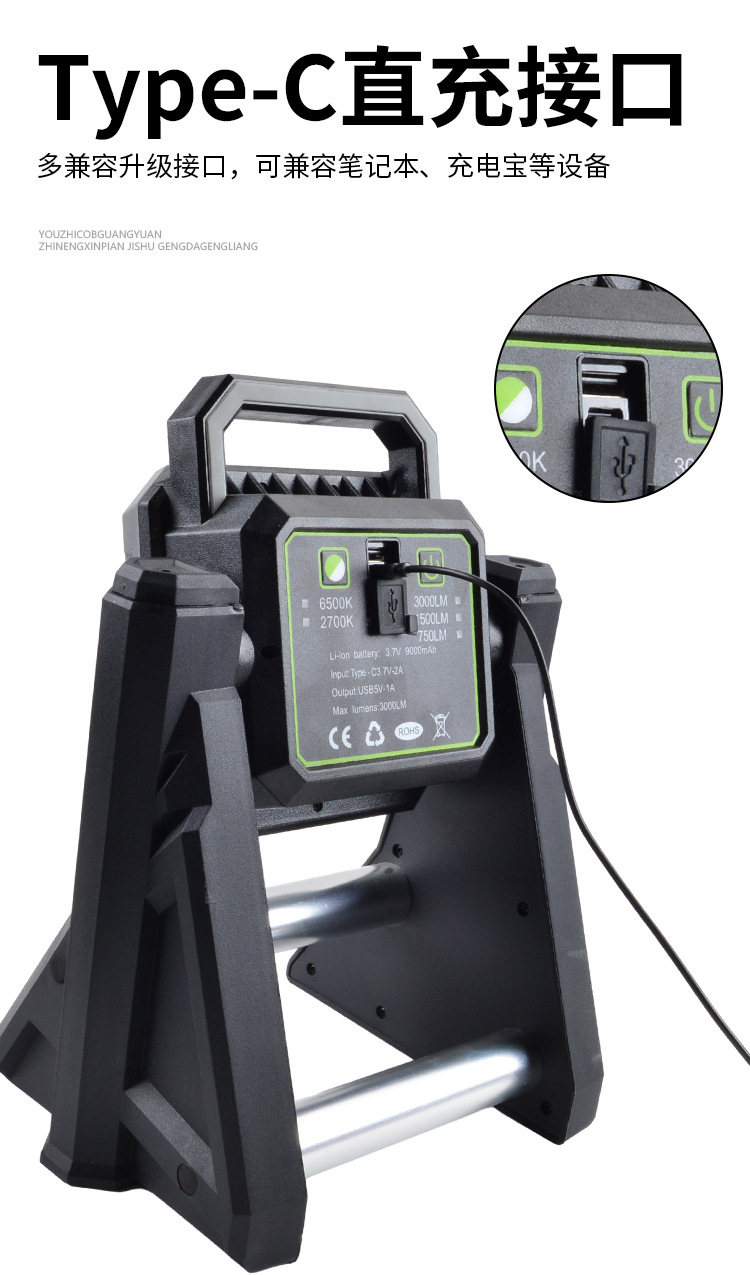 국경 간 LED 작업 조명 야외 조명 고출력 휴대용 충전 사이트 스톨 캠프 홍수 조명스토어 가기