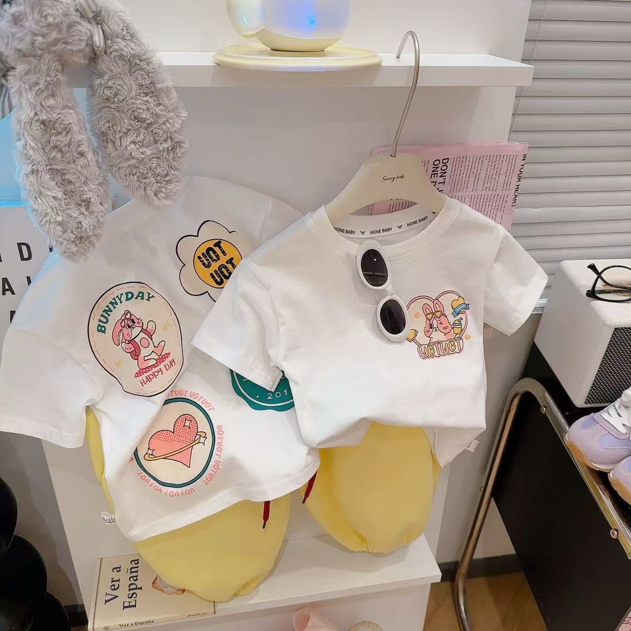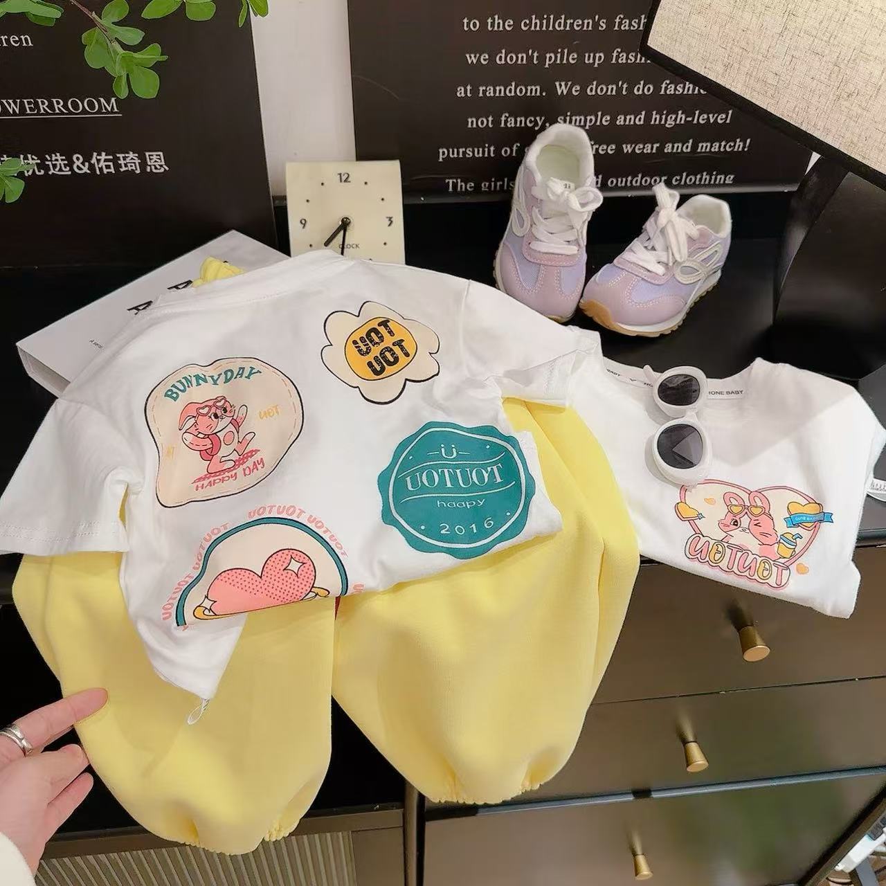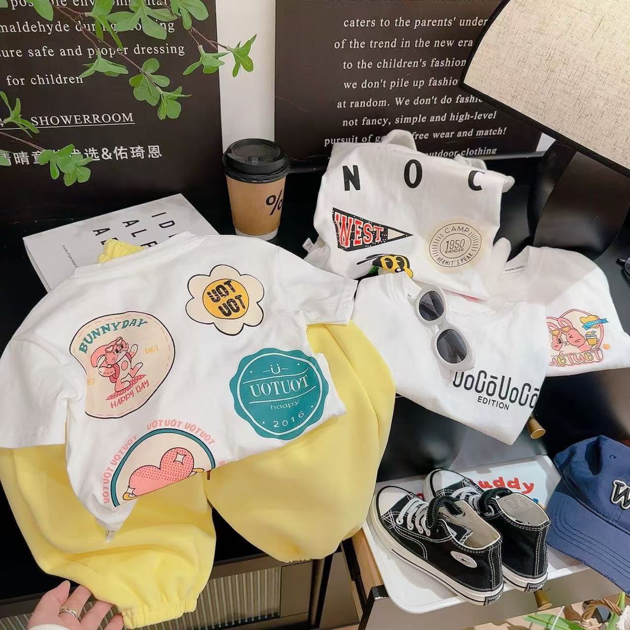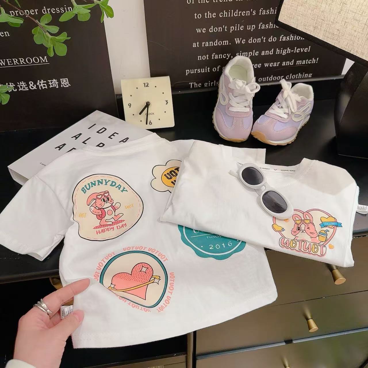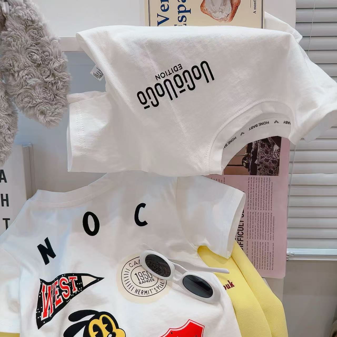 새로운 어린이 반팔 티셔츠 한국식 만화 인쇄 아기 여름 순수면 캐주얼 베이스 반팔 아동복스토어 가기