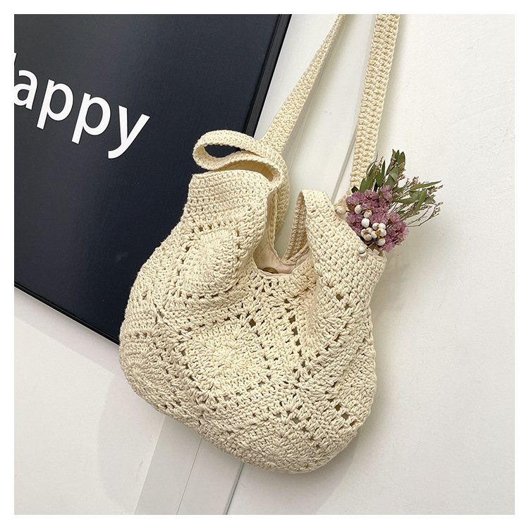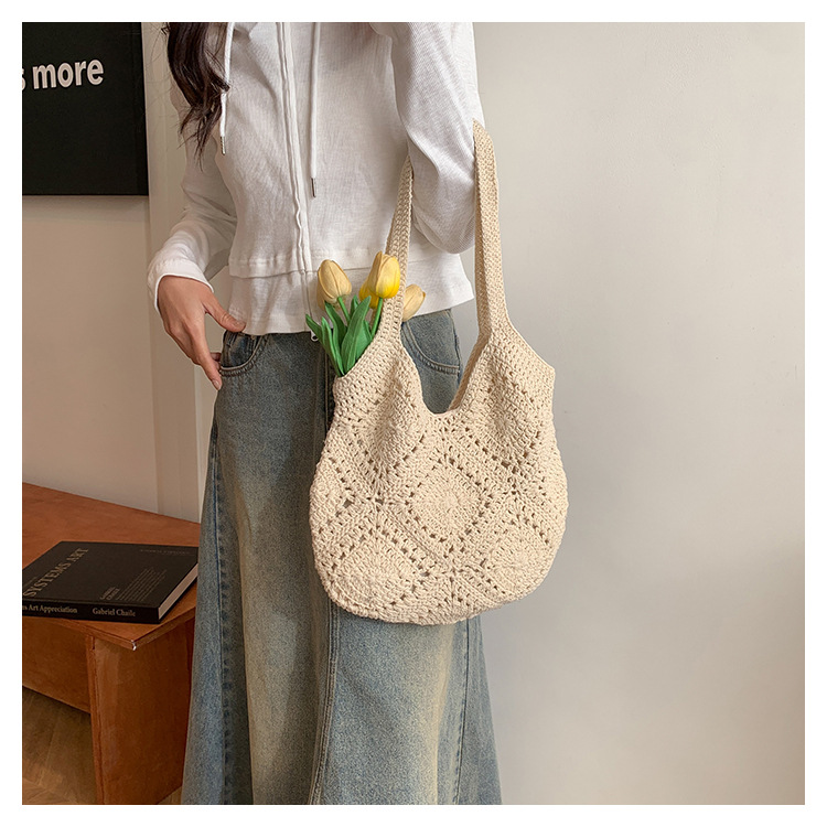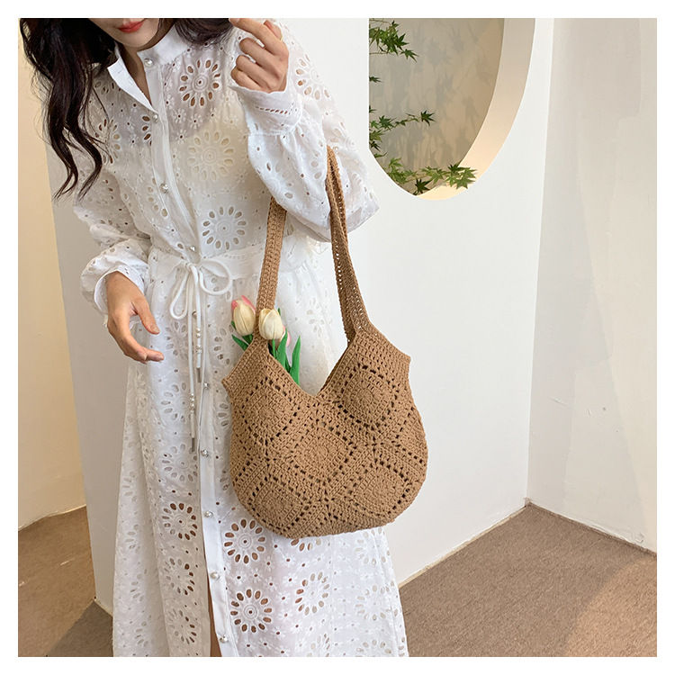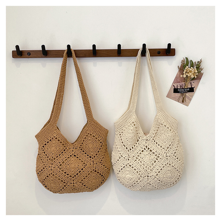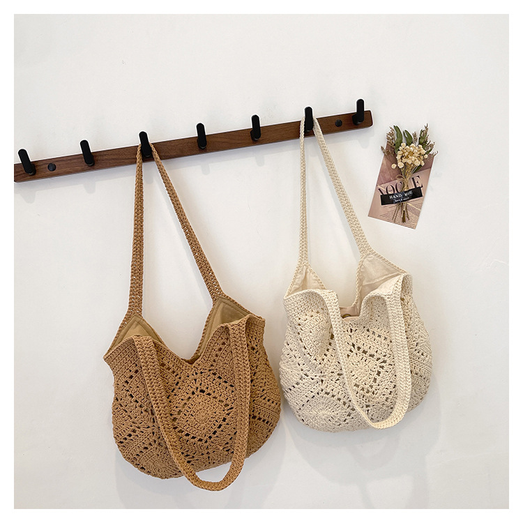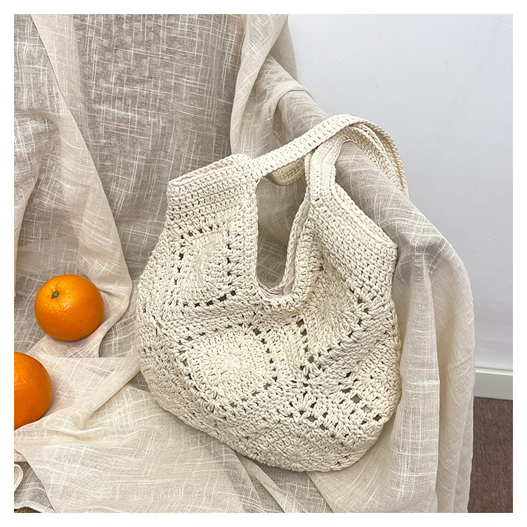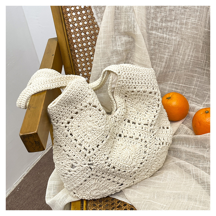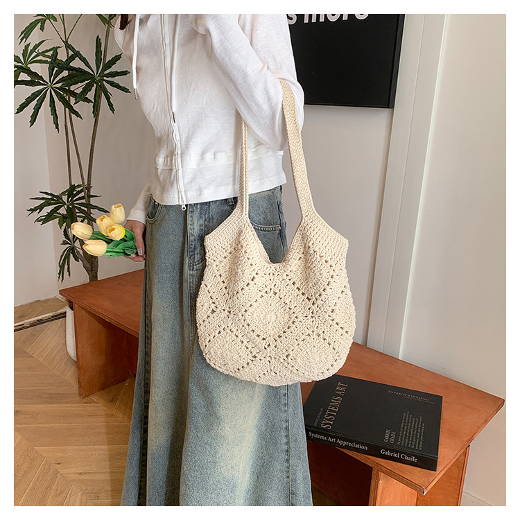 신선한 스타일 목가적 인 스타일 코튼 로프 숄더 백 짠 부드러운 가방 여행 모든 경기 유행 밀짚 짠 가방 면 로프 토트 백스토어 가기