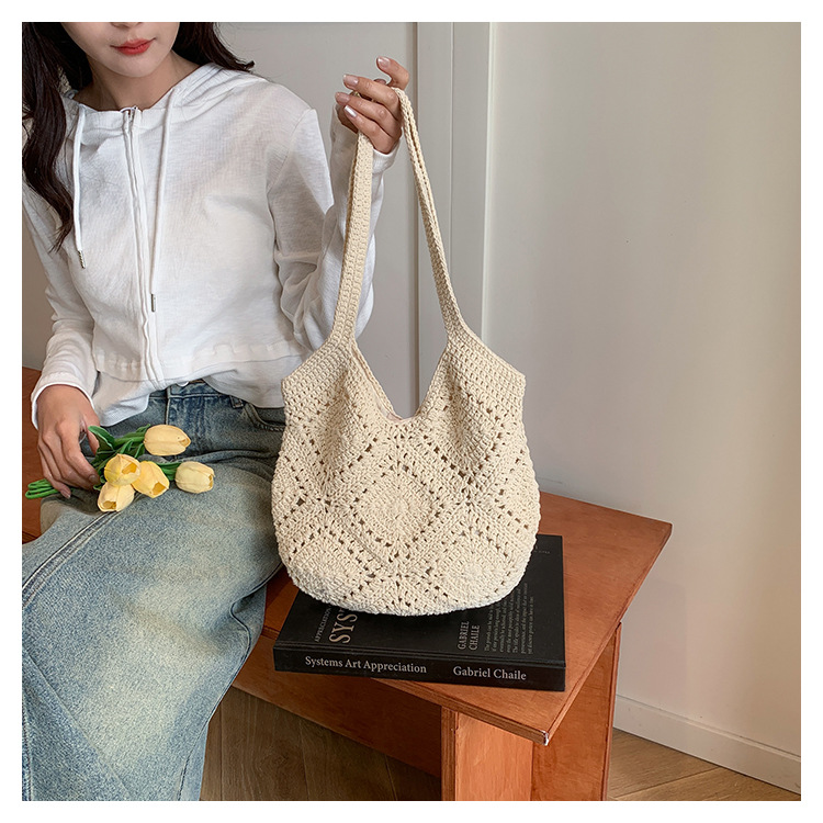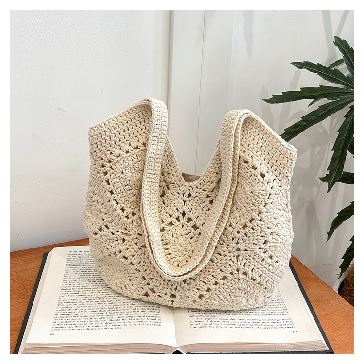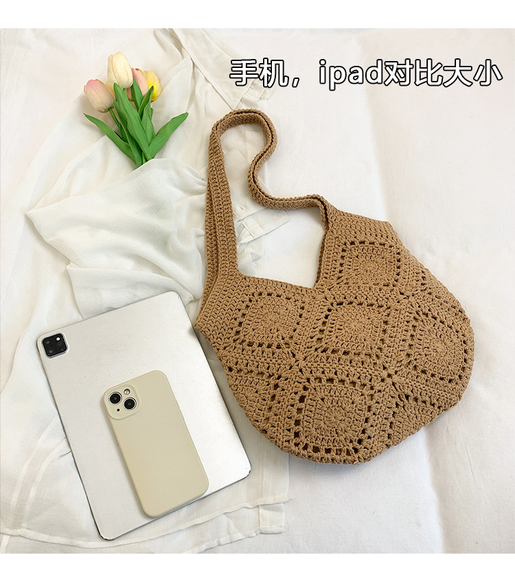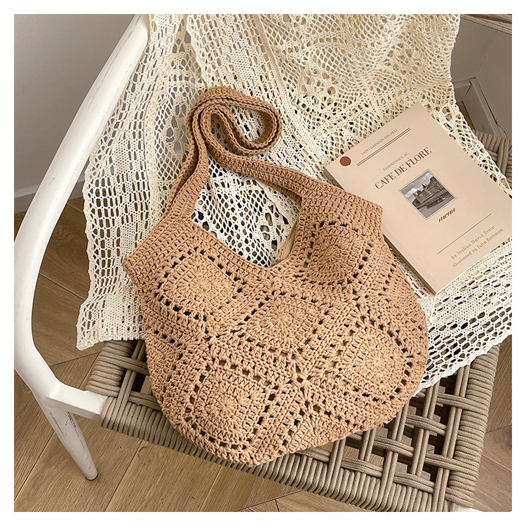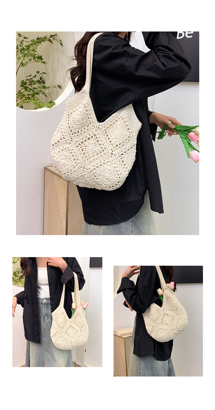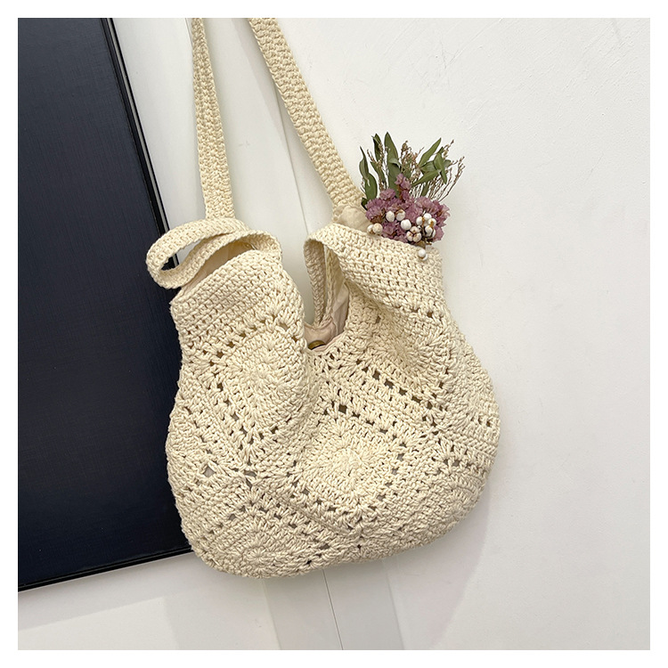 신선한 스타일 목가적 인 스타일 코튼 로프 숄더 백 짠 부드러운 가방 여행 모든 경기 유행 밀짚 짠 가방 면 로프 토트 백스토어 가기