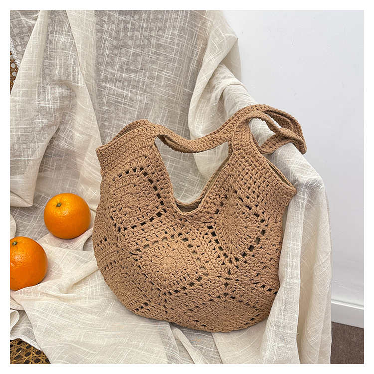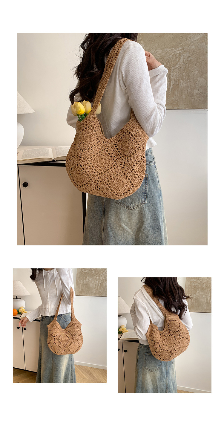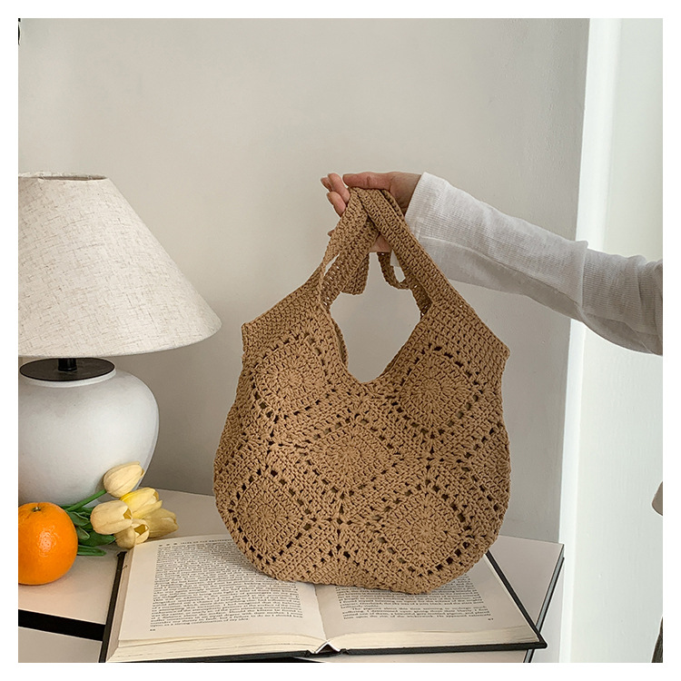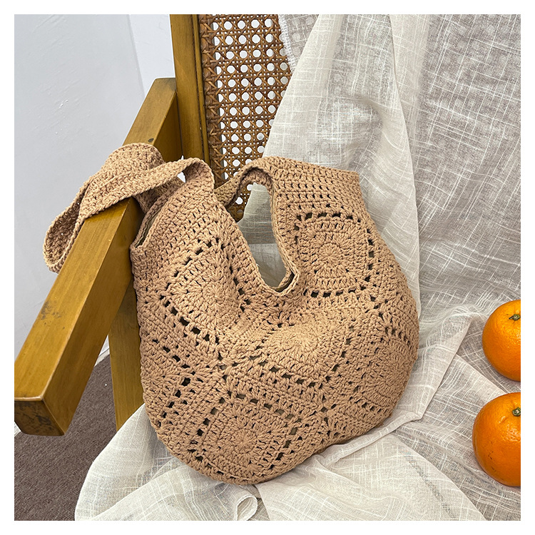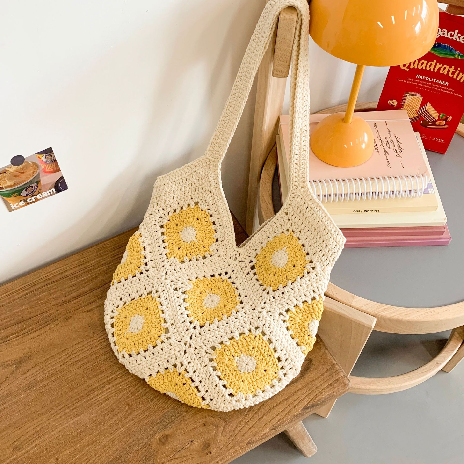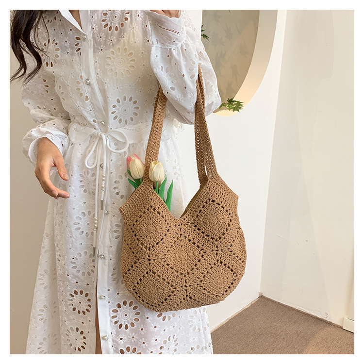 신선한 스타일 목가적 인 스타일 코튼 로프 숄더 백 짠 부드러운 가방 여행 모든 경기 유행 밀짚 짠 가방 면 로프 토트 백스토어 가기