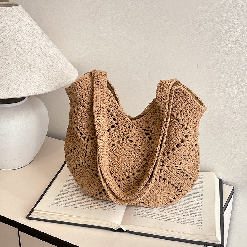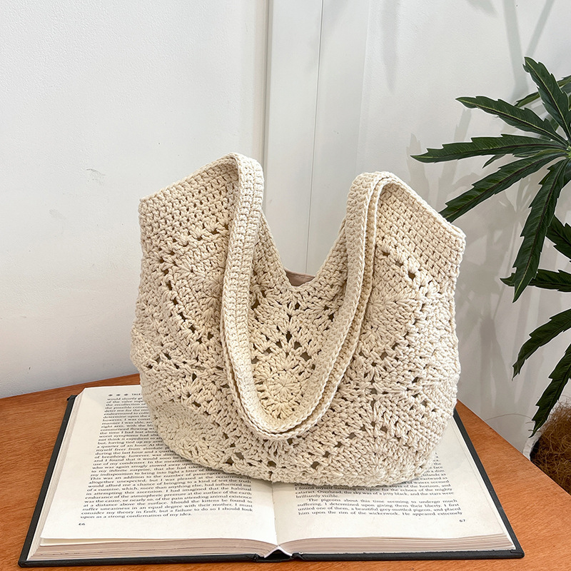 신선한 스타일 목가적 인 스타일 코튼 로프 숄더 백 짠 부드러운 가방 여행 모든 경기 유행 밀짚 짠 가방 면 로프 토트 백