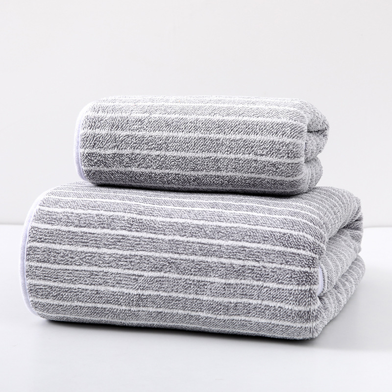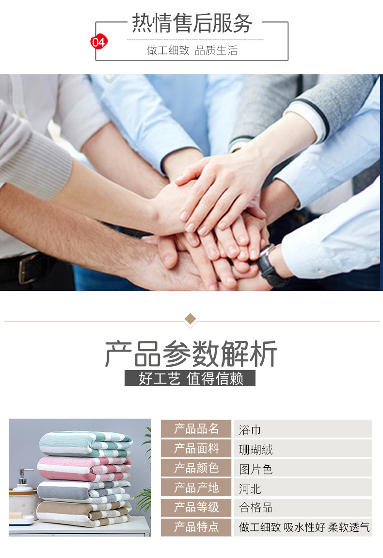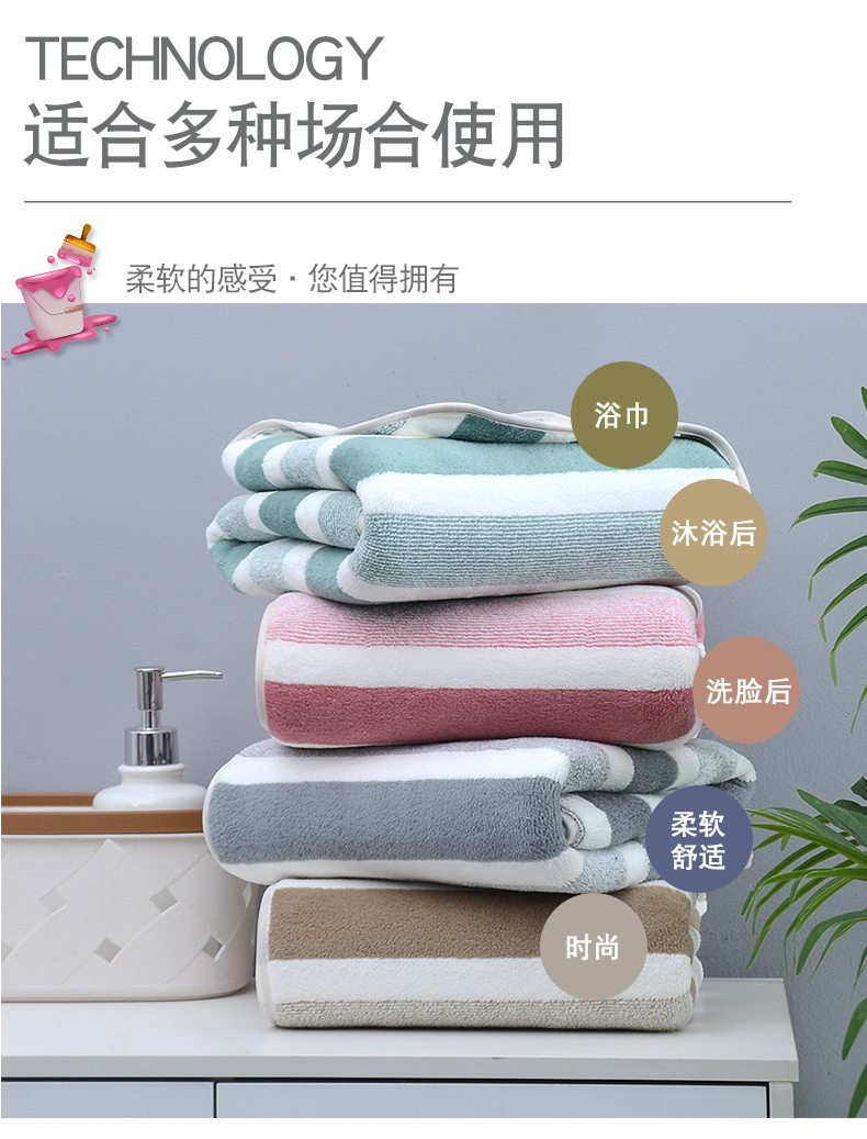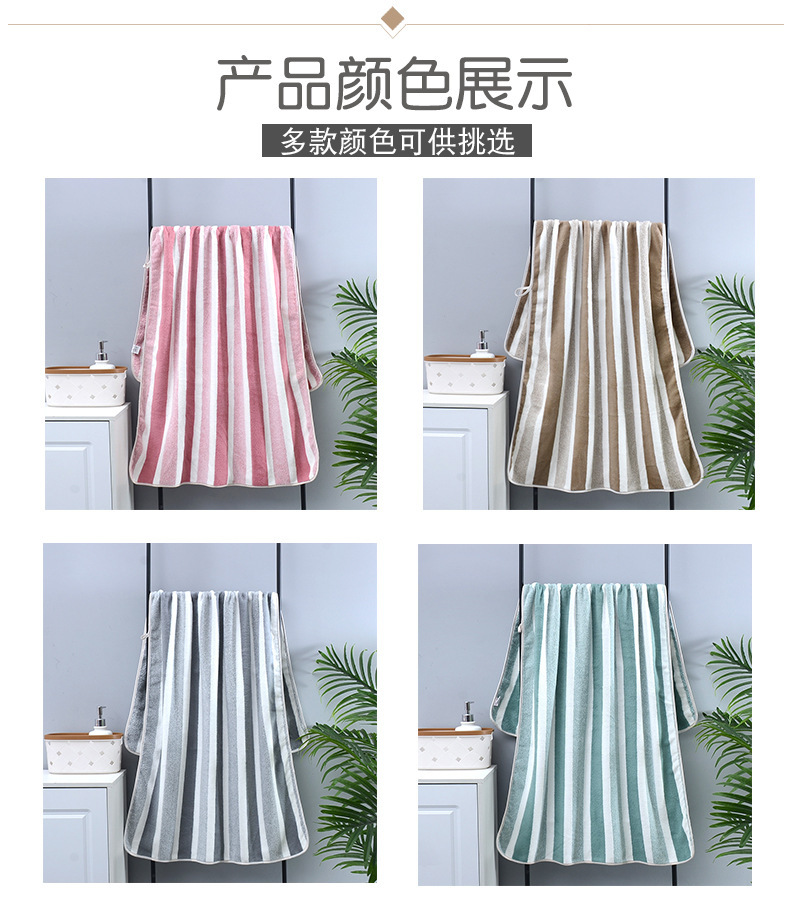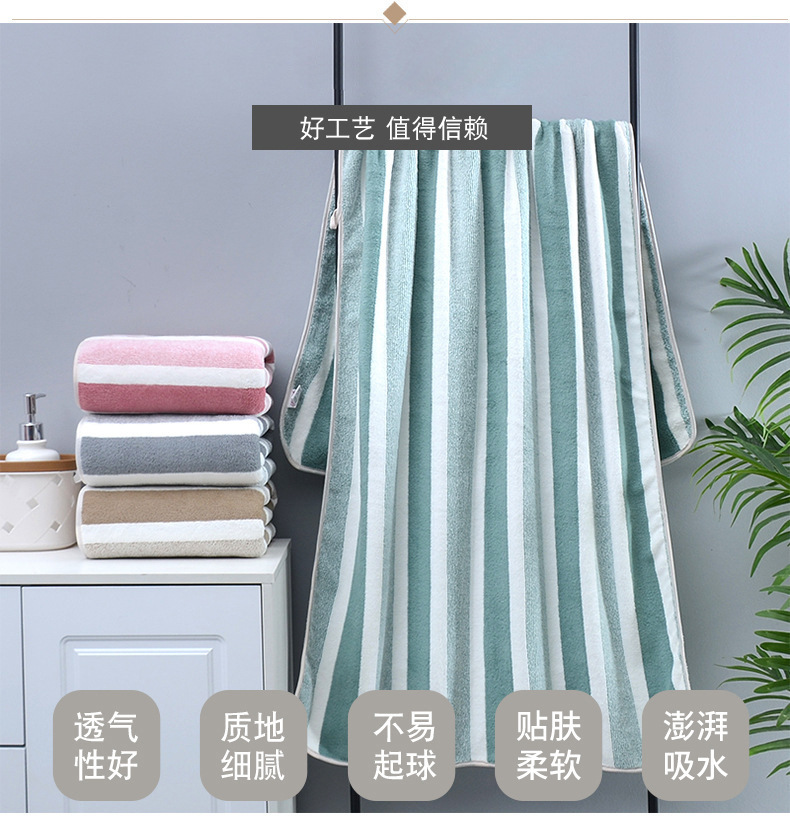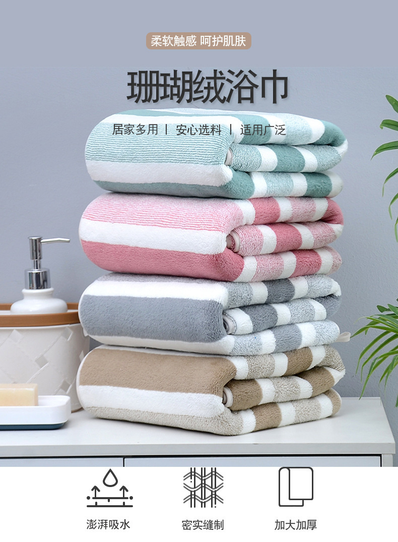 대외 무역용 수건, 부드러운 고밀도 코랄 벨벳 와이드 스트라이프 목욕 타월, 프린트된 흡수성 강화, 두꺼운 대형, 보풀 없는 제품스토어 가기