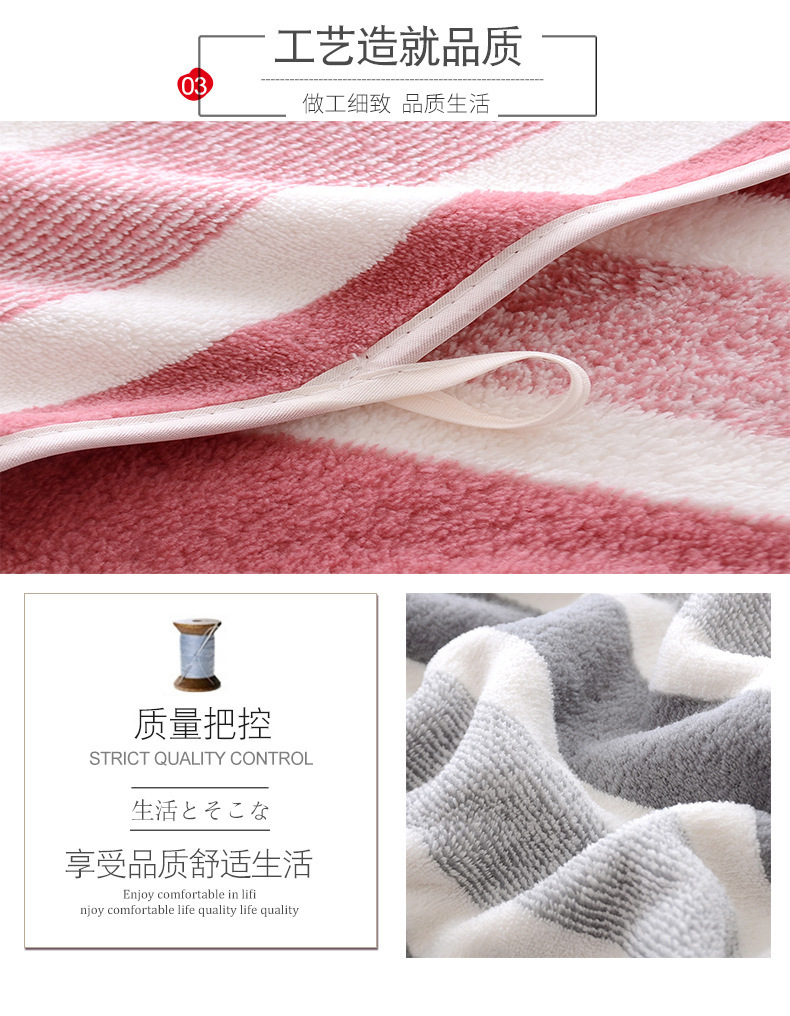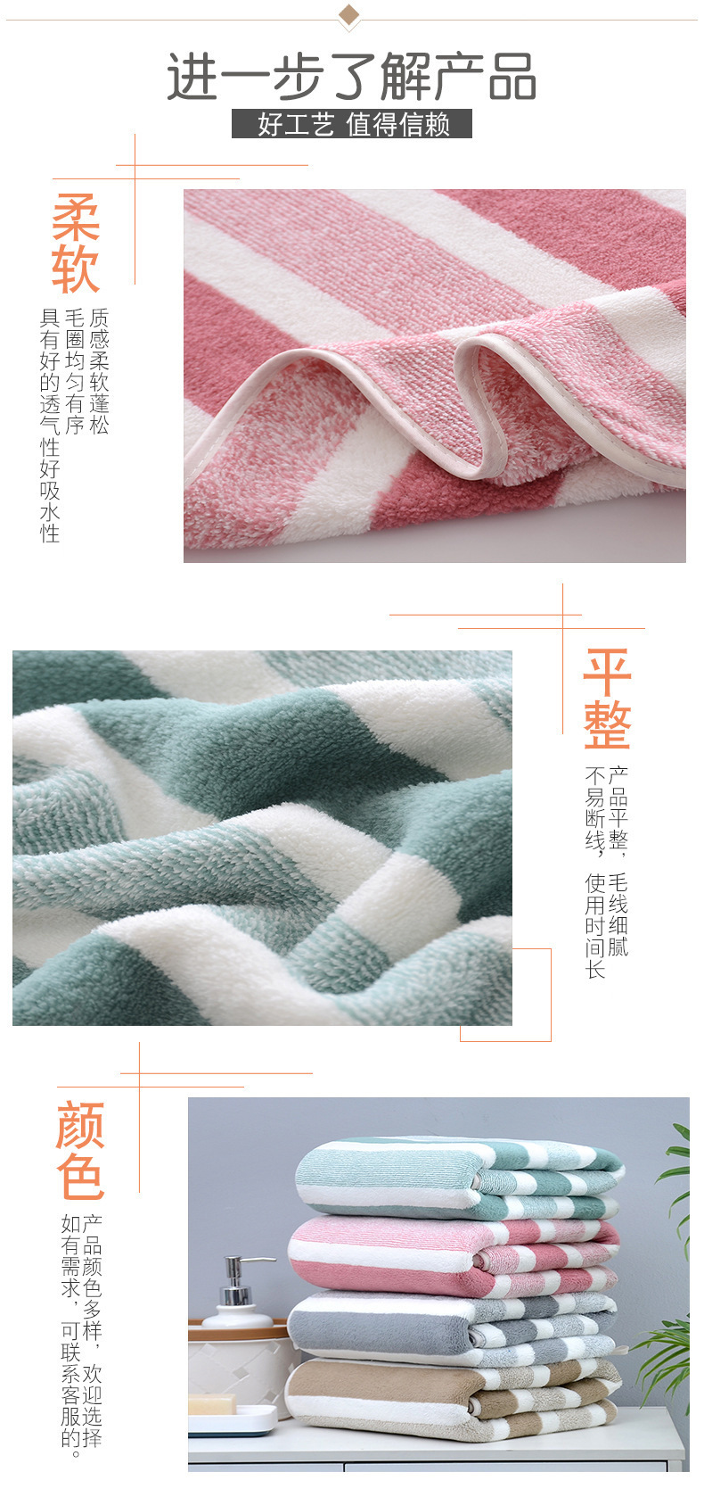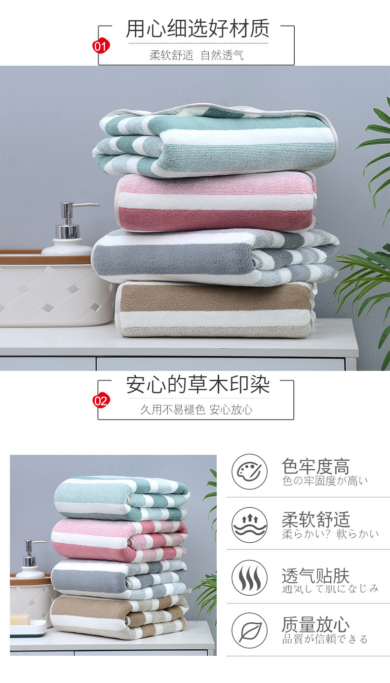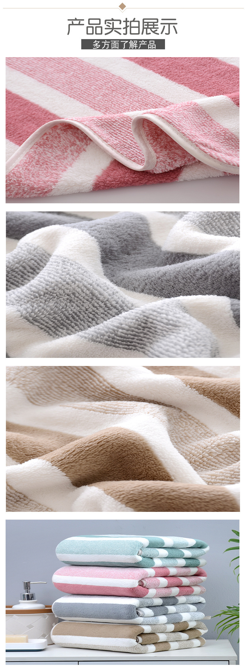 대외 무역용 수건, 부드러운 고밀도 코랄 벨벳 와이드 스트라이프 목욕 타월, 프린트된 흡수성 강화, 두꺼운 대형, 보풀 없는 제품