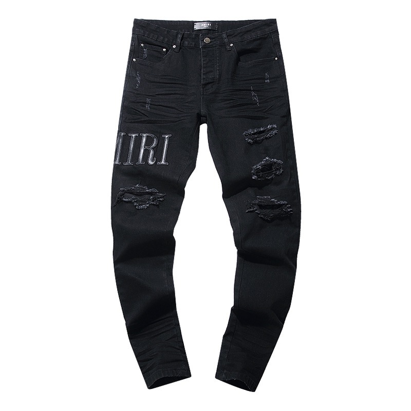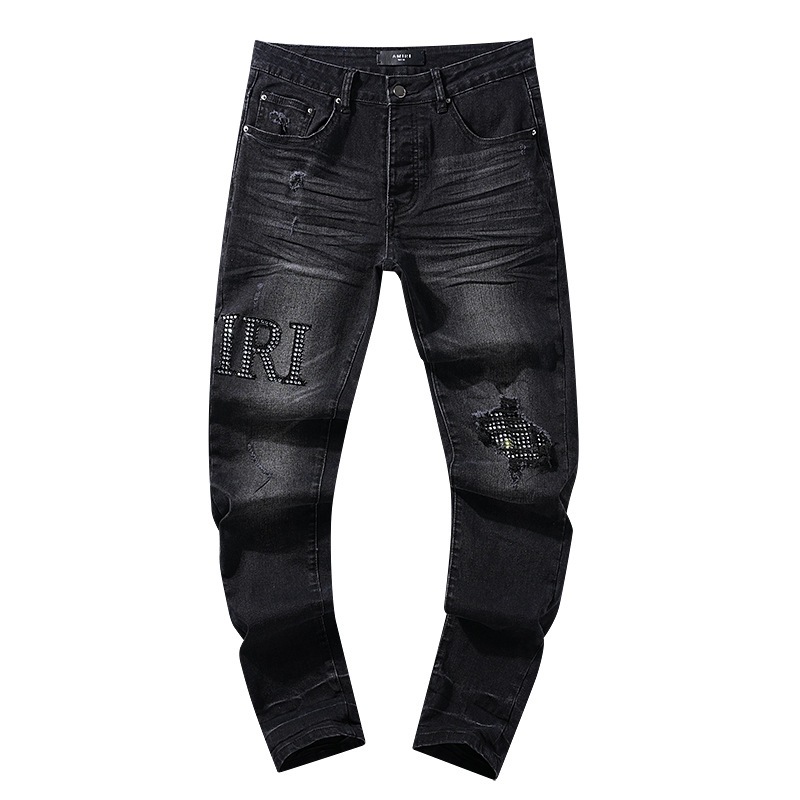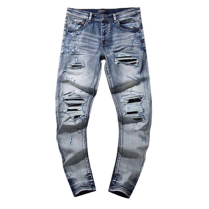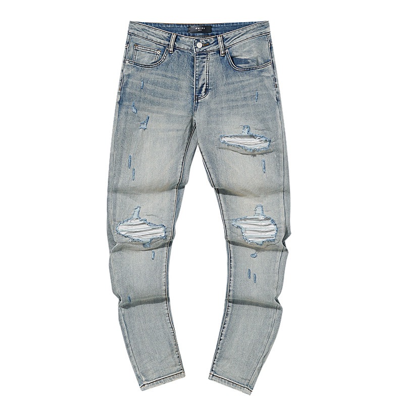 국경 도매 보라색 미국 하이 스트리트 홀 패치 트렌드 레트로 스트레이트 아미리 데님 바지 브랜드스토어 가기