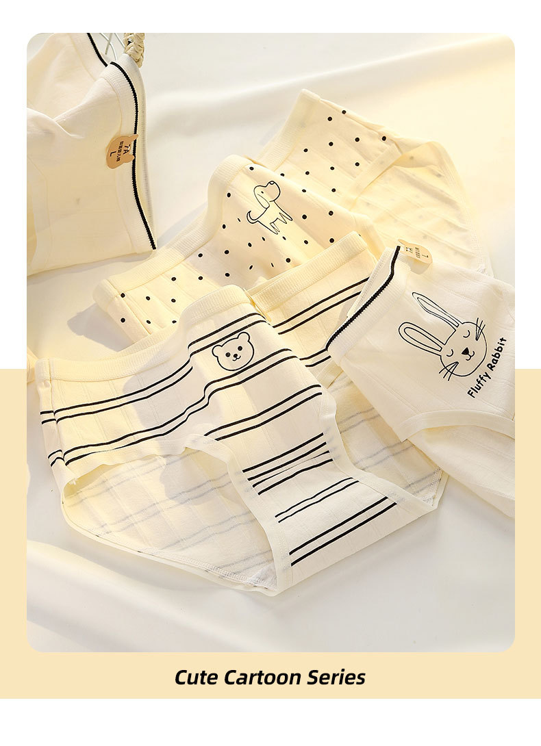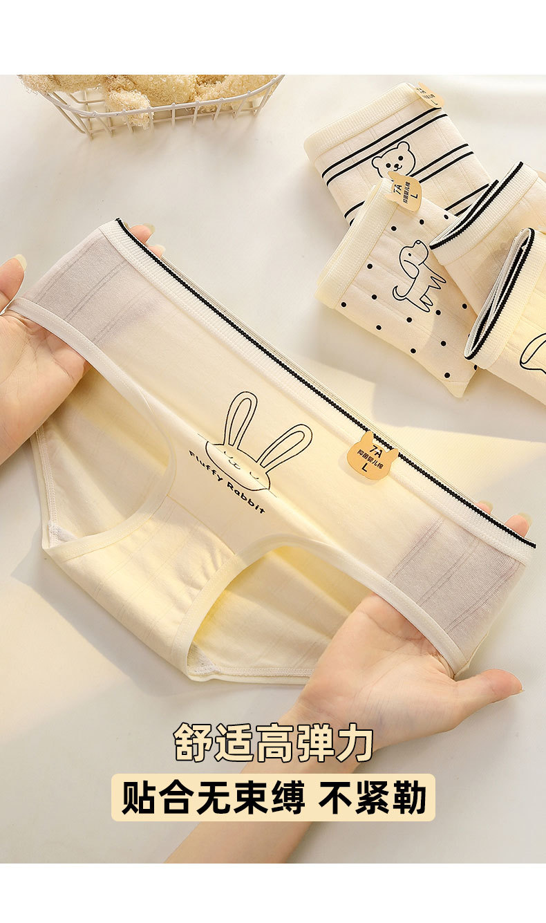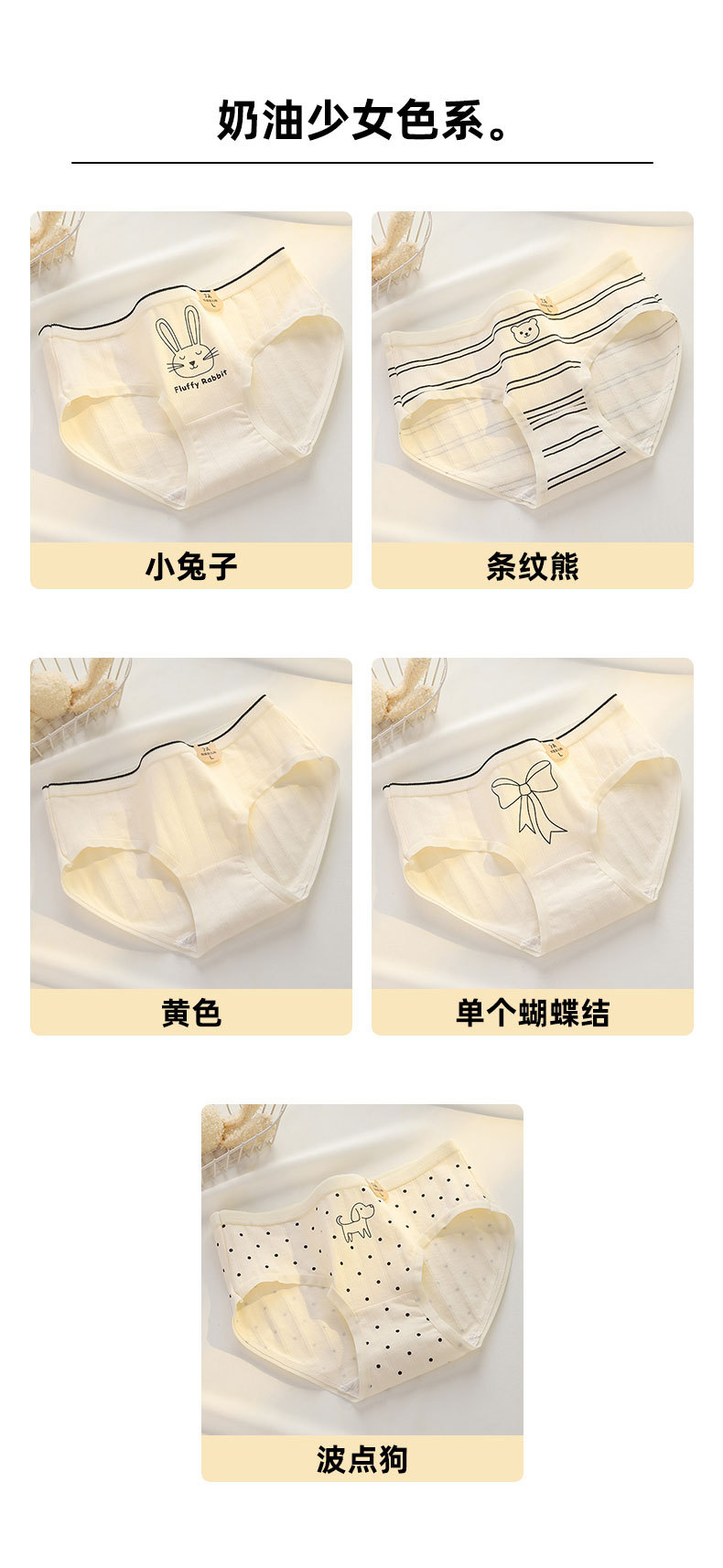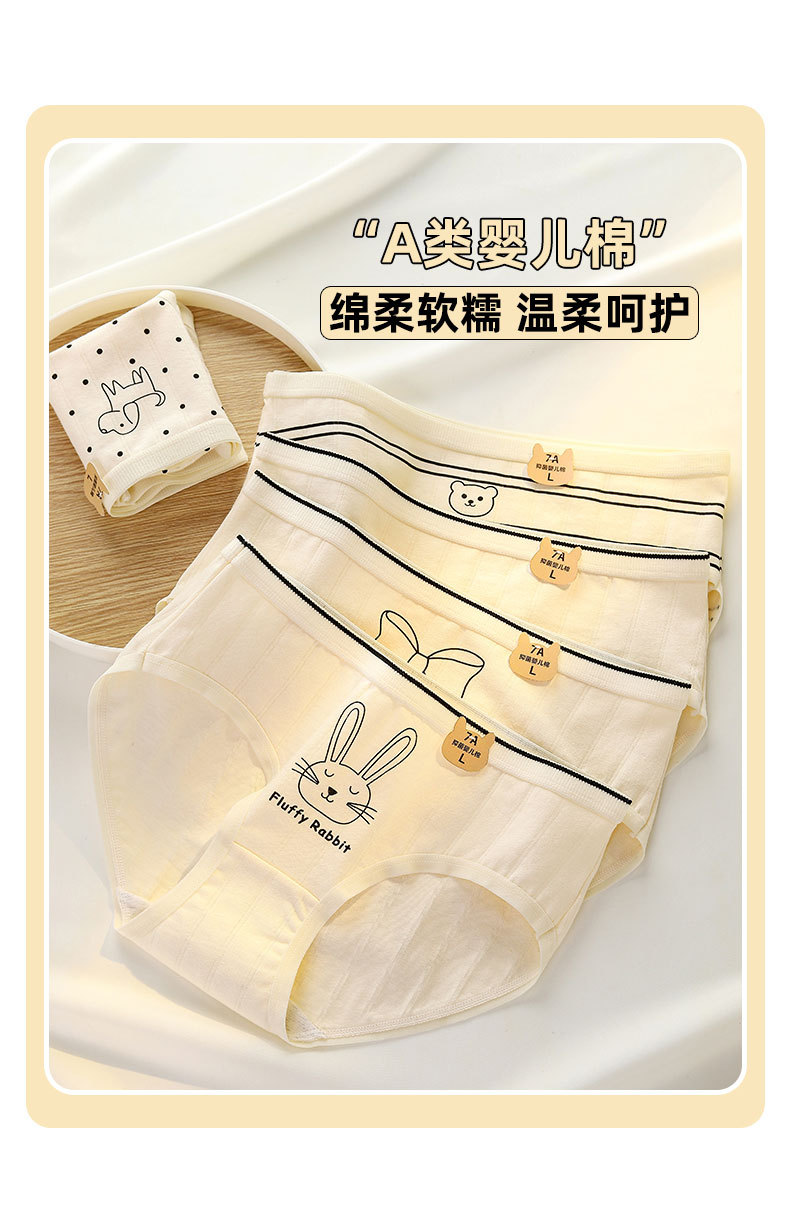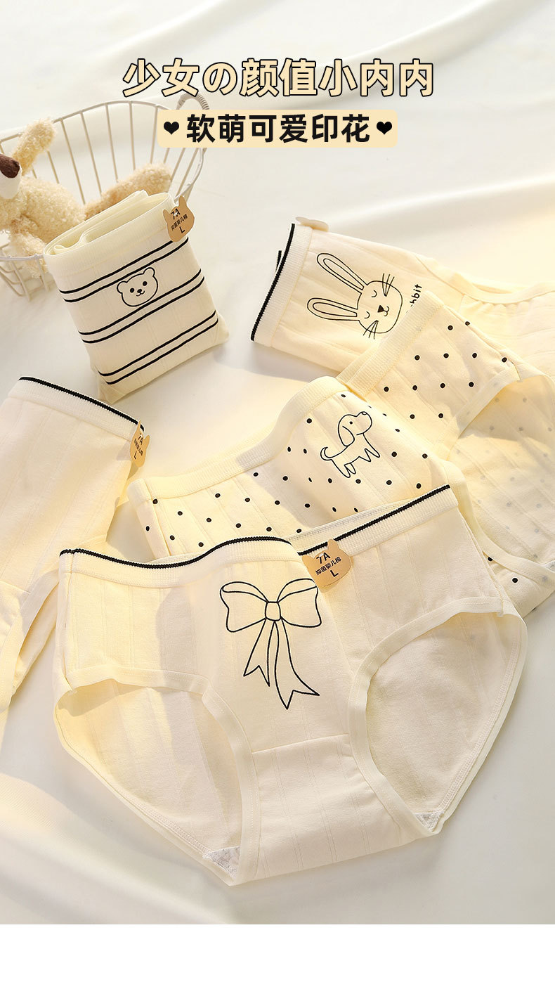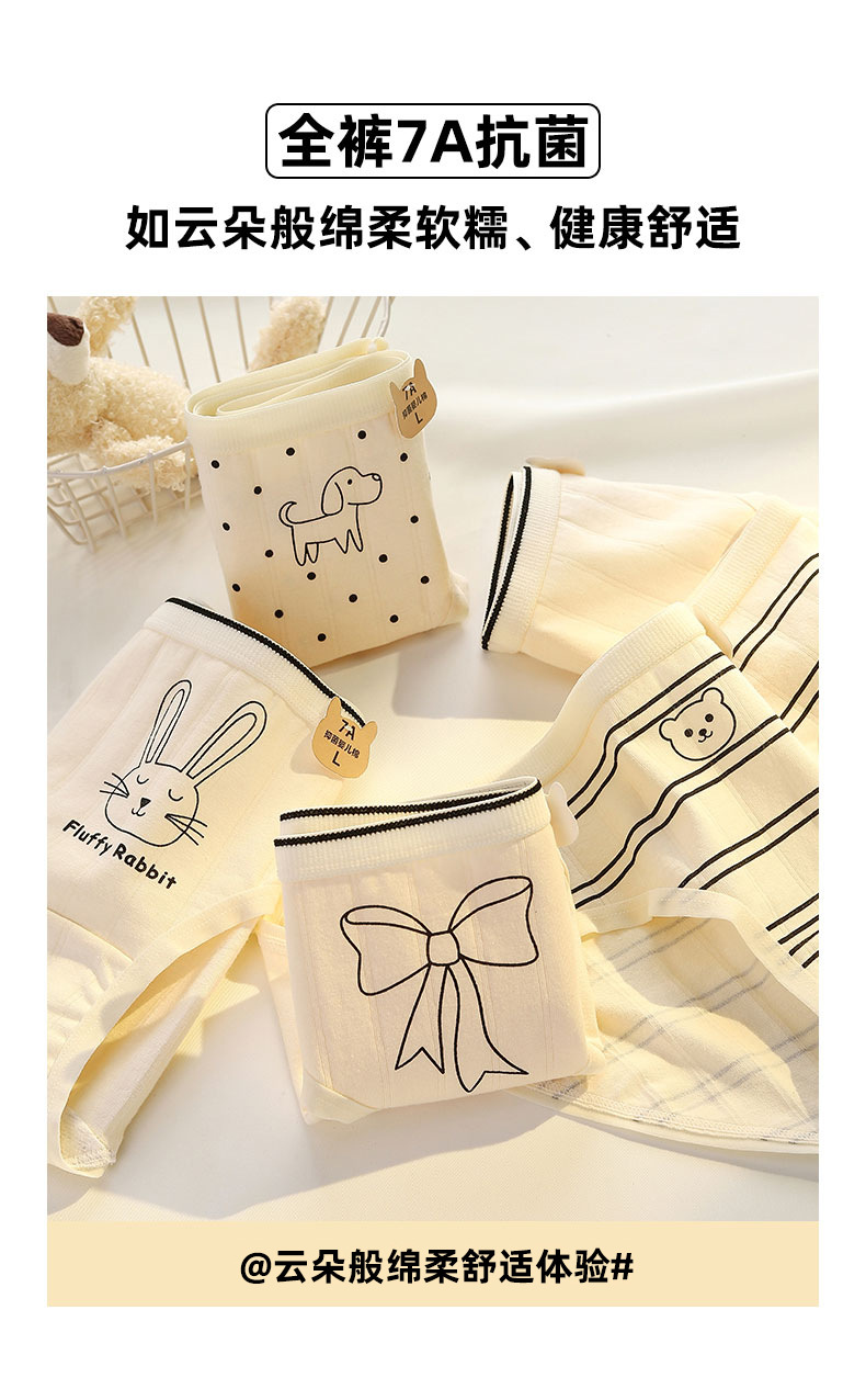 7A 전체 바지 항균 속옷 여성의 중간 허리 피부 친화적 인 통기성 순수 면 안티 박테리아 내부 스트레치 만화 소녀 학생 바지