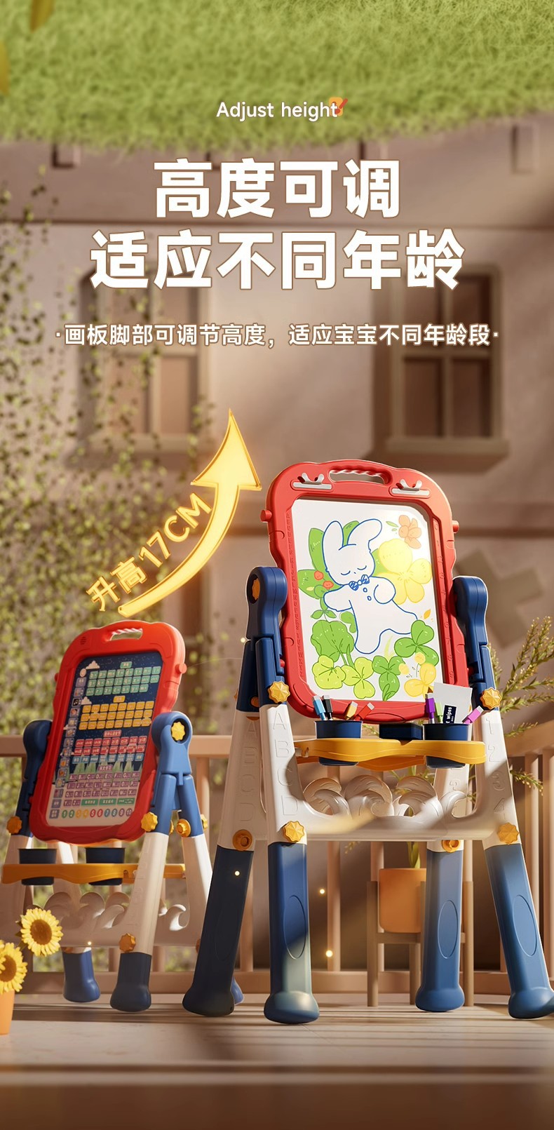 • [클릭해서 읽기/긴 다리] 파란색 양면 이젤(정품 선물 상자)