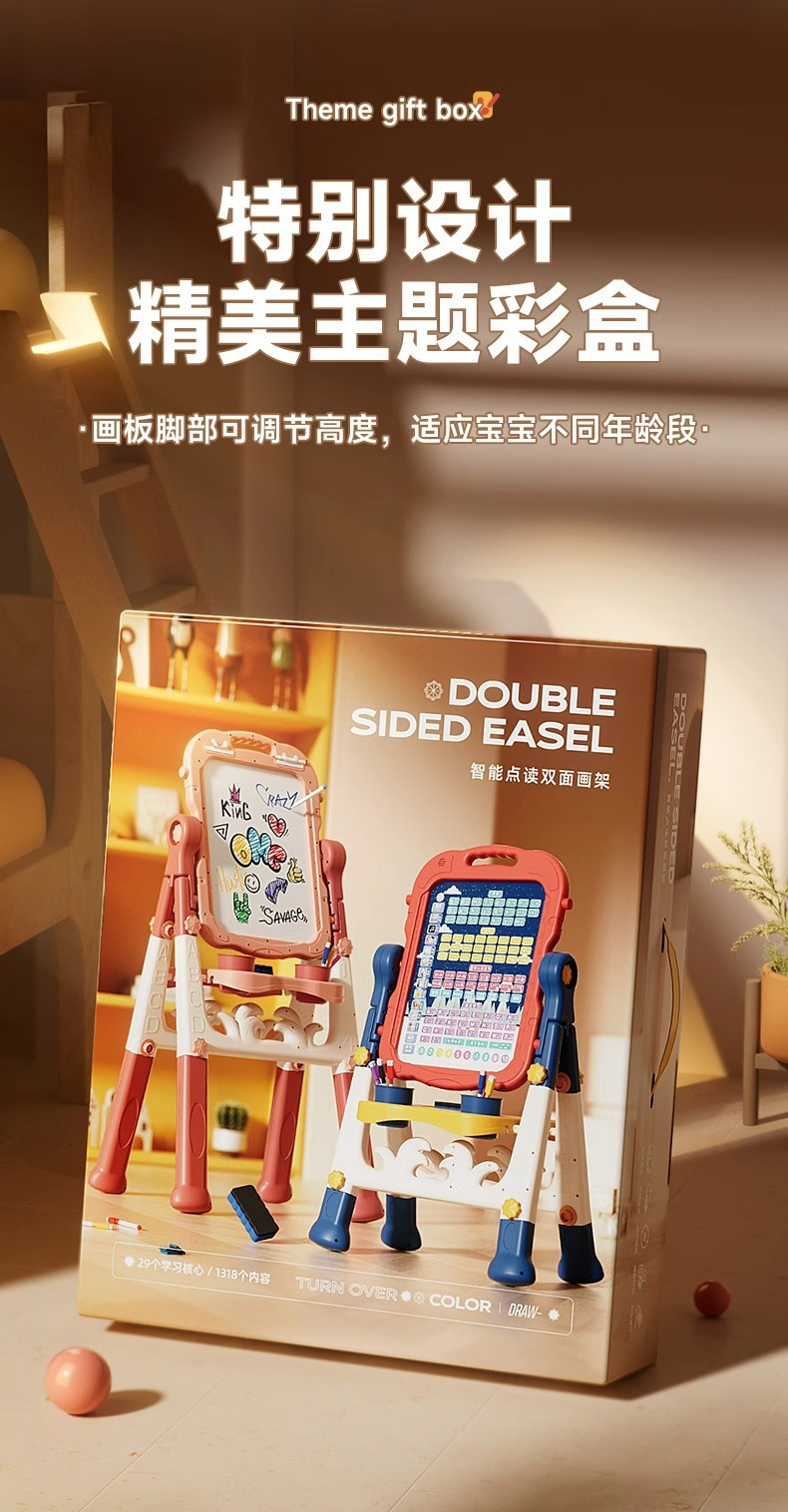 • [클릭읽기/긴다리] 핑크 양면 이젤 (고급선물박스)