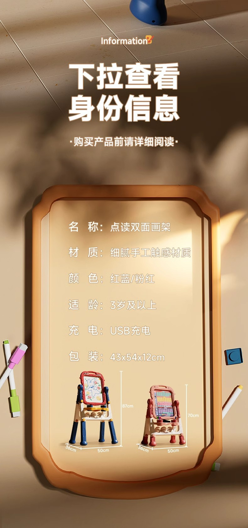 • [클릭해서 읽기/짧은 다리] 파란색 양면 이젤(정품 선물 상자)
