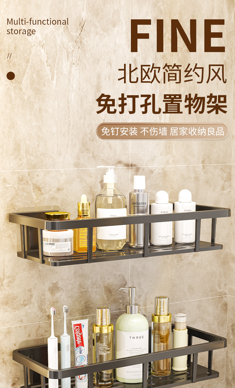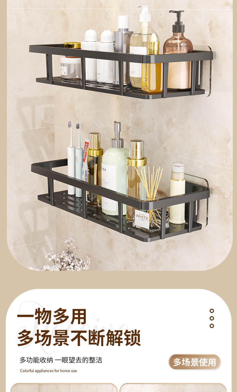 욕실 수납 선반, 무타공 설치, 벽걸이형 화장실 수납 선반, 못 없이 설치