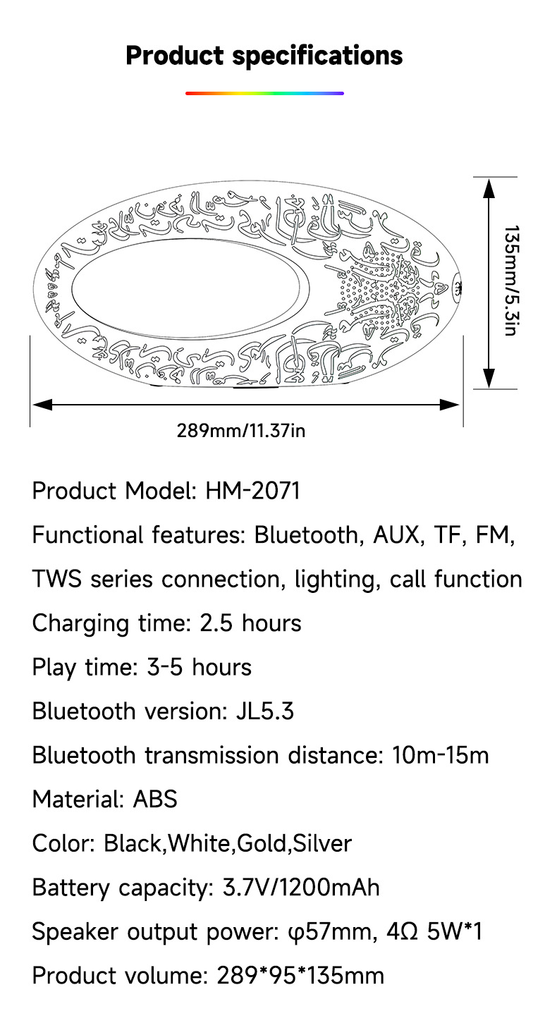 국경 새로운 2071 다채로운 조명 무선 블루투스 스피커 야외 휴대용 서브 우퍼 카드 TWS!