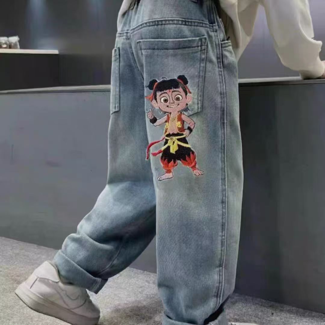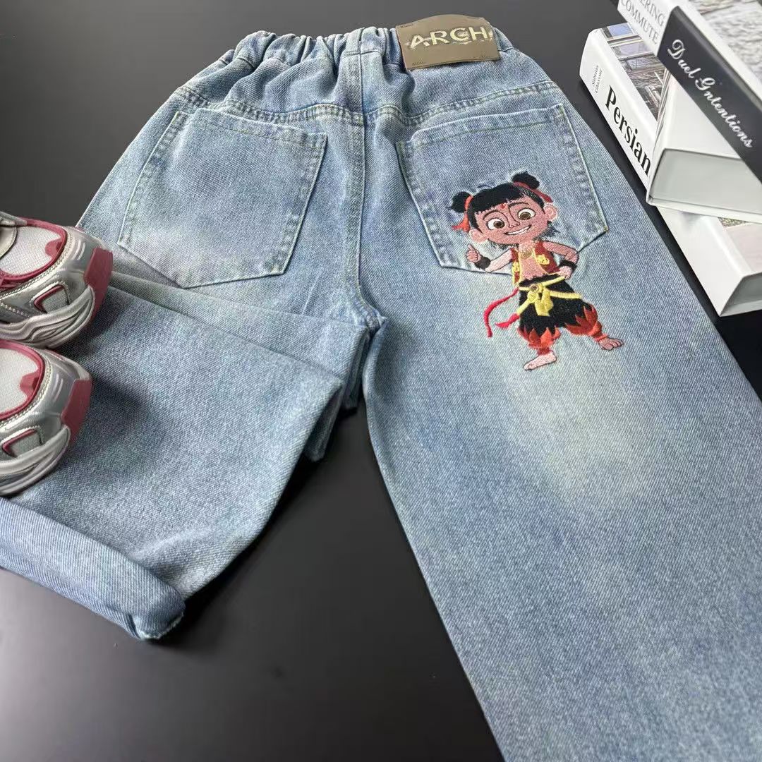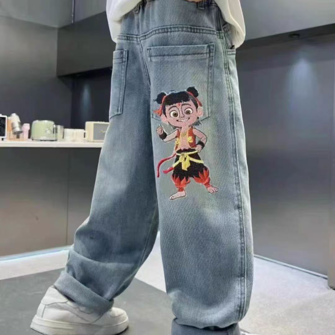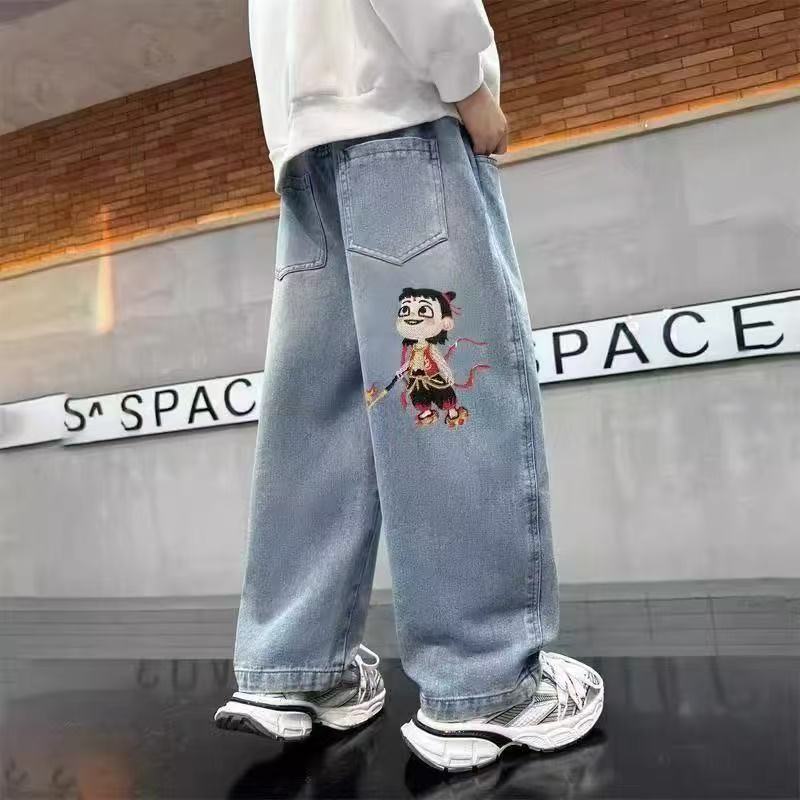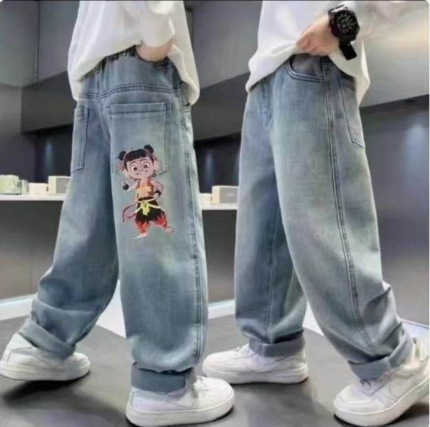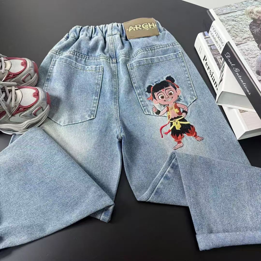 어린이 청바지 봄과 가을 2025 새로운 유니섹스 서양식 스트레이트 바지 어린이 봄 바지스토어 가기