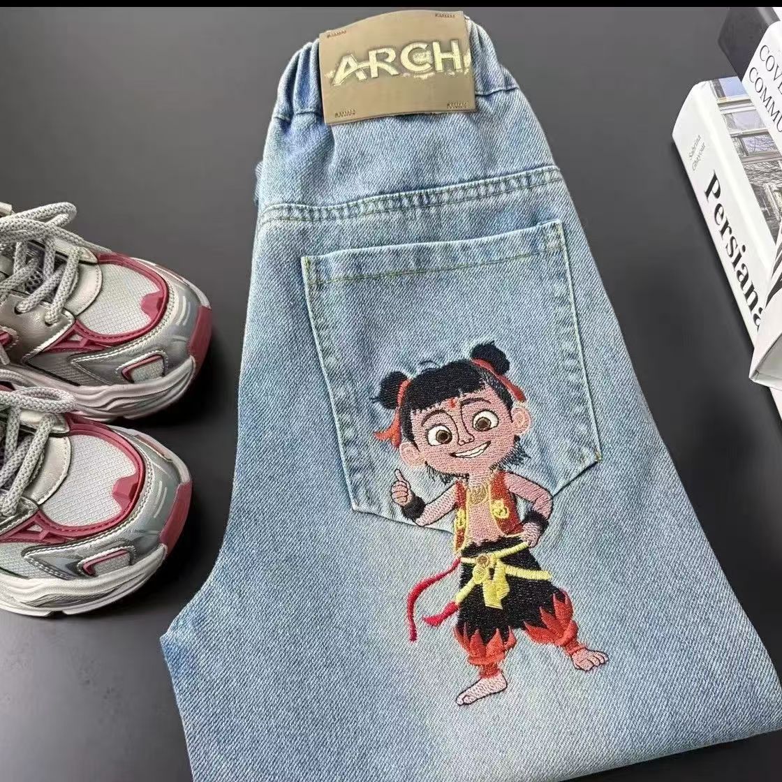어린이 청바지 봄과 가을 2025 새로운 유니섹스 서양식 스트레이트 바지 어린이 봄 바지