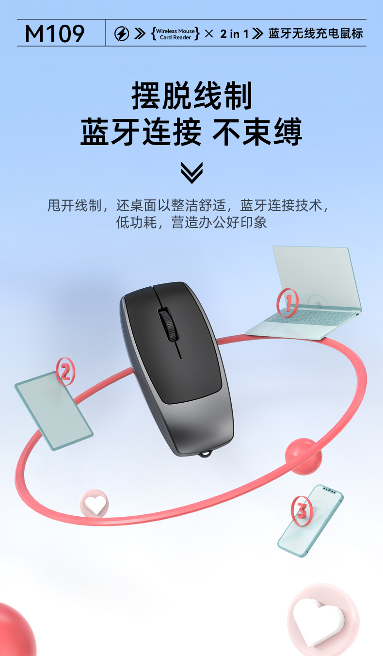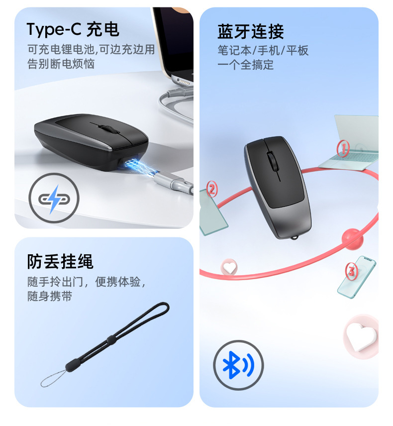 무선 미니 블루투스 마우스, 카드 삽입 가능, 카드 리더기, 무음 충전, 끈, 공예 선물, 대외 무역 제조업체 키보드스토어 가기