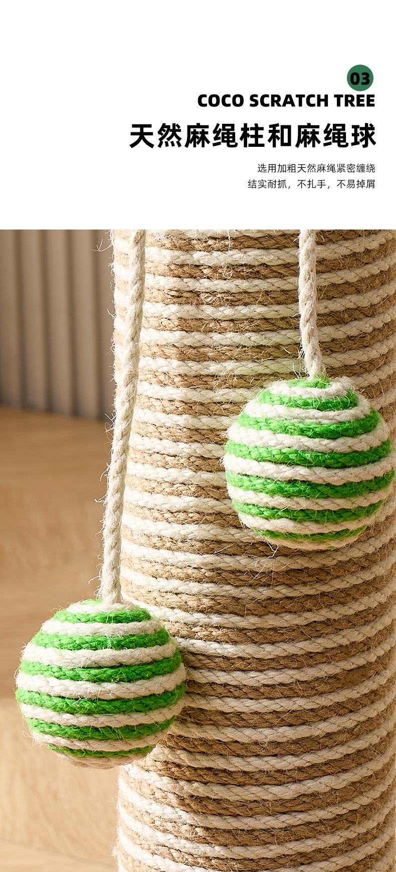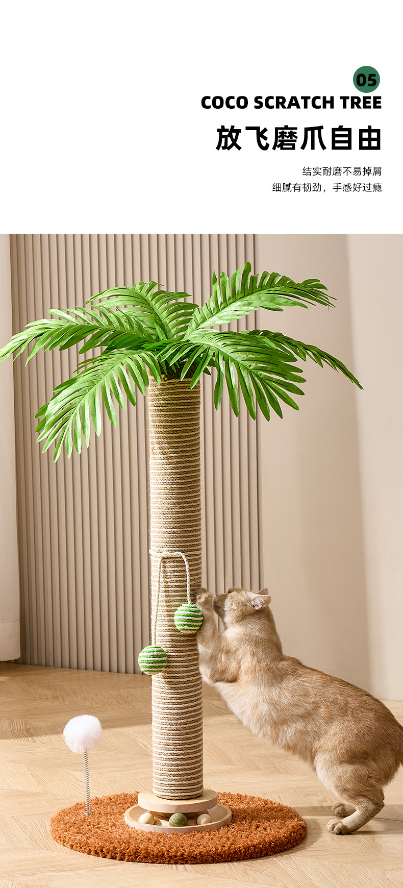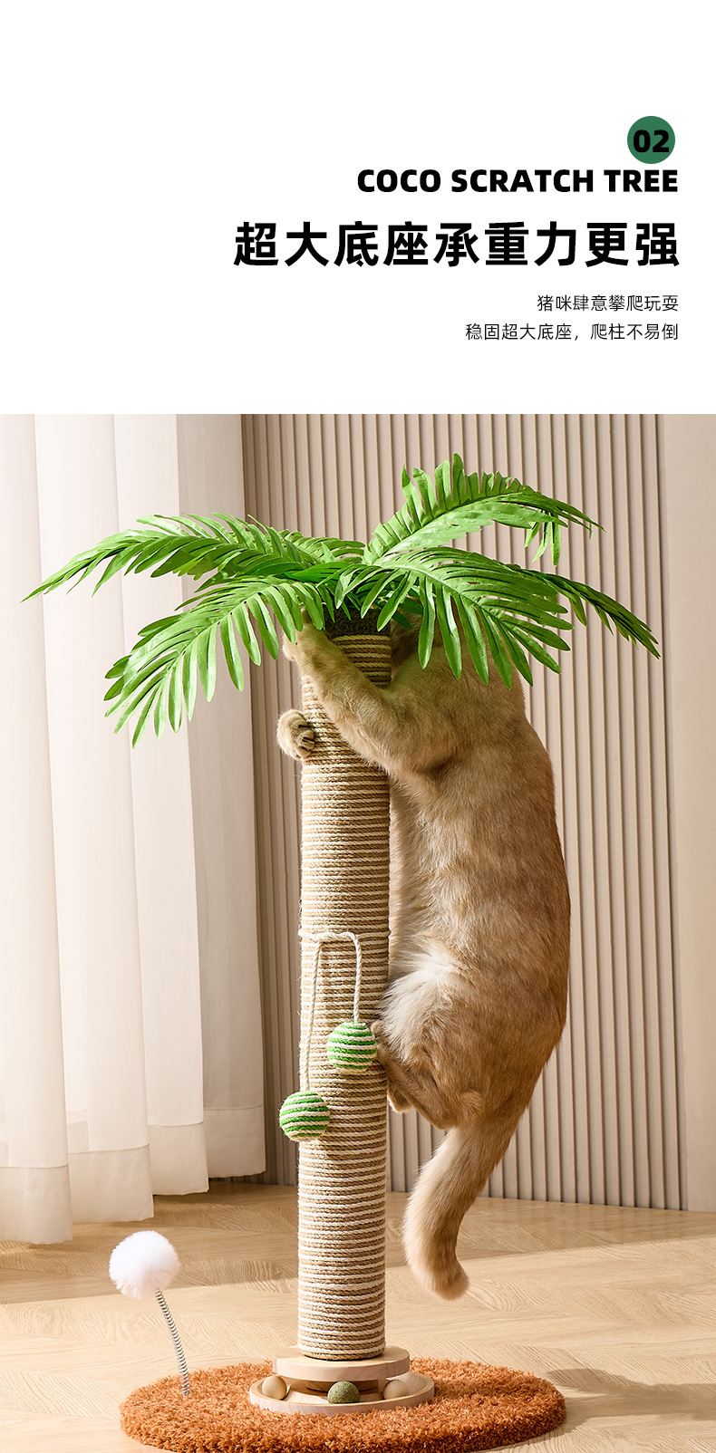 고양이 스크래쳐, 고양이 캣타워, 고양이 둥지 일체형, 창의적인 코코넛 나무 고양이 클라이밍 프레임, 내마모성, 부스러기 잘 안 빠지는, 스탠드형 고양이 발톱갈이대