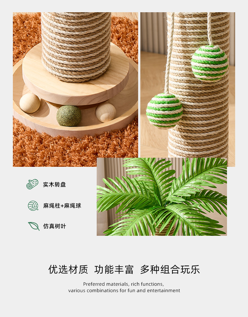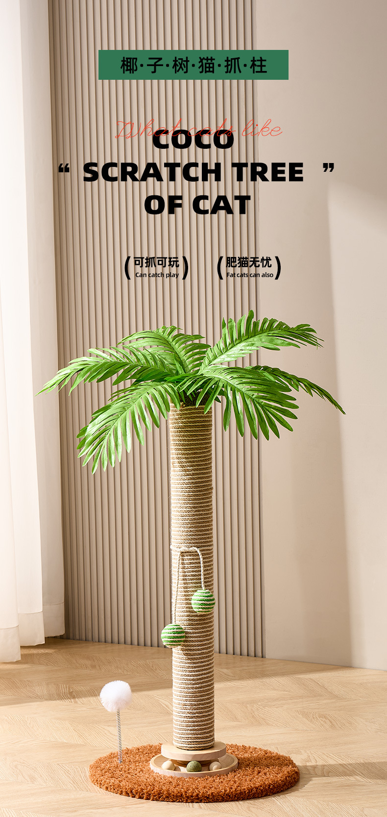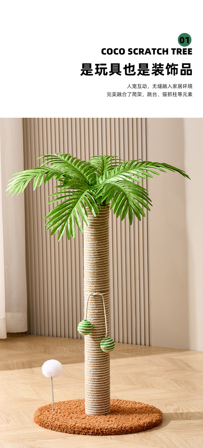 고양이 스크래쳐, 고양이 캣타워, 고양이 둥지 일체형, 창의적인 코코넛 나무 고양이 클라이밍 프레임, 내마모성, 부스러기 잘 안 빠지는, 스탠드형 고양이 발톱갈이대