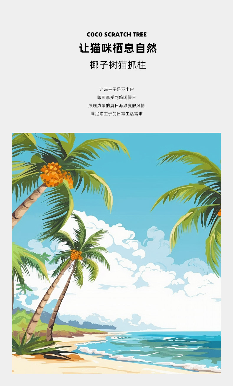 고양이 스크래쳐, 고양이 캣타워, 고양이 둥지 일체형, 창의적인 코코넛 나무 고양이 클라이밍 프레임, 내마모성, 부스러기 잘 안 빠지는, 스탠드형 고양이 발톱갈이대스토어 가기