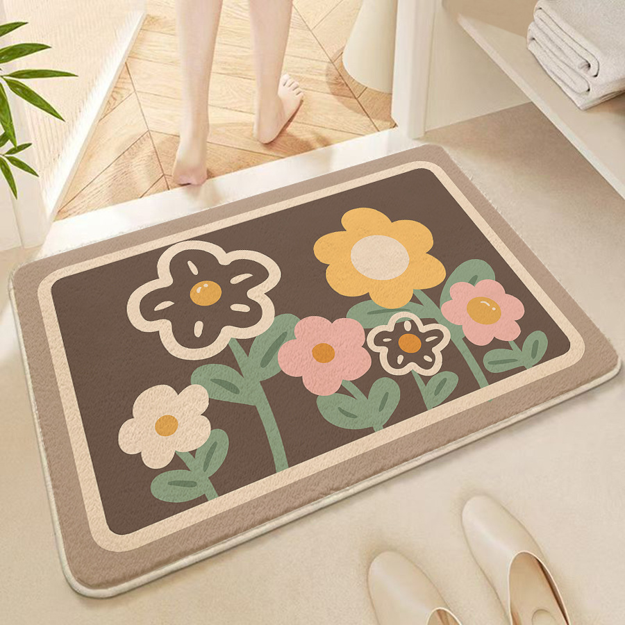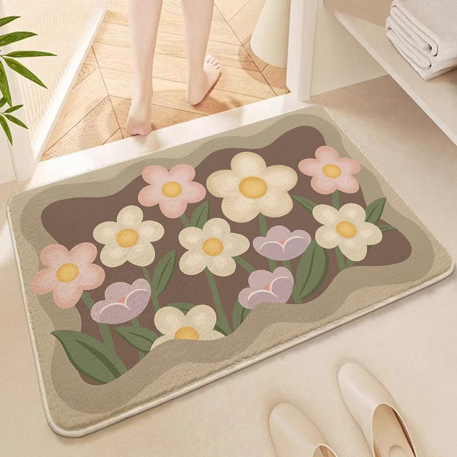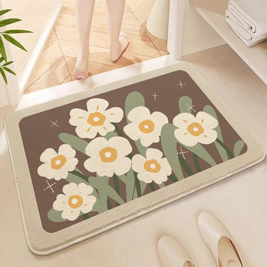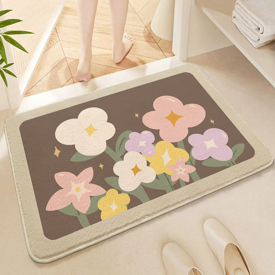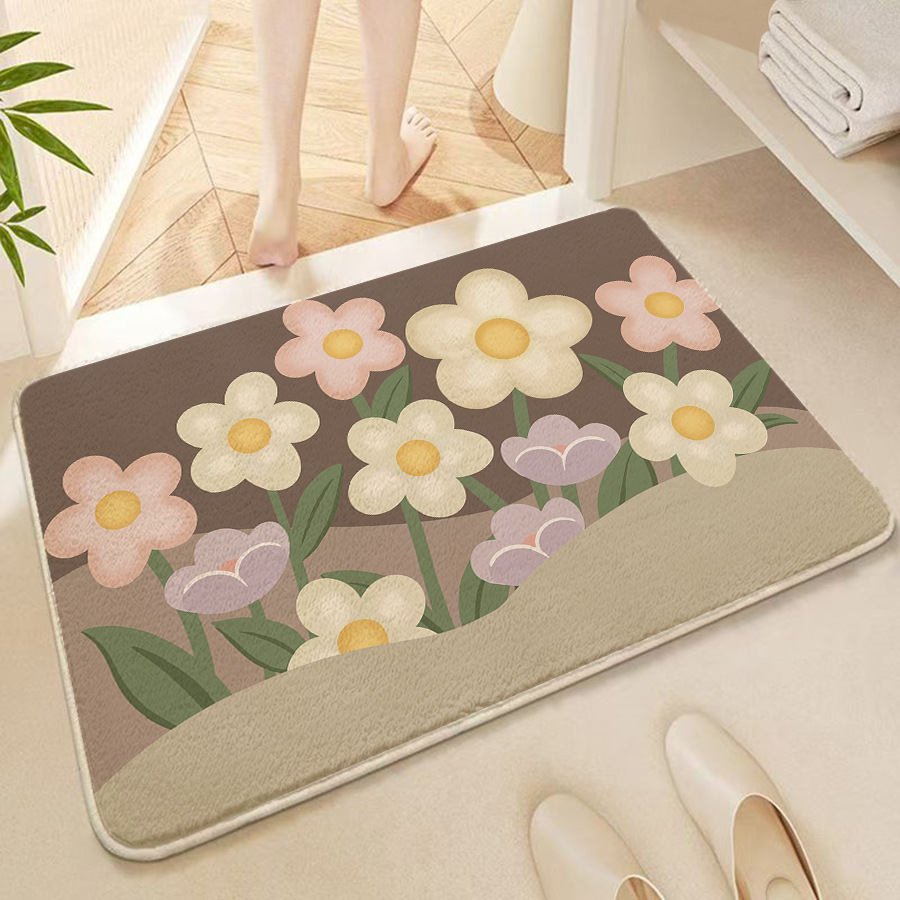 작은 신선한 꽃 캐시미어 바닥 매트 욕실 슈퍼 흡수성 미끄럼 방지 발 매트 가정용 화장실 도어 매트스토어 가기