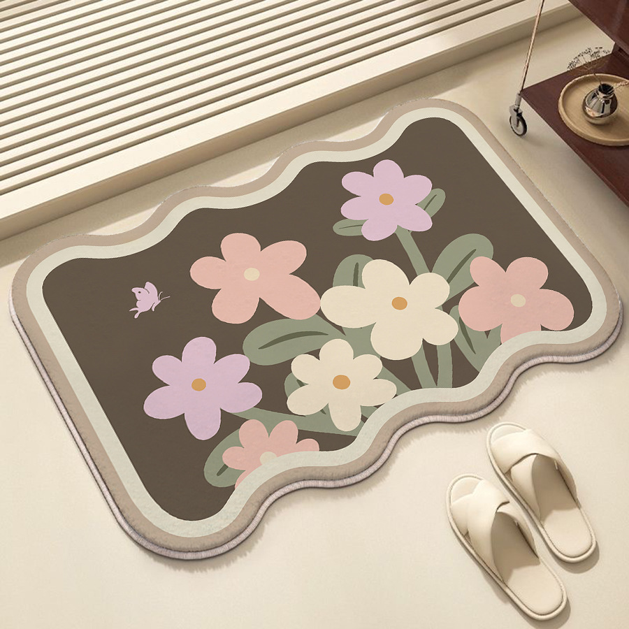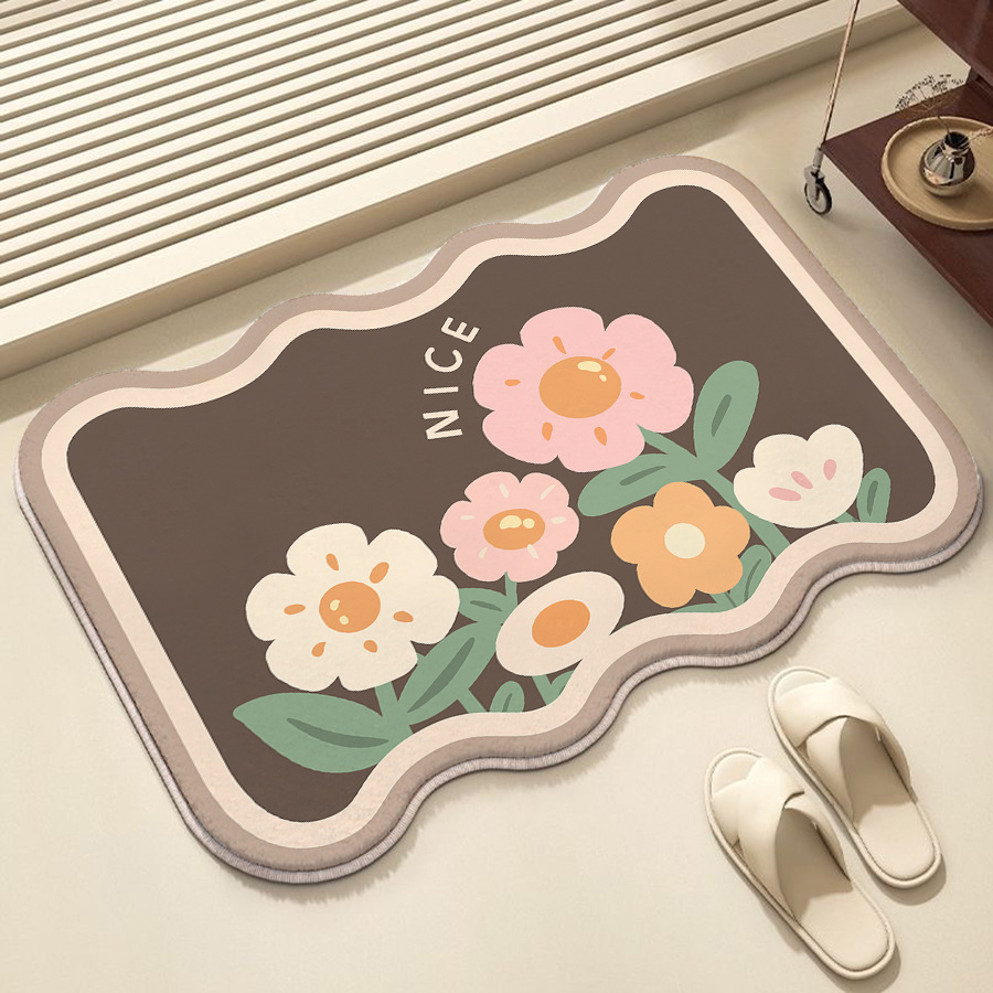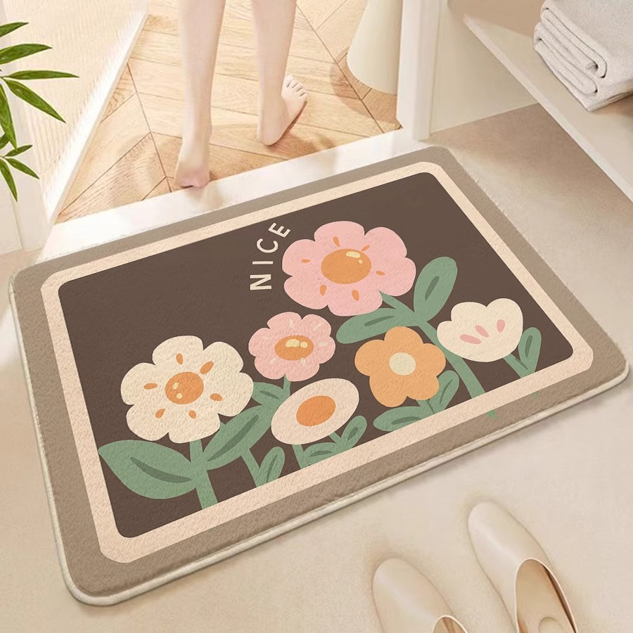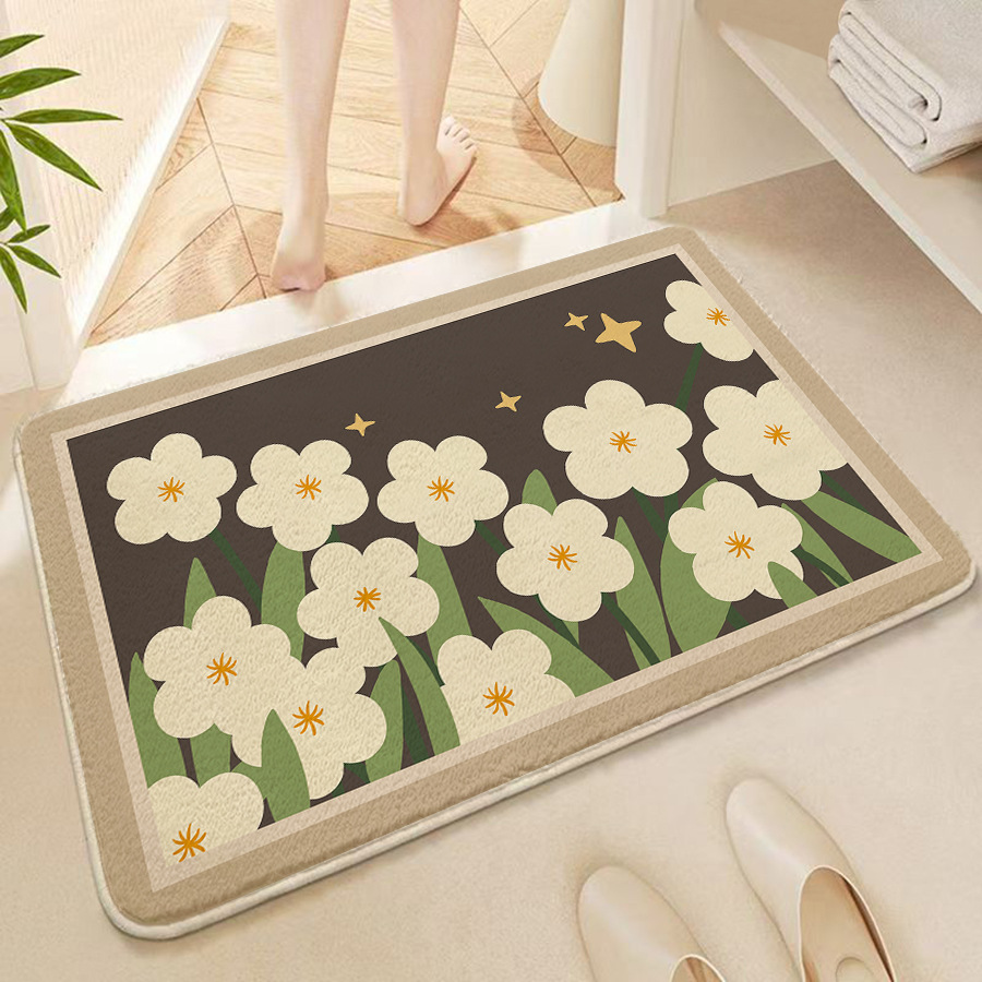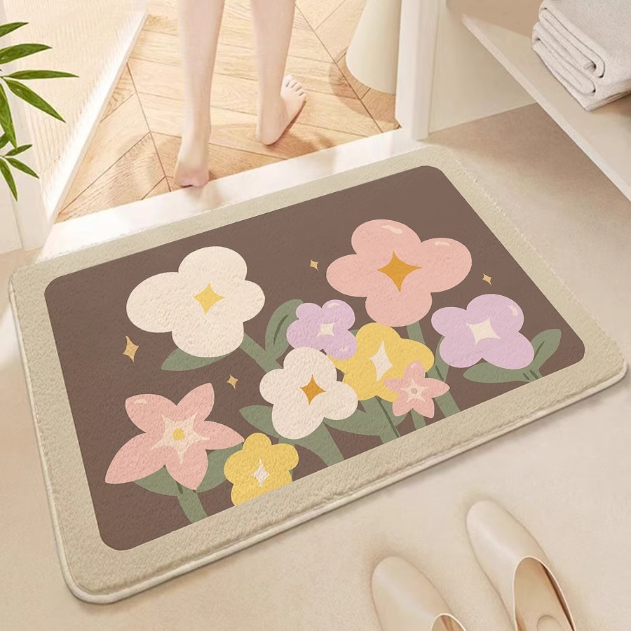 작은 신선한 꽃 캐시미어 바닥 매트 욕실 슈퍼 흡수성 미끄럼 방지 발 매트 가정용 화장실 도어 매트스토어 가기