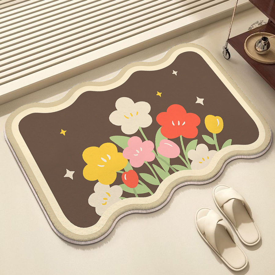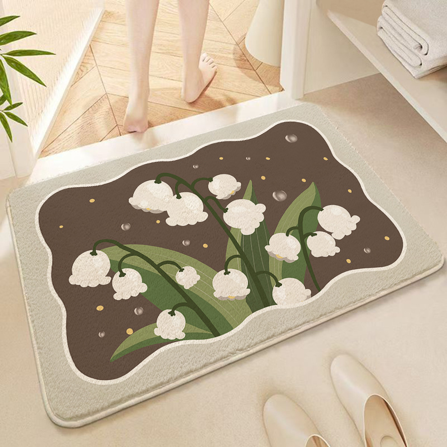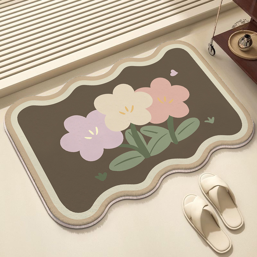 작은 신선한 꽃 캐시미어 바닥 매트 욕실 슈퍼 흡수성 미끄럼 방지 발 매트 가정용 화장실 도어 매트