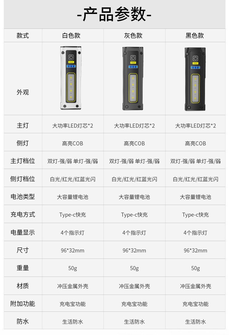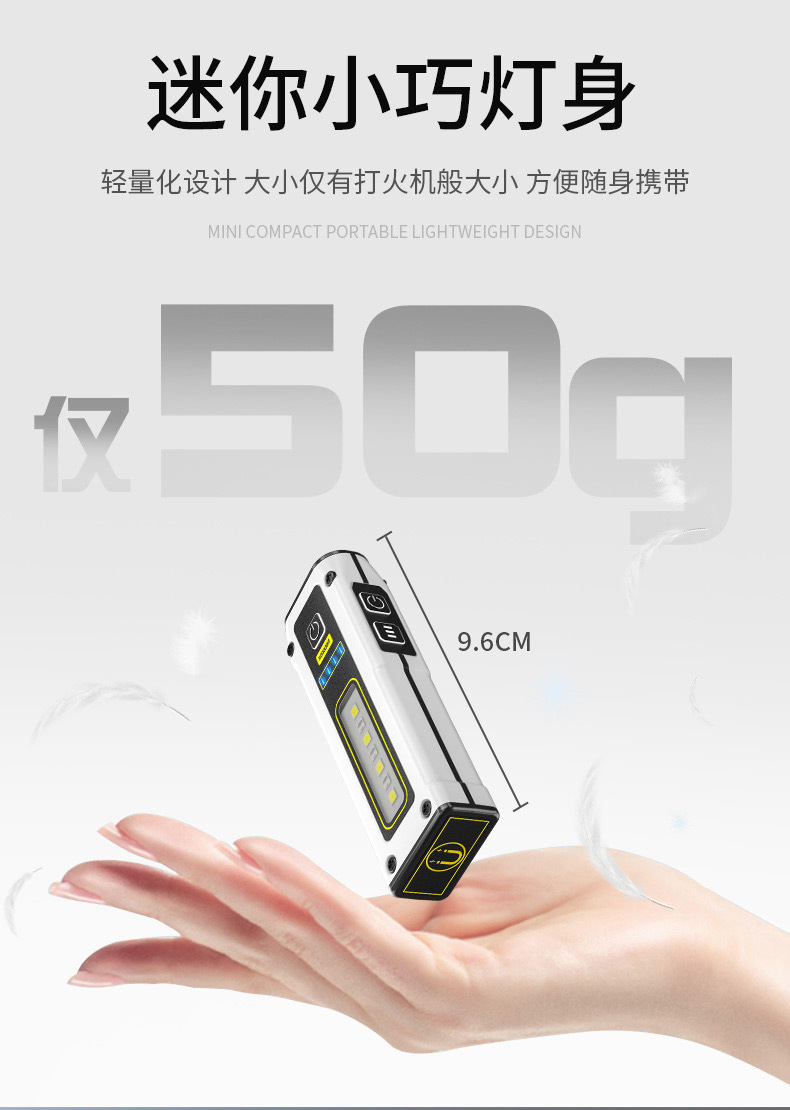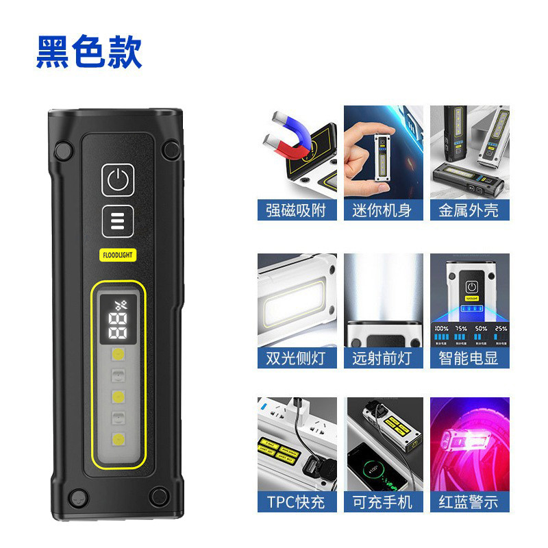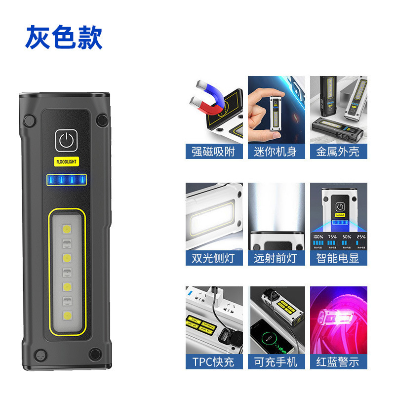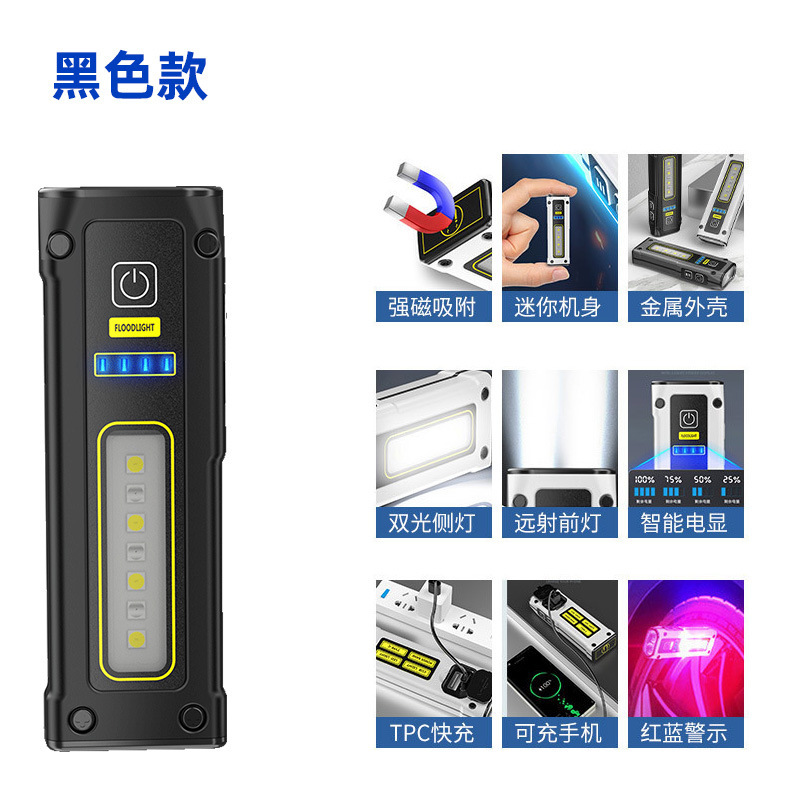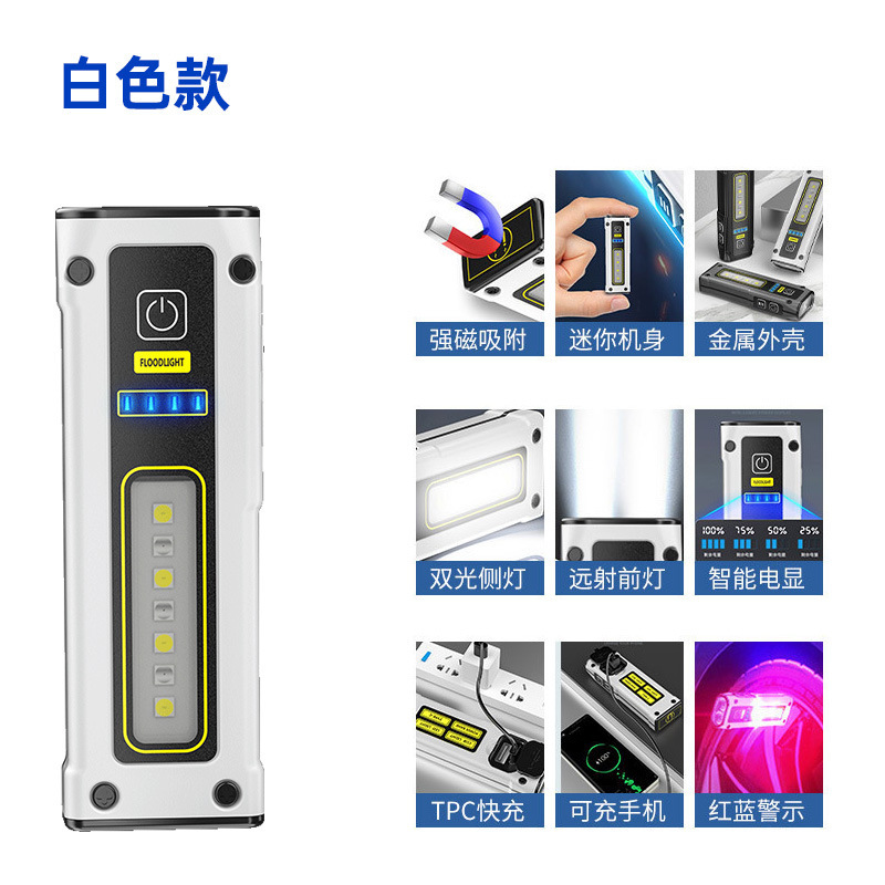국경 간 새로운 미니 이중 광원 손전등 빠른 충전 다기능 비상 손전등 자석 작업 조명 TYPE-C