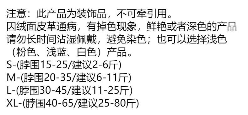 产品标签说明: 因本厂主要为加工形式订单,因此商品默认不贴带有内容的标签。 请在流入市场销售时张贴符合当地法律法规的标签。 厂名:石家庄西迈宠物用品有限公司 厂址:河北省石家庄市藁城区岗上镇大同村昌盛街45号 品名:详见产品标题 材质:详见产品参数