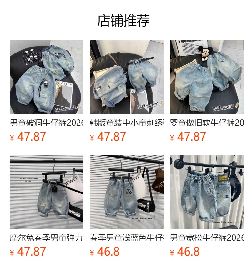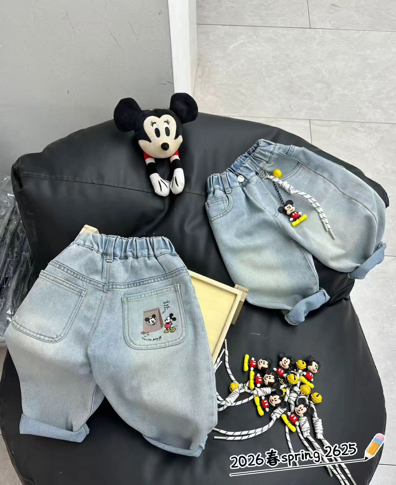 하오중하오 만화 캐릭터 남자 아기 신축성 데님 바지 2026 봄 유행 아동 바지 스타일리쉬 한국판 아동 바지스토어 가기