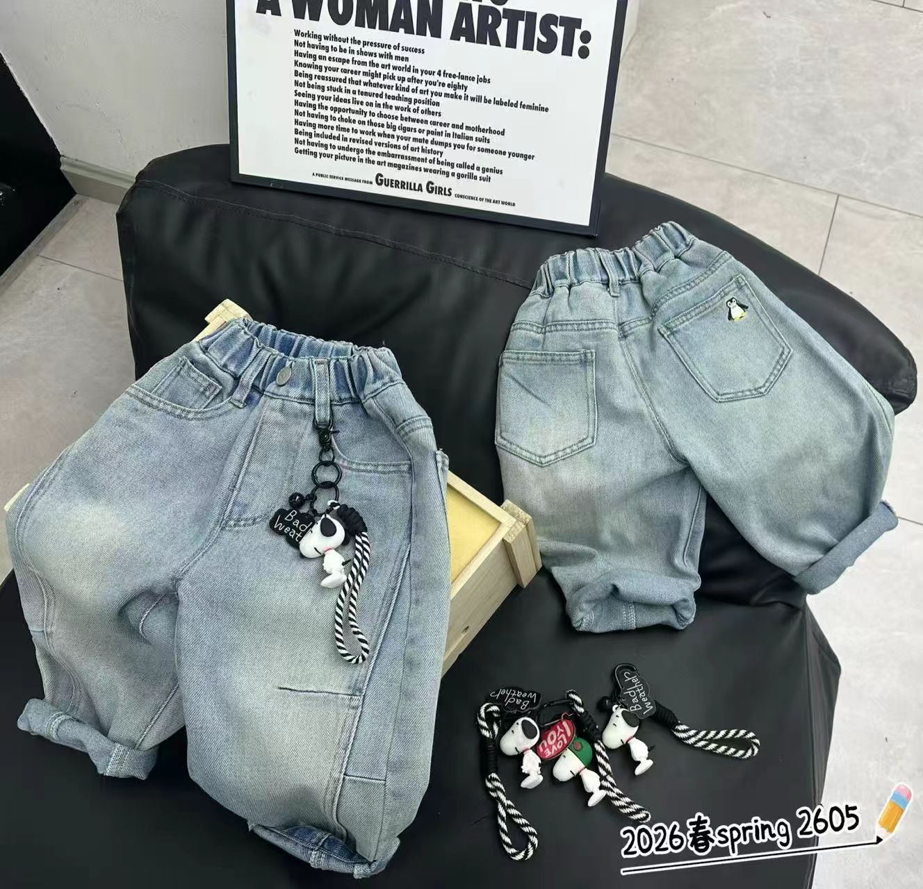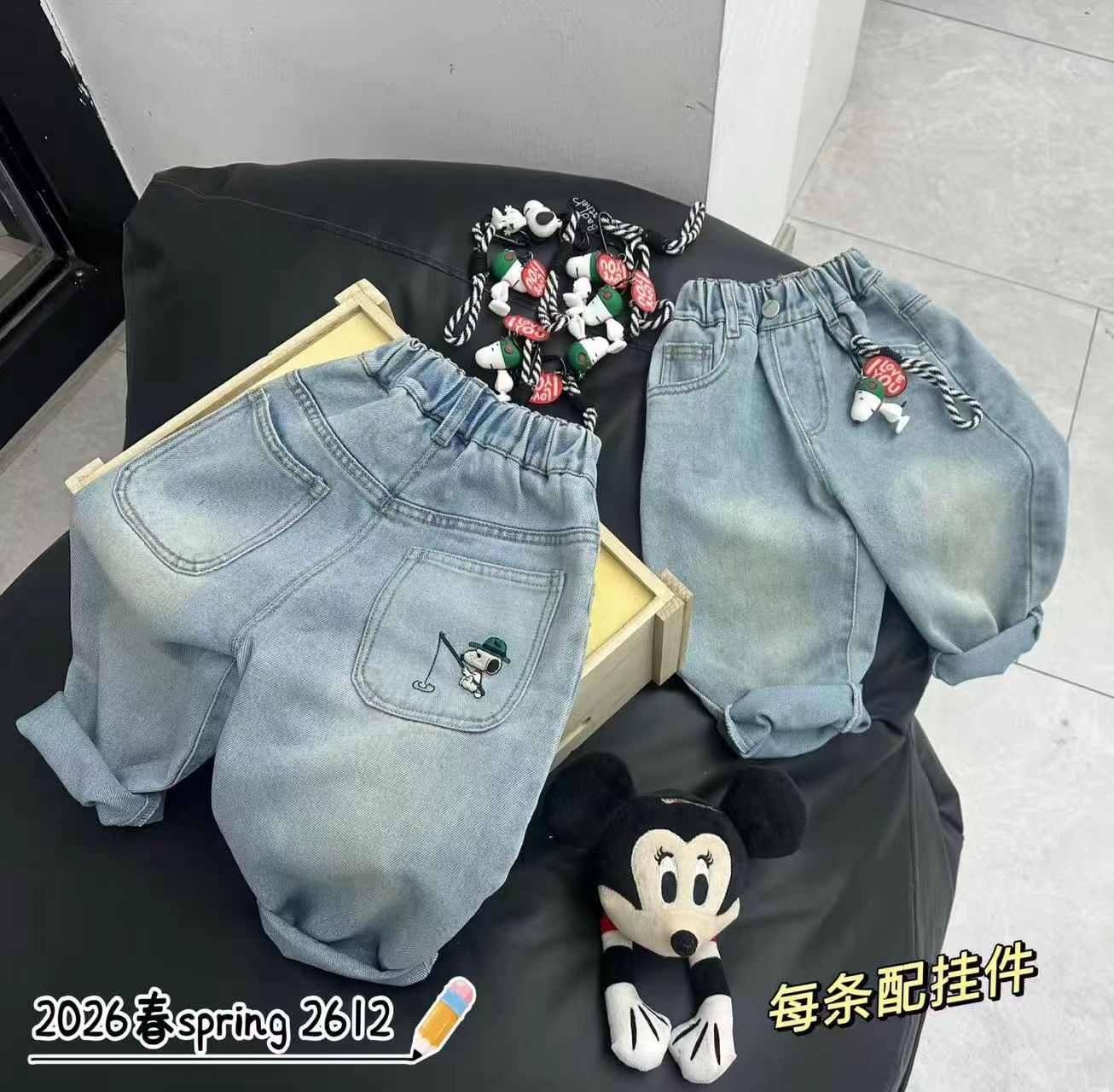 2026 春款男童浅蓝色牛仔长裤上新!水洗软牛仔亲肤透气,宽松版型不束缚活动。清新百搭显活力,耐磨不易变形