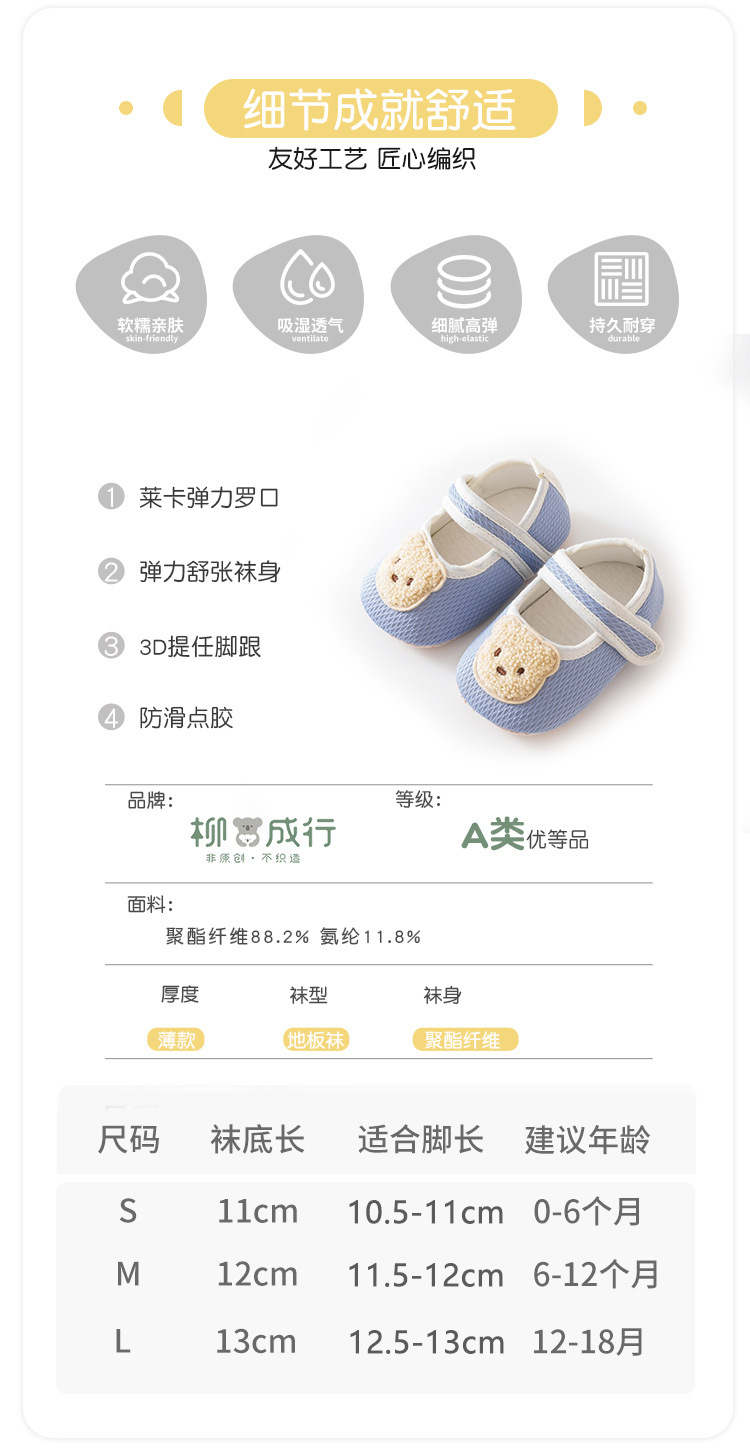 • S 사이즈는 발 길이 10.5-11cm에 적합합니다(0-6개월 권장).