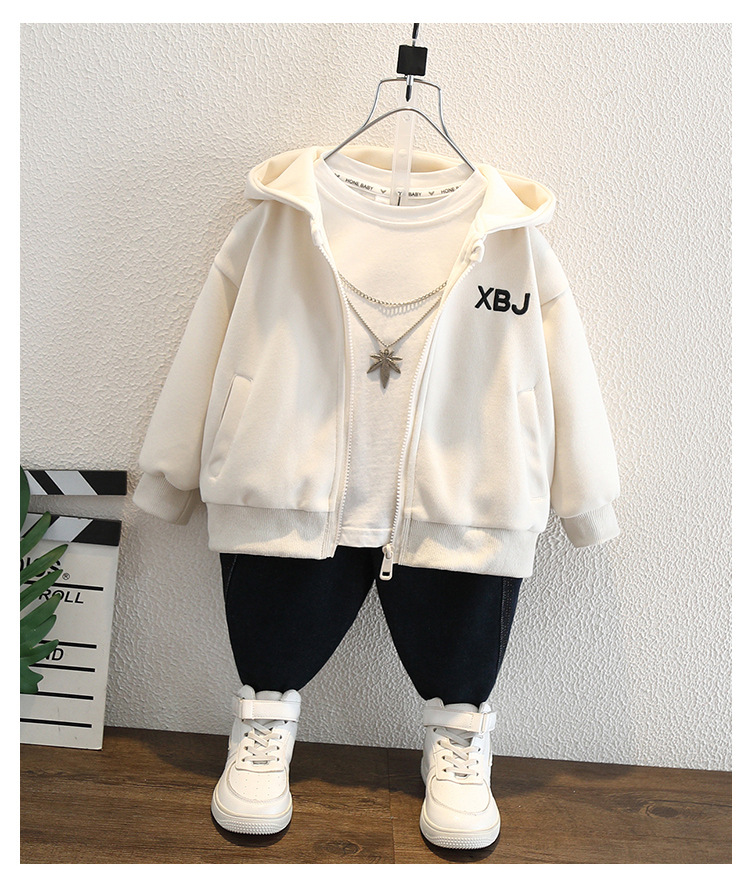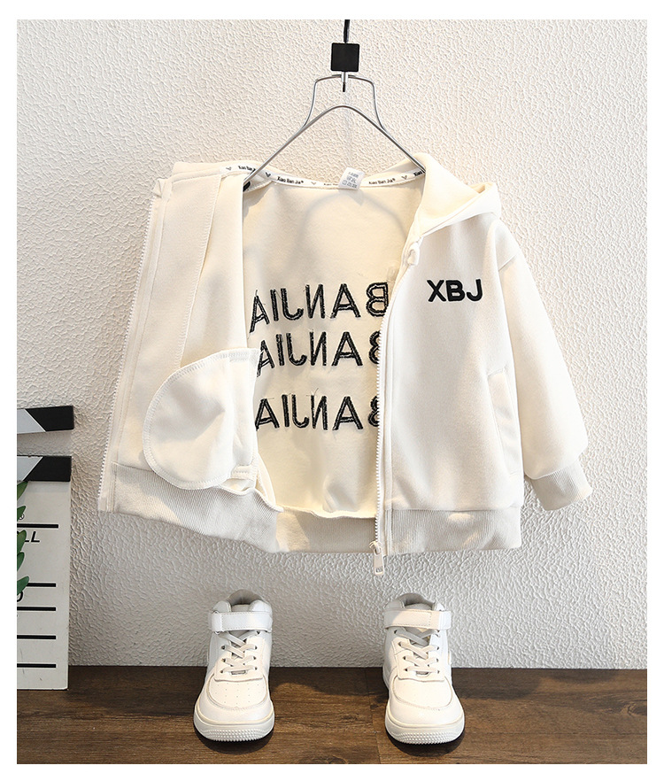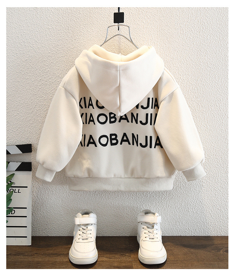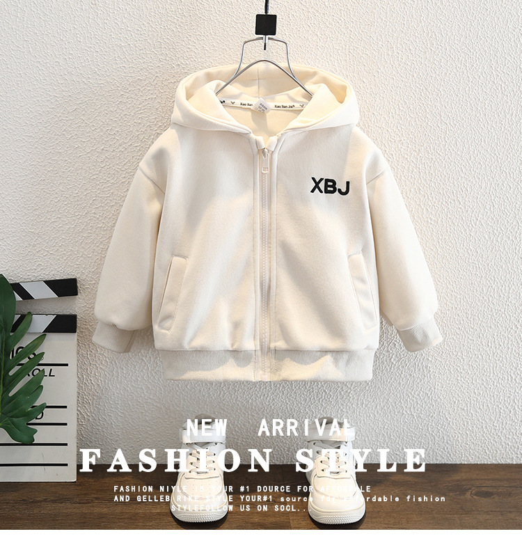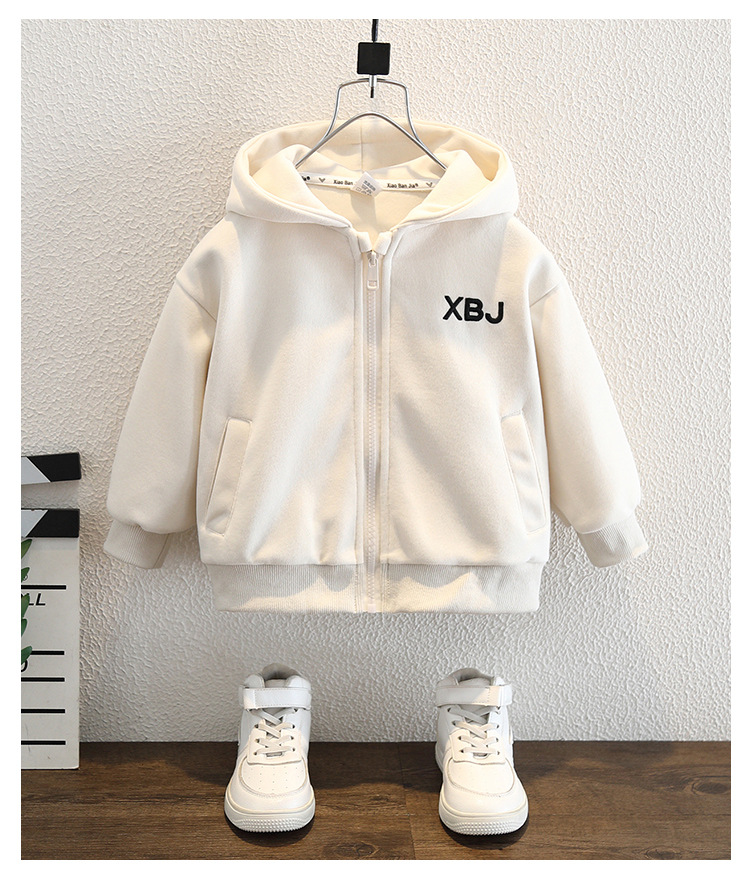 소년 편지 수 놓은 후드 코트 2025 봄과 가을 새로운 스타일 어린이 캐주얼 스웨터 아기의 카디건 탑