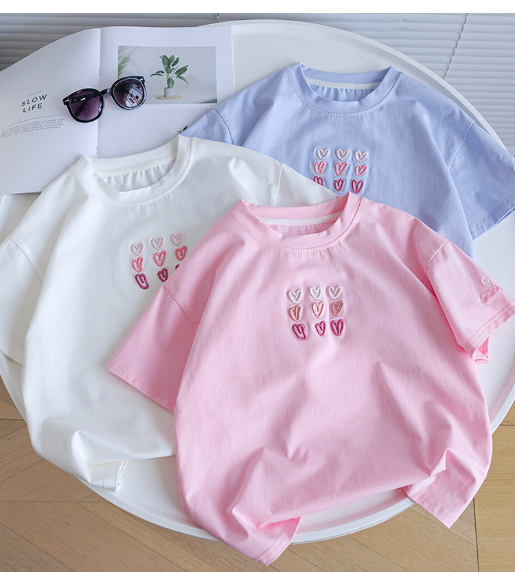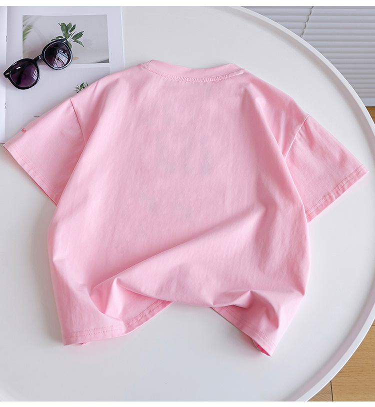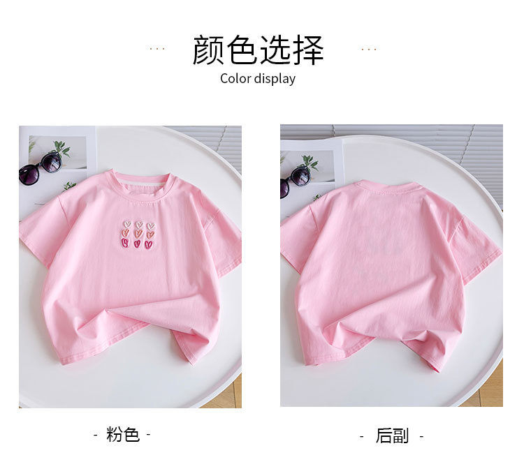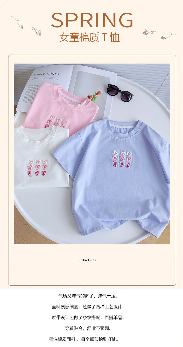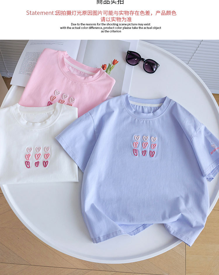 소녀 티셔츠 반팔 2025 뉴 여름 퓨어 코튼 빅 아동복 큰 어린이 탑 큰 어린이 어린이 어린 이용 루즈 티셔츠스토어 가기