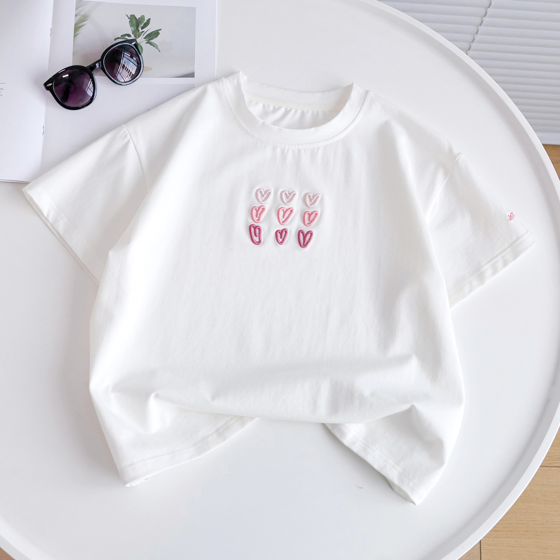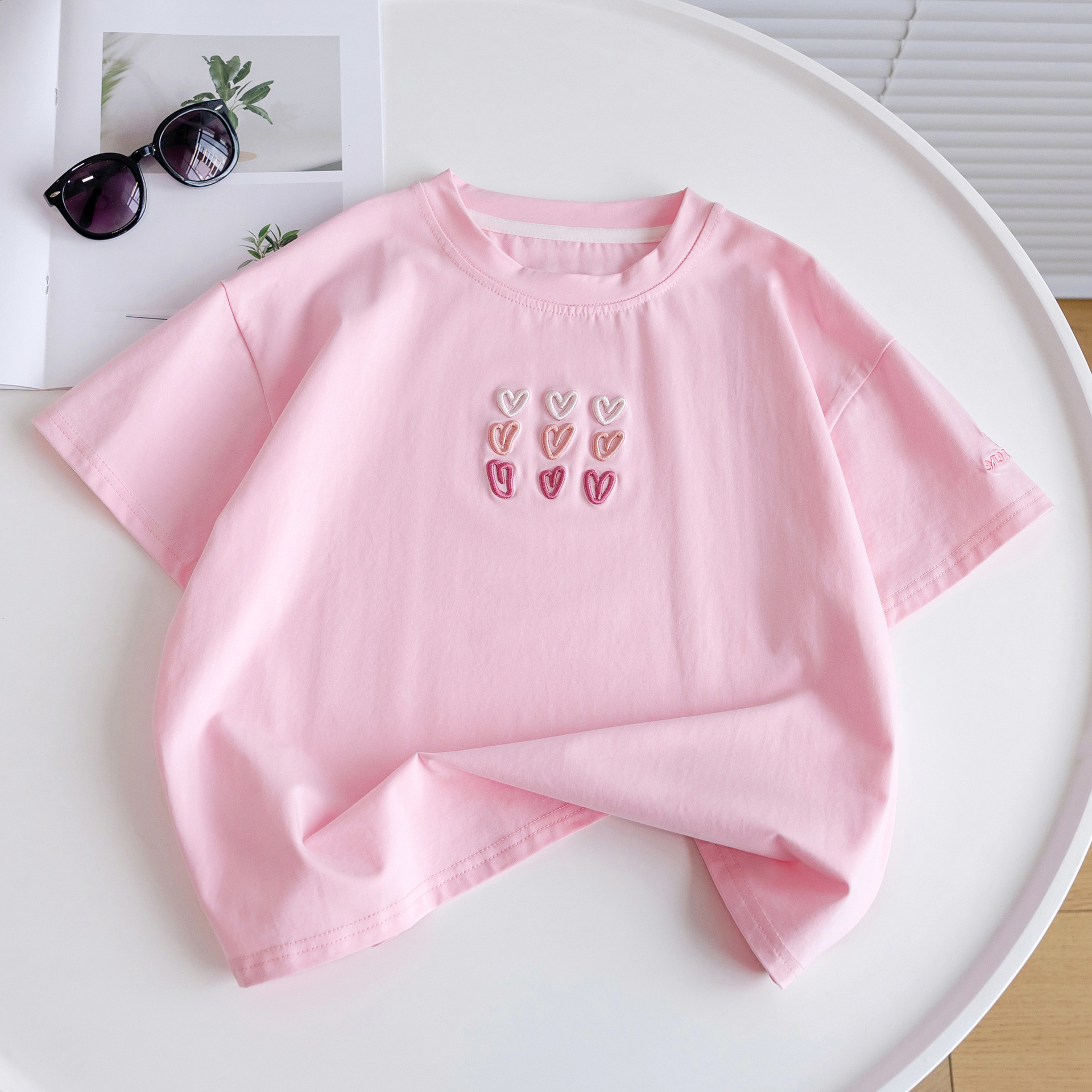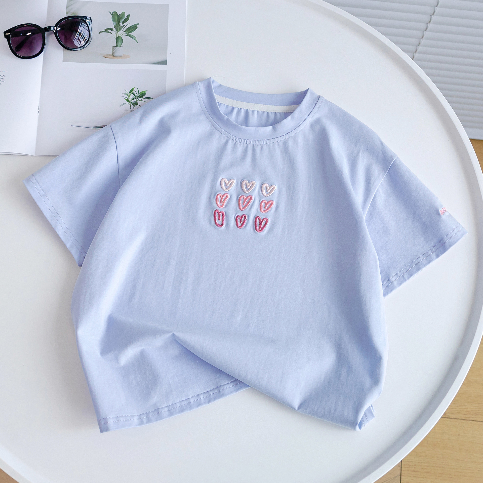 소녀 티셔츠 반팔 2025 뉴 여름 퓨어 코튼 빅 아동복 큰 어린이 탑 큰 어린이 어린이 어린 이용 루즈 티셔츠스토어 가기