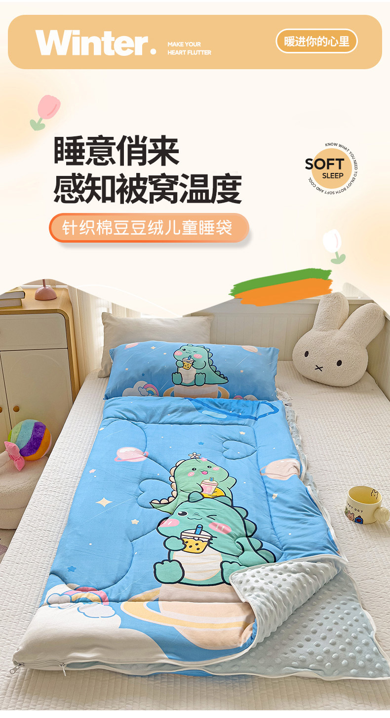 새로운 어린이용 A급 니트 면과 두두벨벳 수면 가방은 부드럽고 감기 예방에 효과적입니다.스토어 가기
