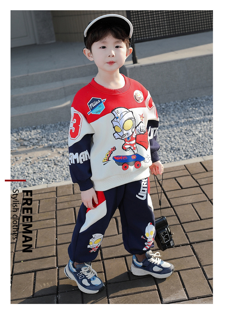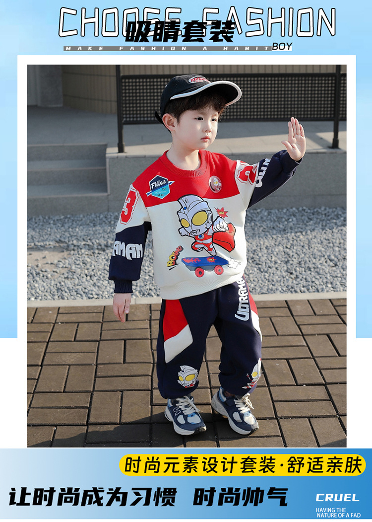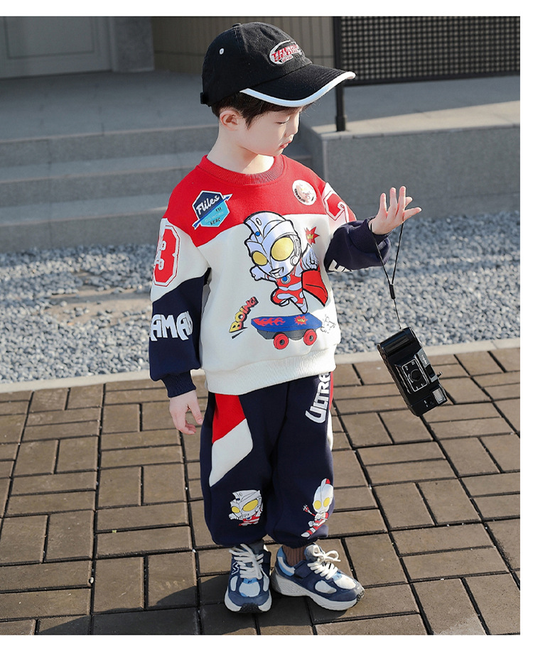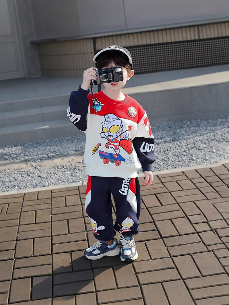 울트라 맨 옷 소년 봄 2025 새로운 세트 서양식 아기 소년 봄과 가을 어린이 스웨터 운동복스토어 가기